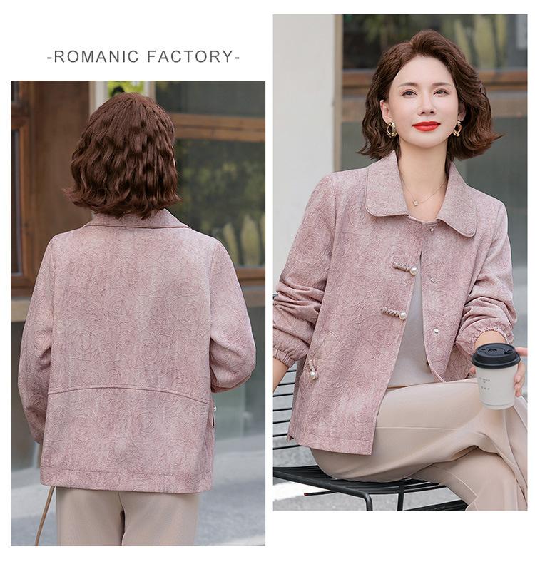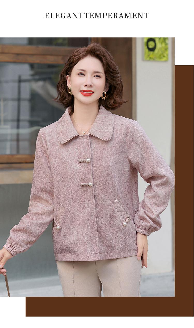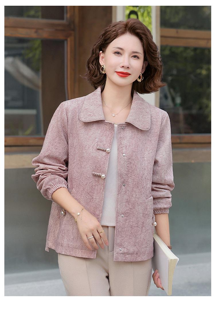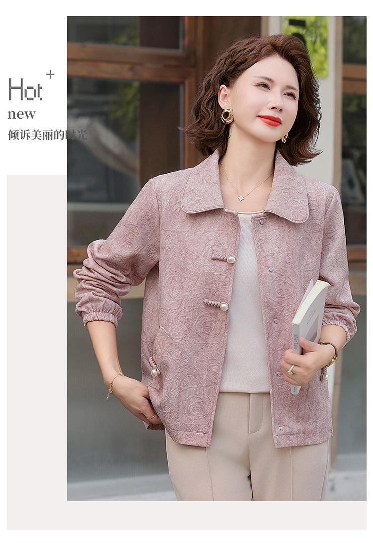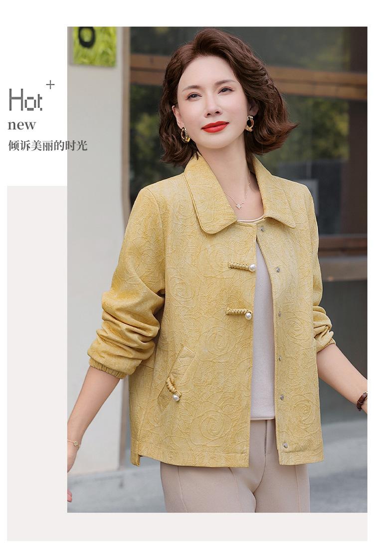 Nuevo Estilo Chino Viento Nacional Mamá Primavera Otoño Cuello Vuelto Ropa Exterior 2025 Nuevo Ropa de Otoño para Mujeres de Mediana Edad y Mayores Chaqueta Corta Moderna