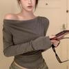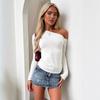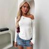 Estilo Nuevo Europeo y Americano Transfronterizo Primavera y Verano 2025 Sexy Hombro Descubierto Color Puro Manga Larga Moda y Cómodo Versátil Camiseta Hombro Caído