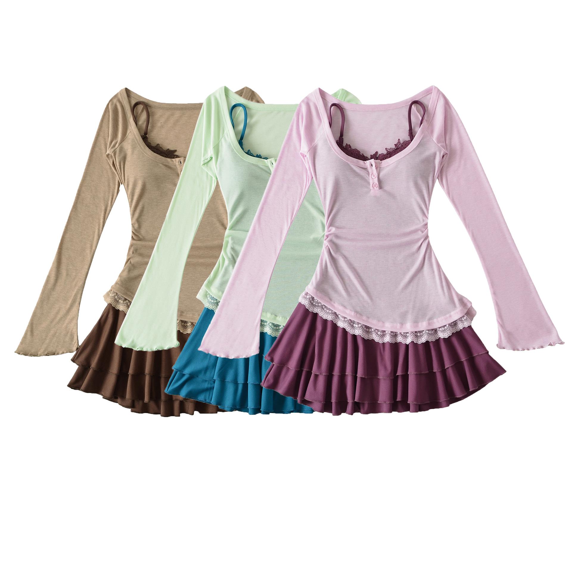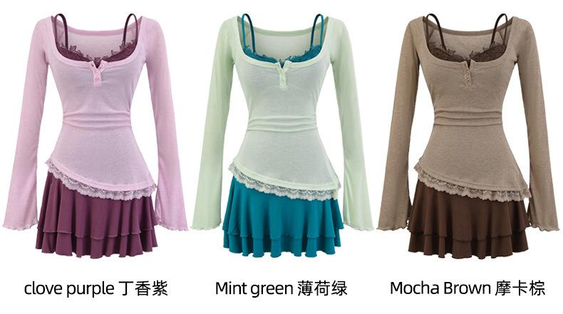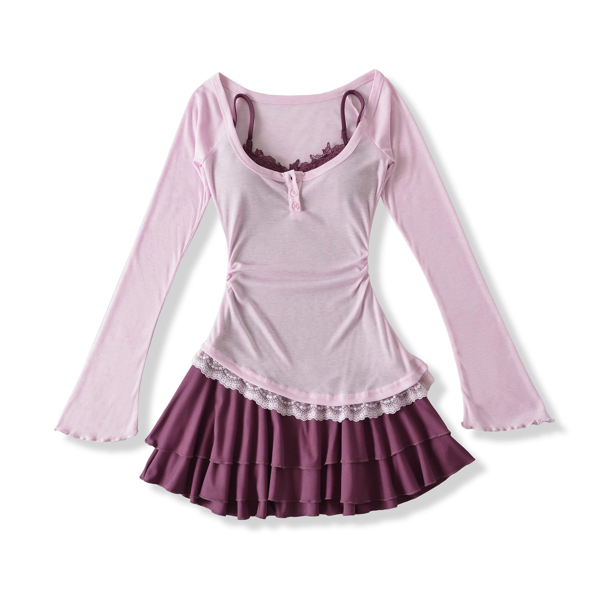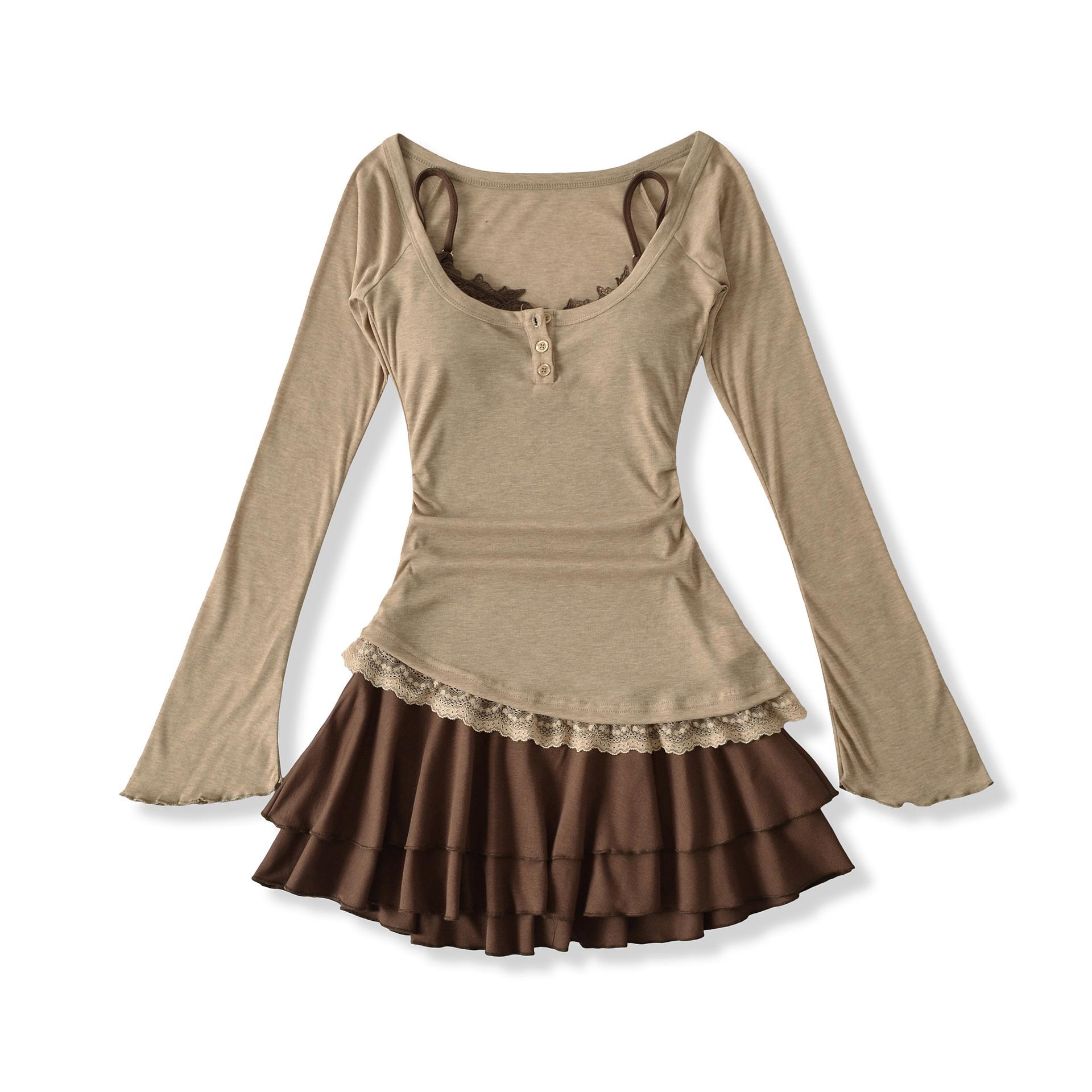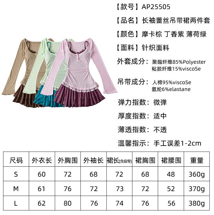 25505-Estilo europeo y americano chica hot sexy encaje vestido de manga larga mujer 2025 nuevo conjunto ajustado de dos piezas vestido con tirantes