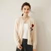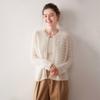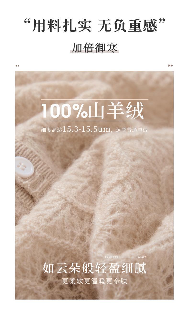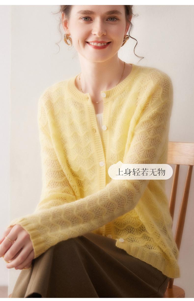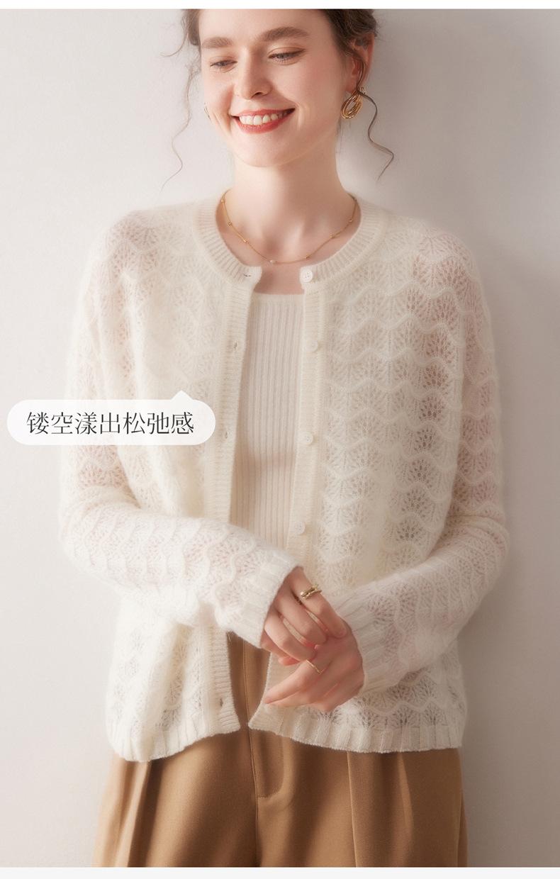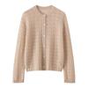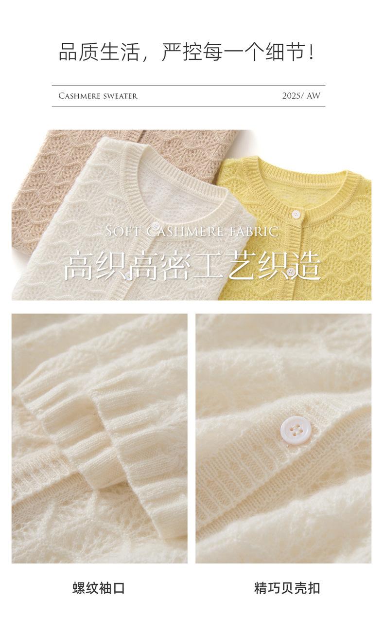 Cárdigan de Cachemira para Mujer 100% Cachemira Pura Otoño e Invierno Nuevo Cuello Redondo Calado Moda Manga Larga Suéter Tejido Abrigo
