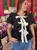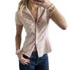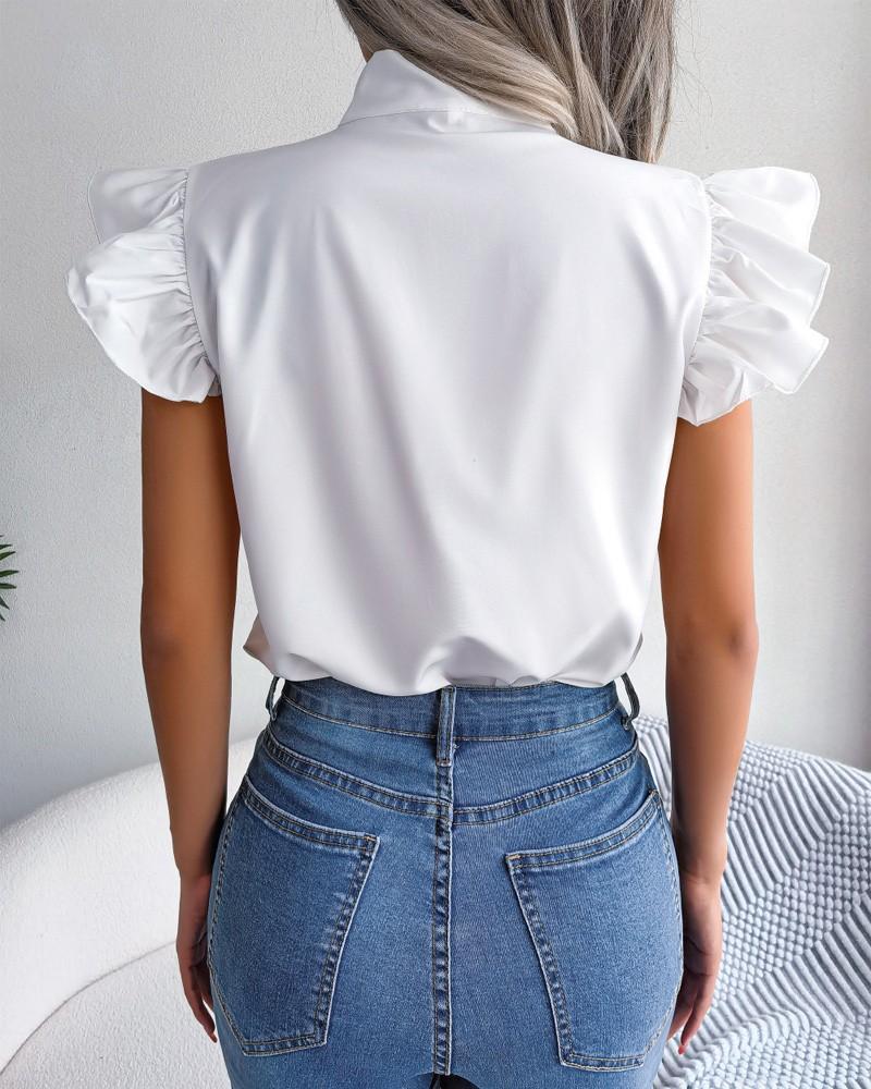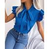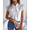 Amazon Aliexpress Ropa Europea y Americana Nuevo Verano Color Puro Sencillo Lazo Manga Volante Camisa de Manga Corta