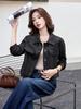 Chaqueta de Cuero Estilo Motociclista para Mujer, Nuevo Estilo Otoño 2025, Elegante, Ajustada, Corta, Chaqueta de Cuero Lavado para Figuras Pequeñas