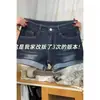 Shorts de Mezclilla Ajustados Negros de Talla Grande para Mujer Verano 2025 Nuevo Americano Cintura Alta Chica Hot Moldeadores de Cadera Línea A Pantalones Cortos