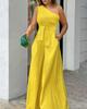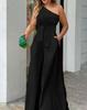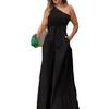 Primavera y verano 2024 cuello oblicuo acordonado de un lado irregular hombro descubierto cintura alta bolsillo pantalón de pierna ancha mono casual