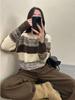 Suéter de punto a rayas con bloques de color para mujer, ropa exterior holgada nueva de otoño/invierno 2025, suéter básico de manga larga con cuello redondo elegante y perezoso