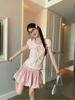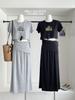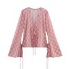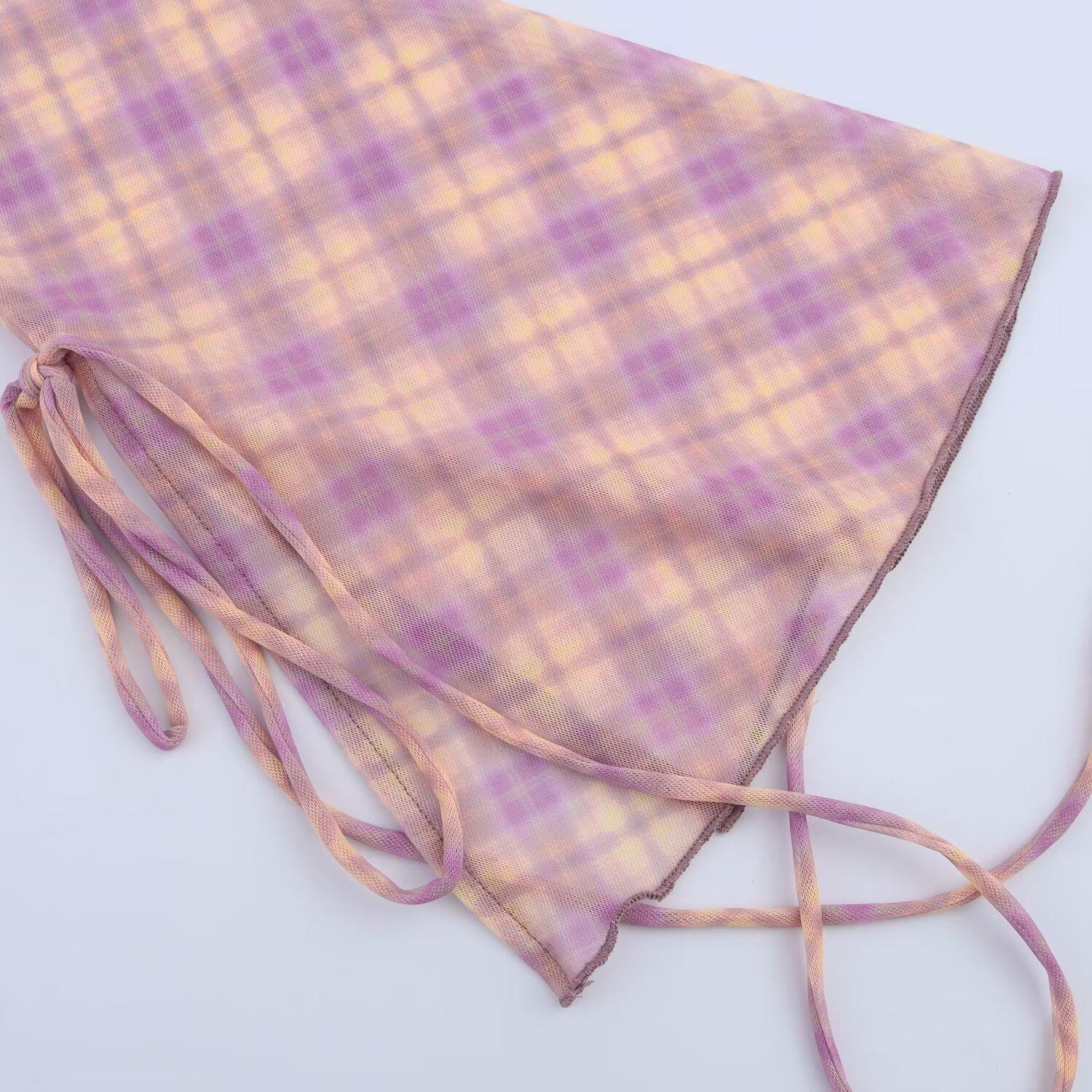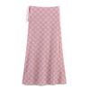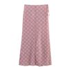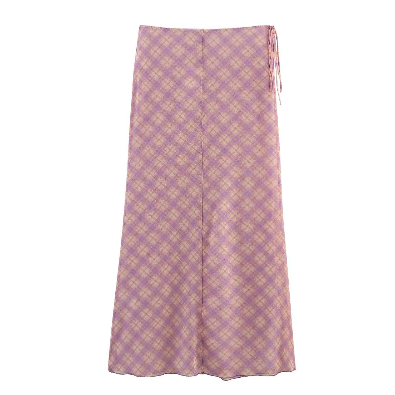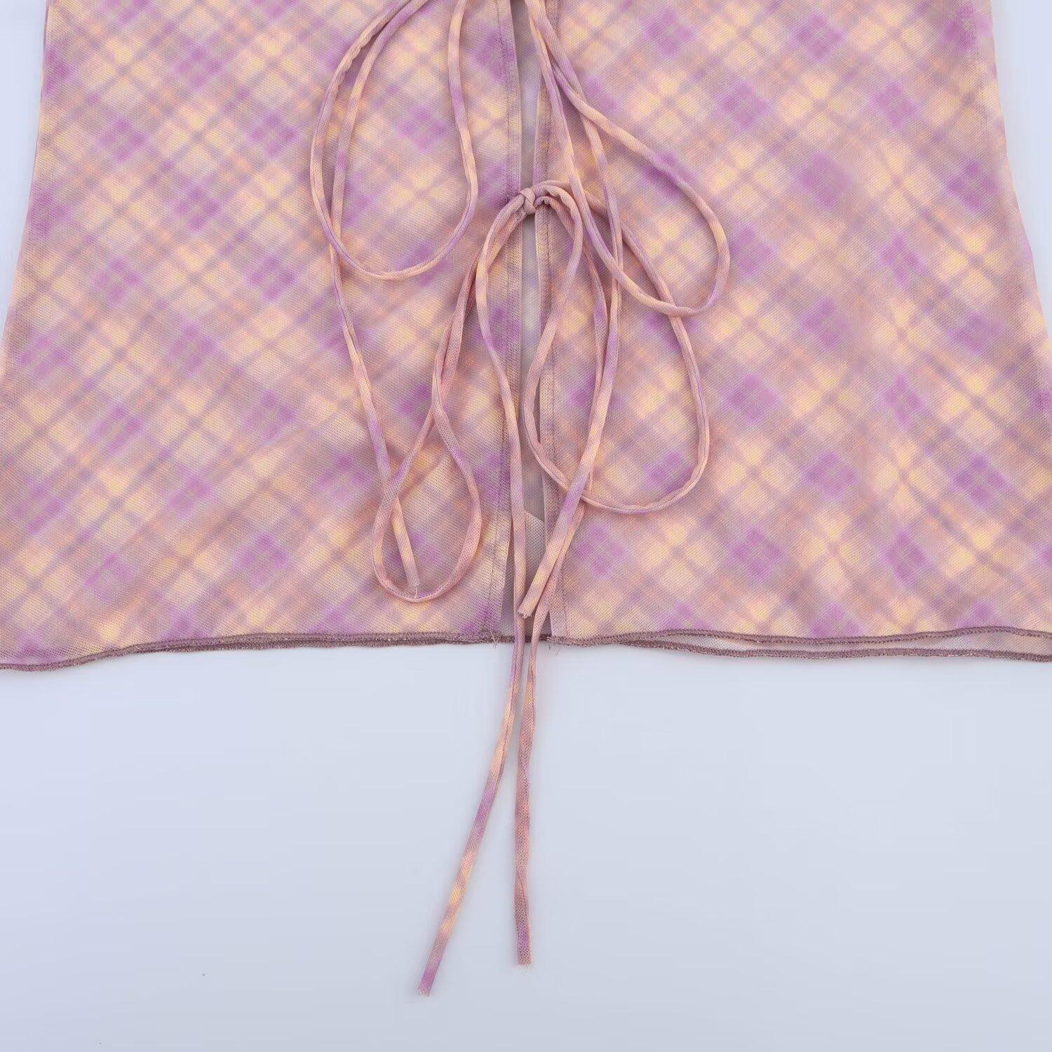 2025 Verano Nuevo Estilo Europeo y Americano Moda Cuadros Seda Malla Manga Acampanada Camisa Falda Adelgazante de Cintura Alta Traje