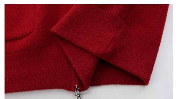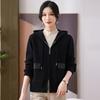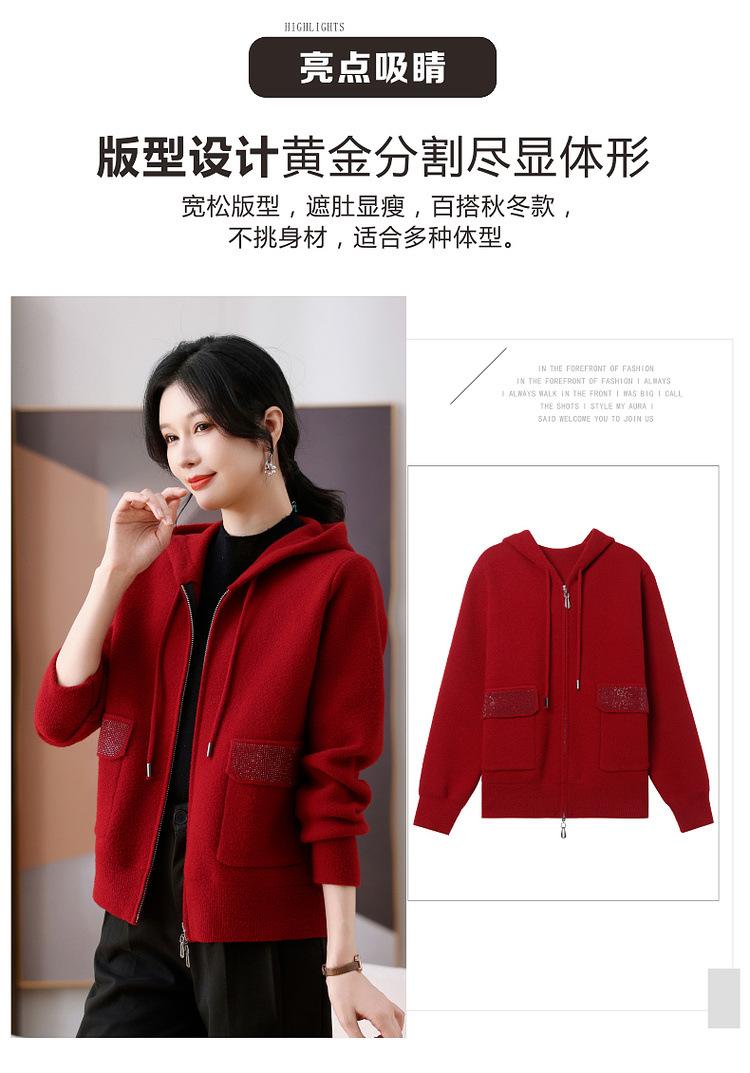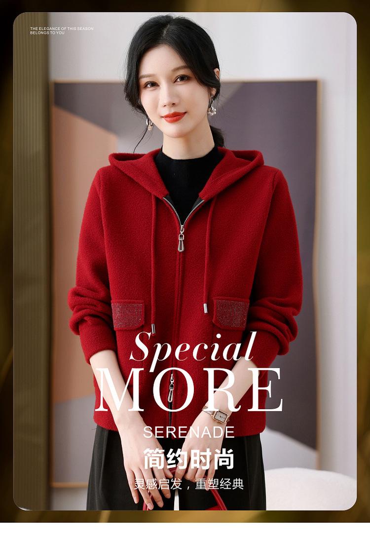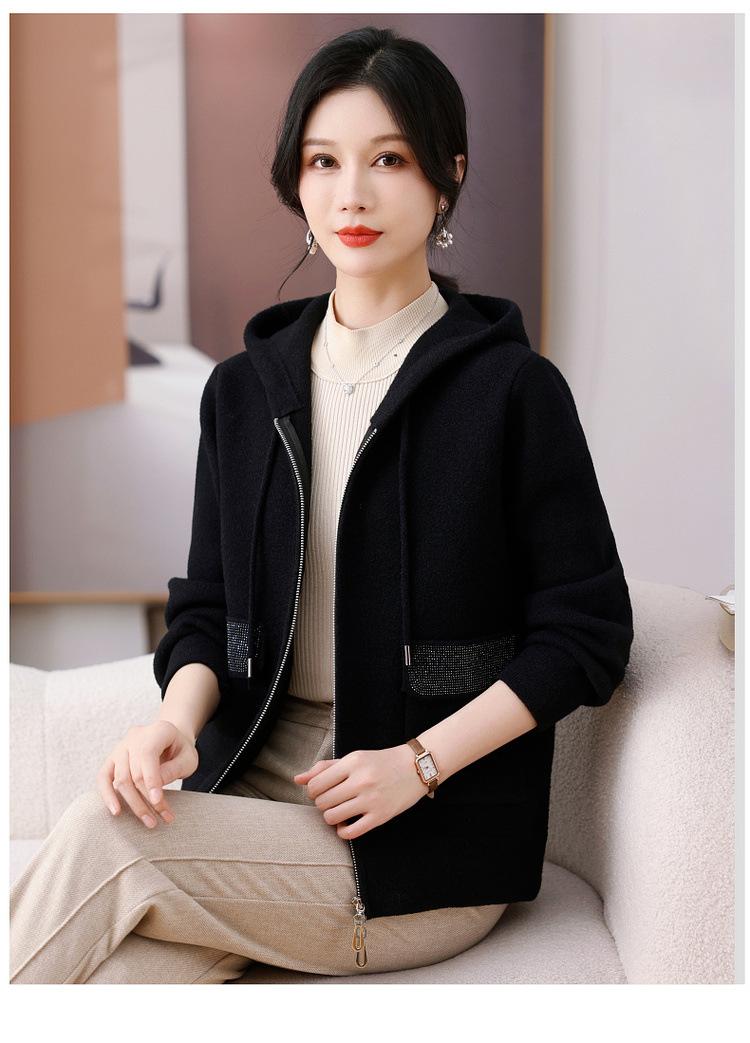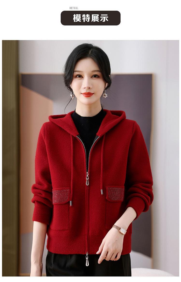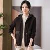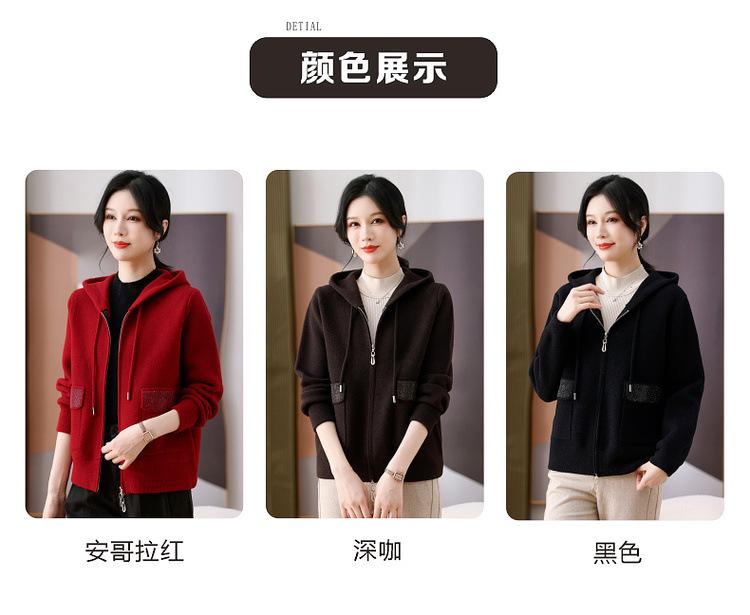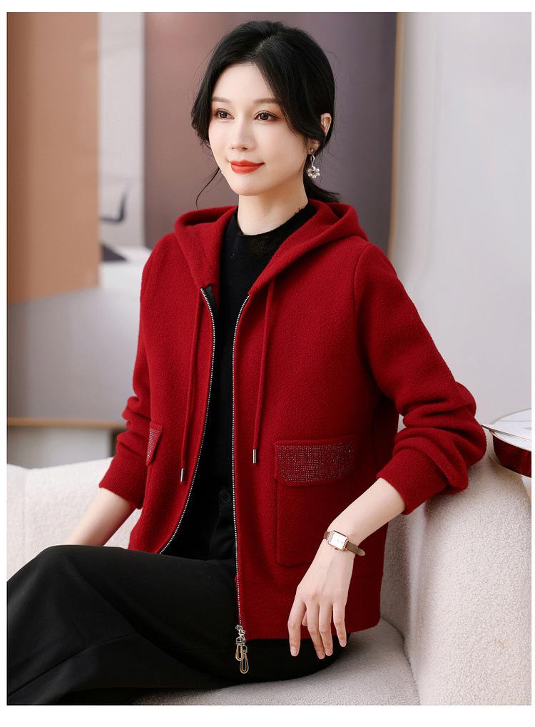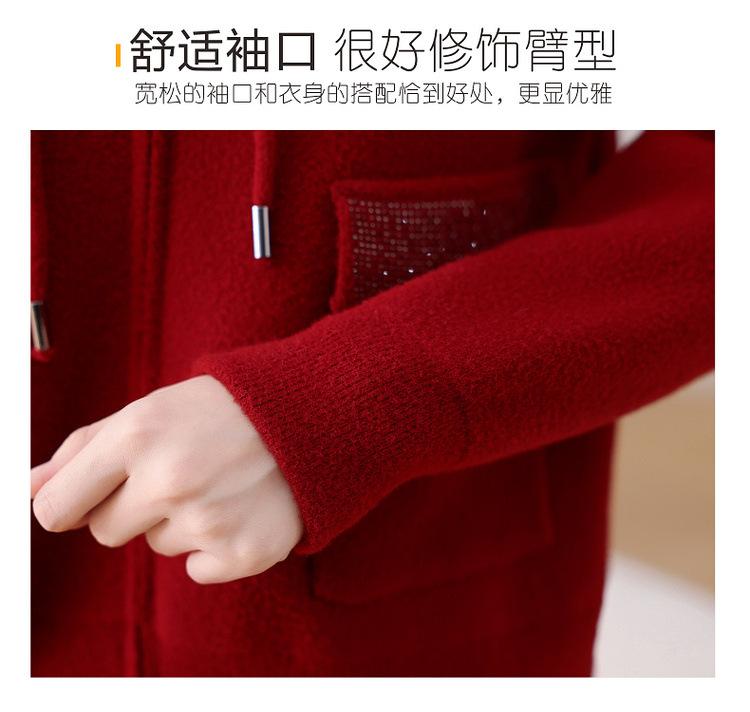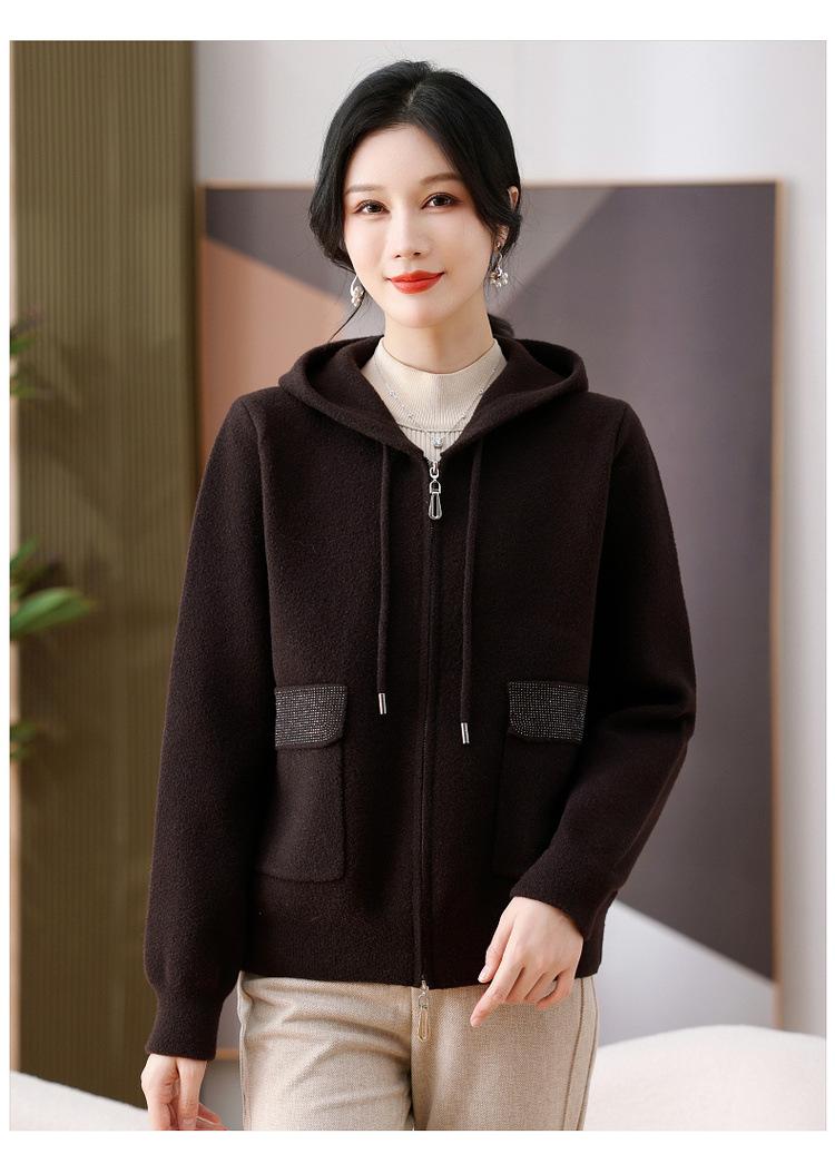 Abrigo de Lana Tejido de Primavera y Otoño para Mamá, Ropa Exterior para Mujeres de Mediana Edad y Mayores, Cárdigan con Capucha y Cierre de Cremallera, Top Casual