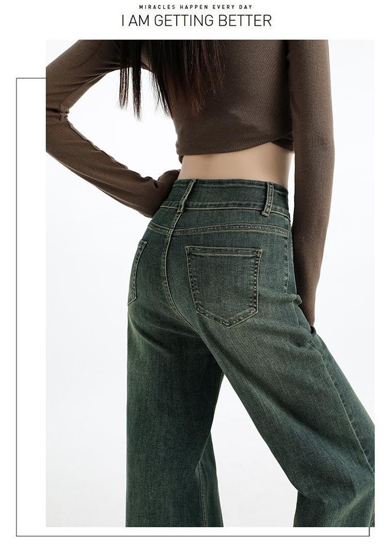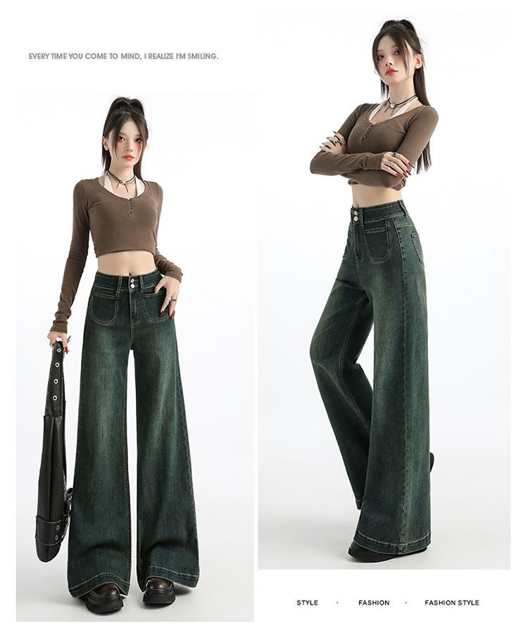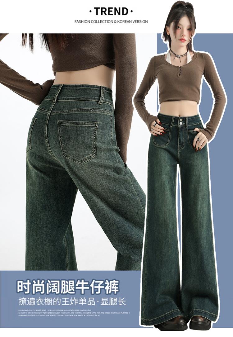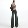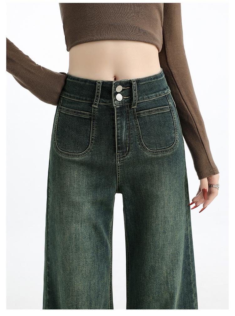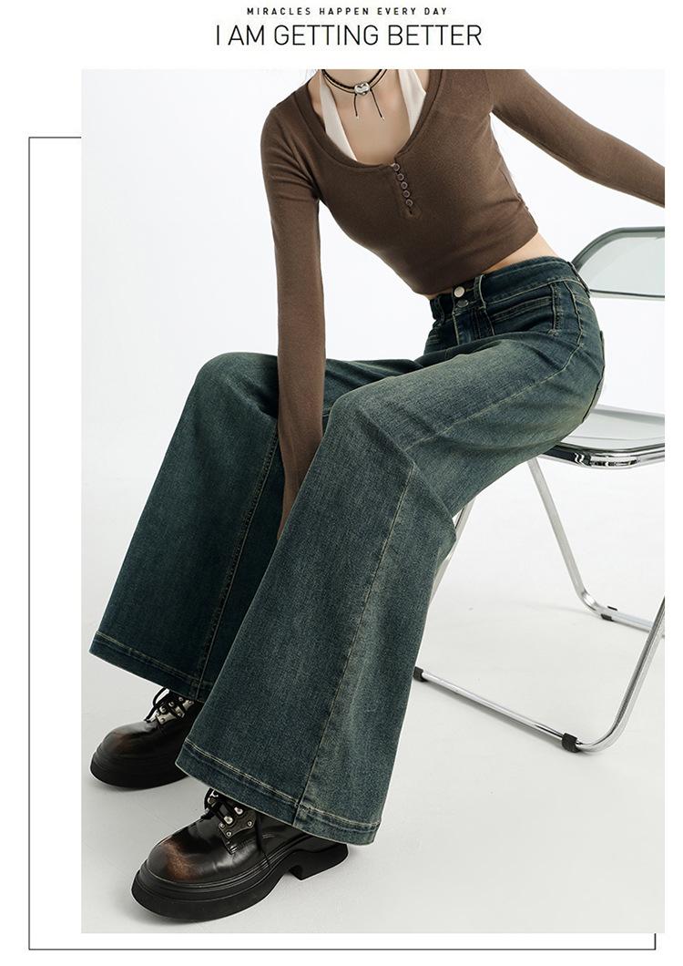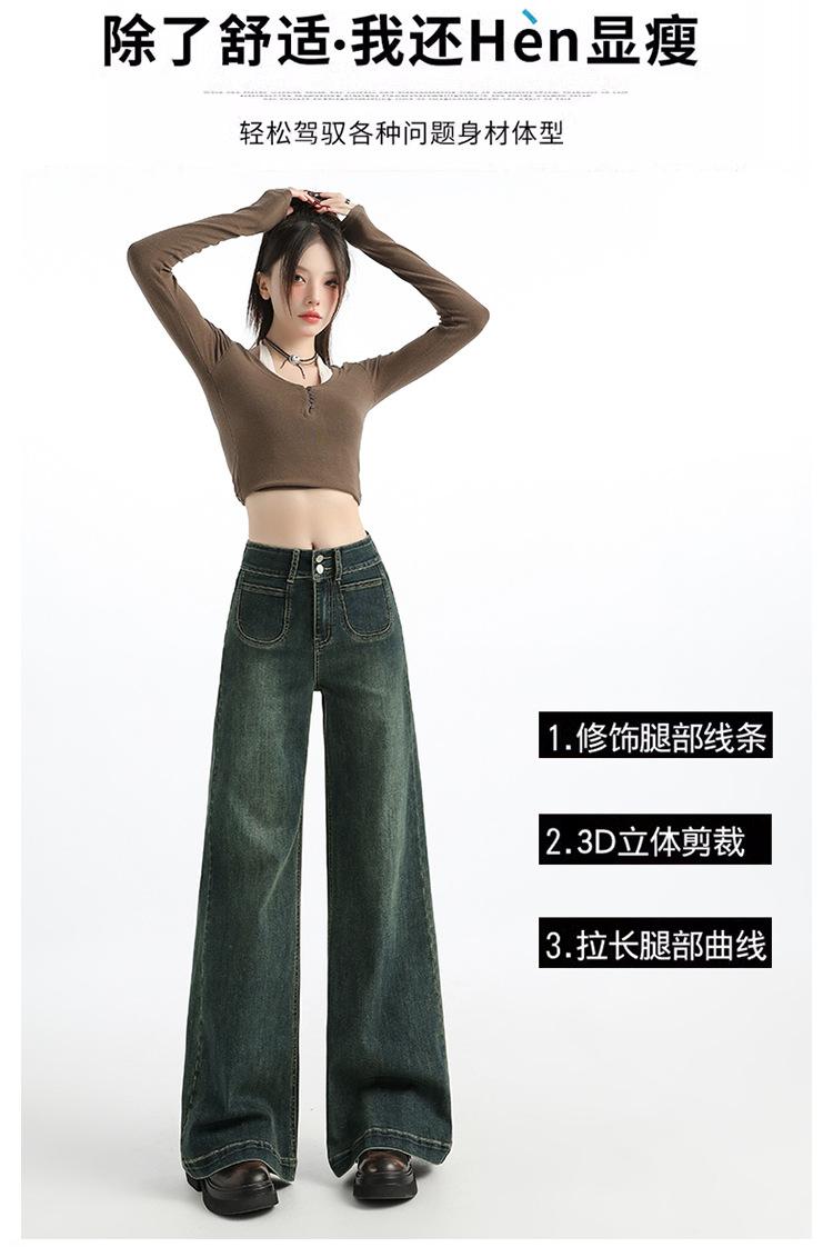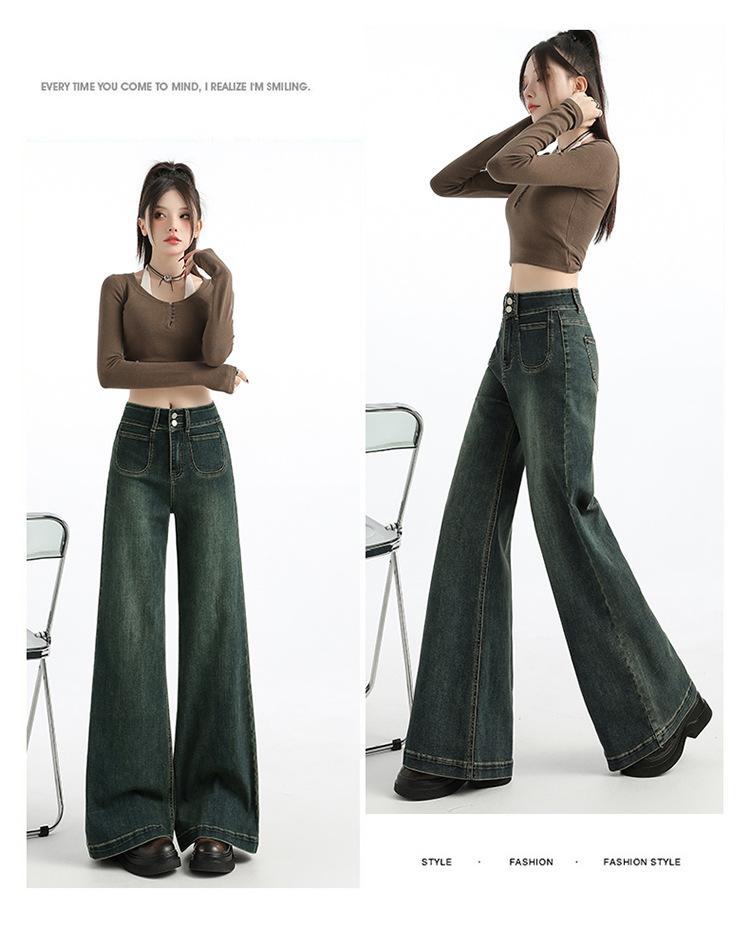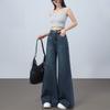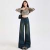 Jeans de pierna recta para mujer otoño e invierno 2025 nuevo azul nostálgico elástico holgado adelgazante micro acampanado pantalones drapeados hasta el suelo