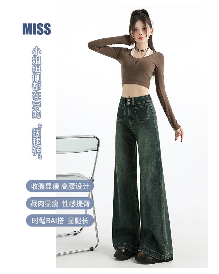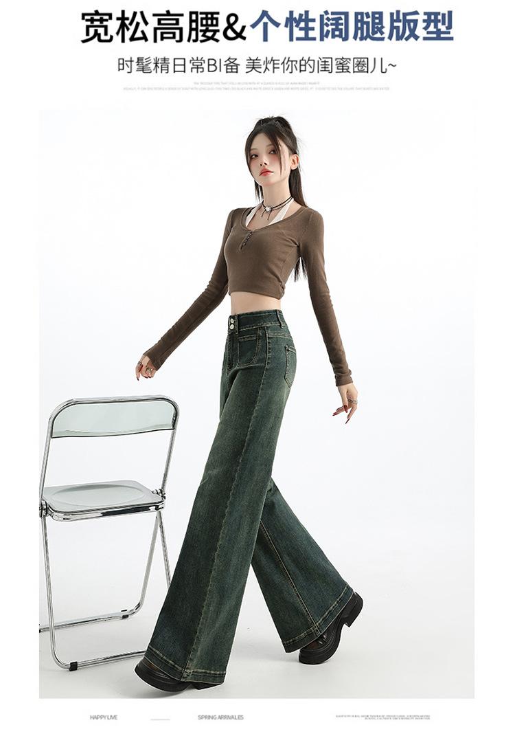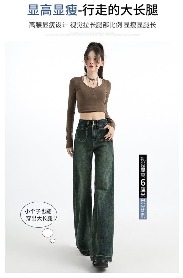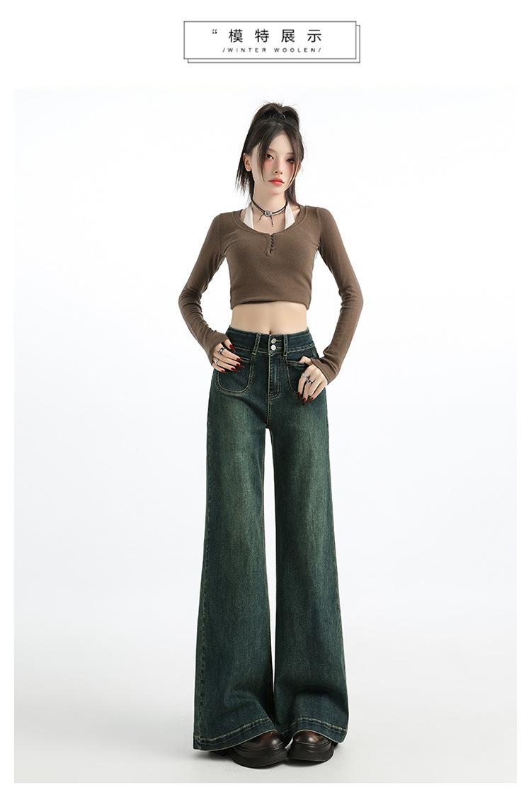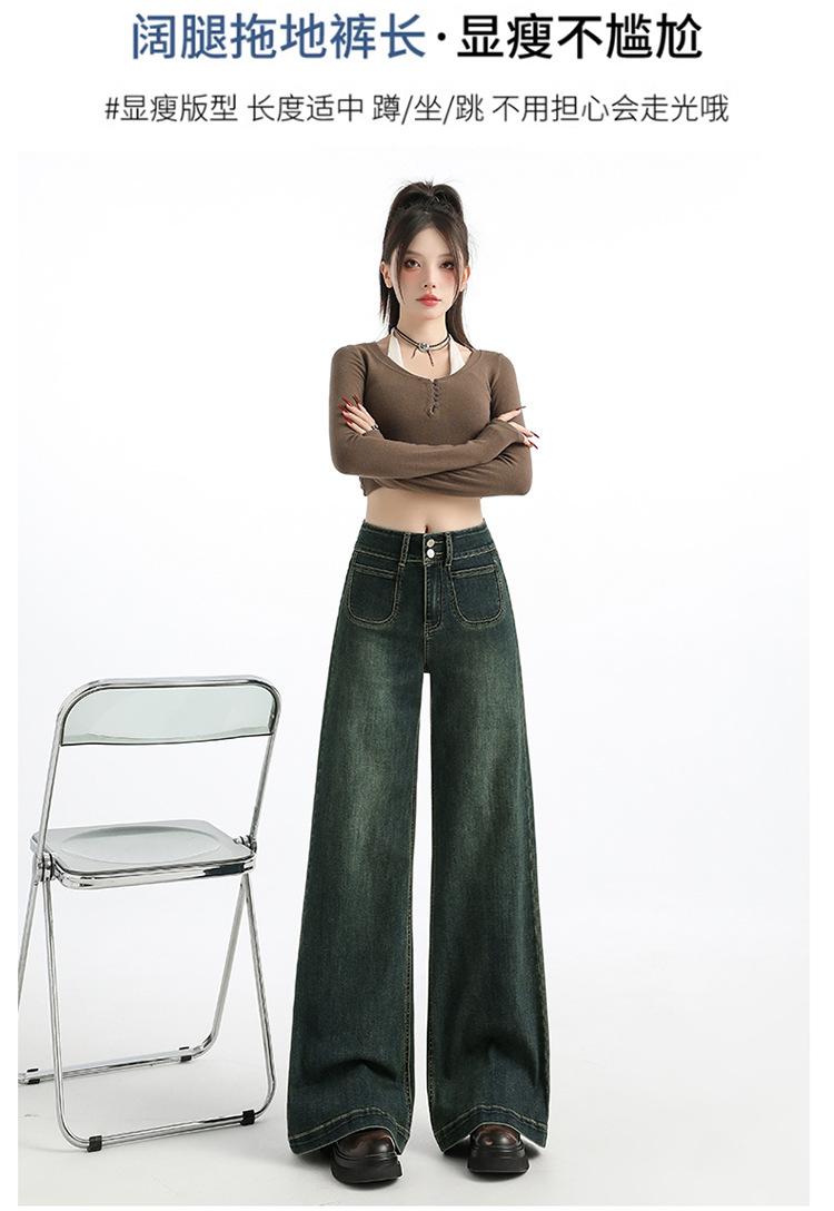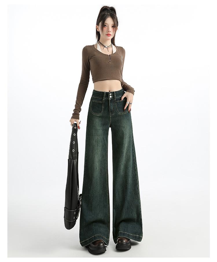 Jeans de pierna recta para mujer otoño e invierno 2025 nuevo azul nostálgico elástico holgado adelgazante micro acampanado pantalones drapeados hasta el suelo