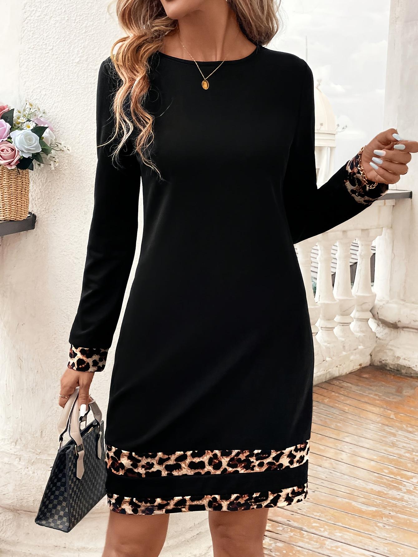 Vestido de cadera de manga larga adelgazante de corte ajustado para mujer con estampado de leopardo de nueva moda europea y americana transfronteriza