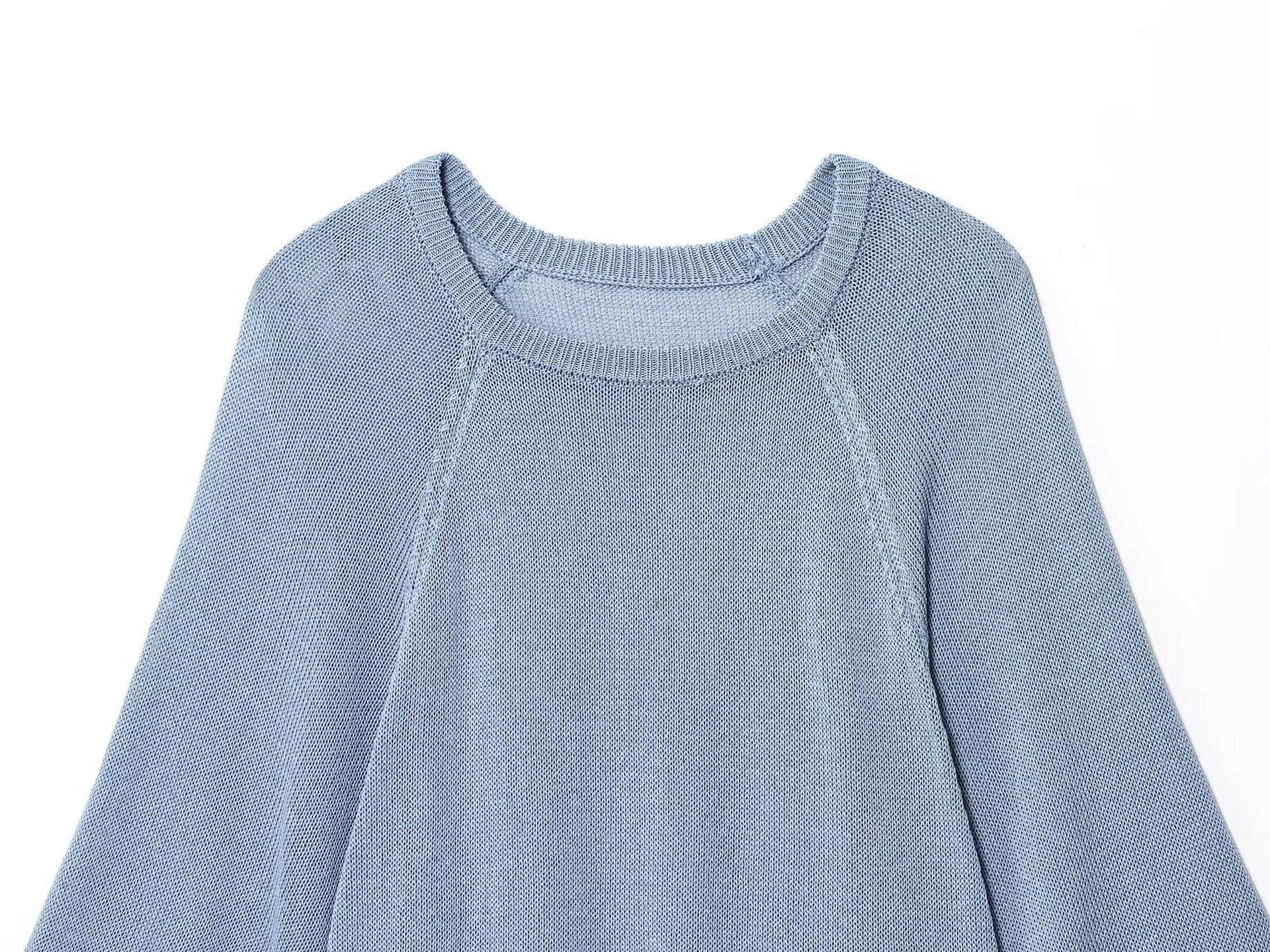 Estilo Caliente Europeo y Americano Amazon AliExpress Minimalista Temperamento Viaje Versátil 2 Colores Casual Manga Ancha Top de Punto