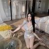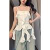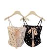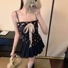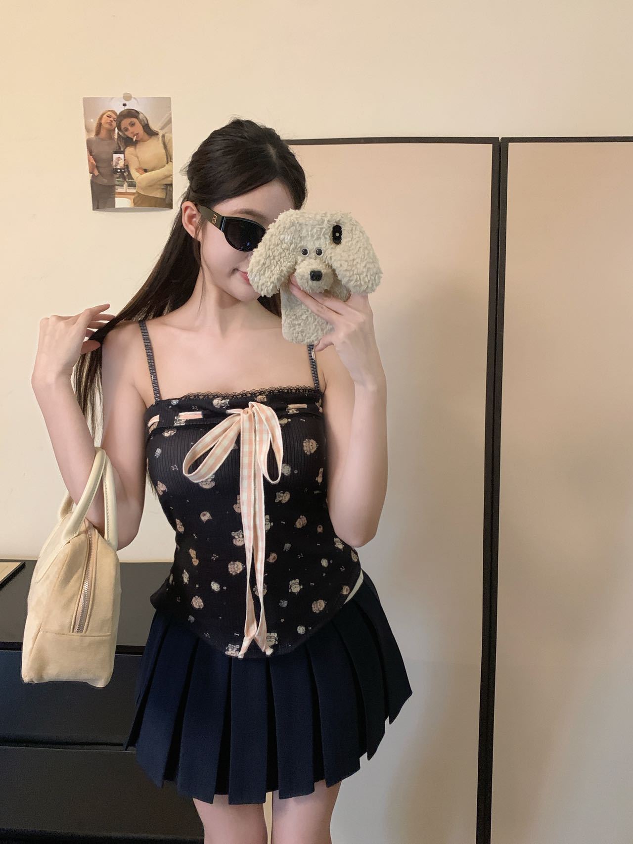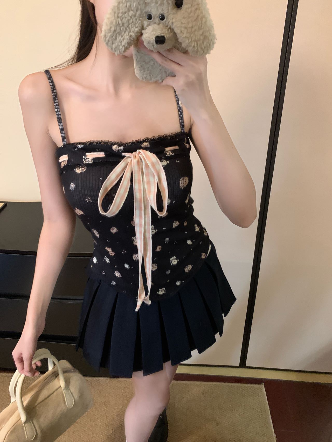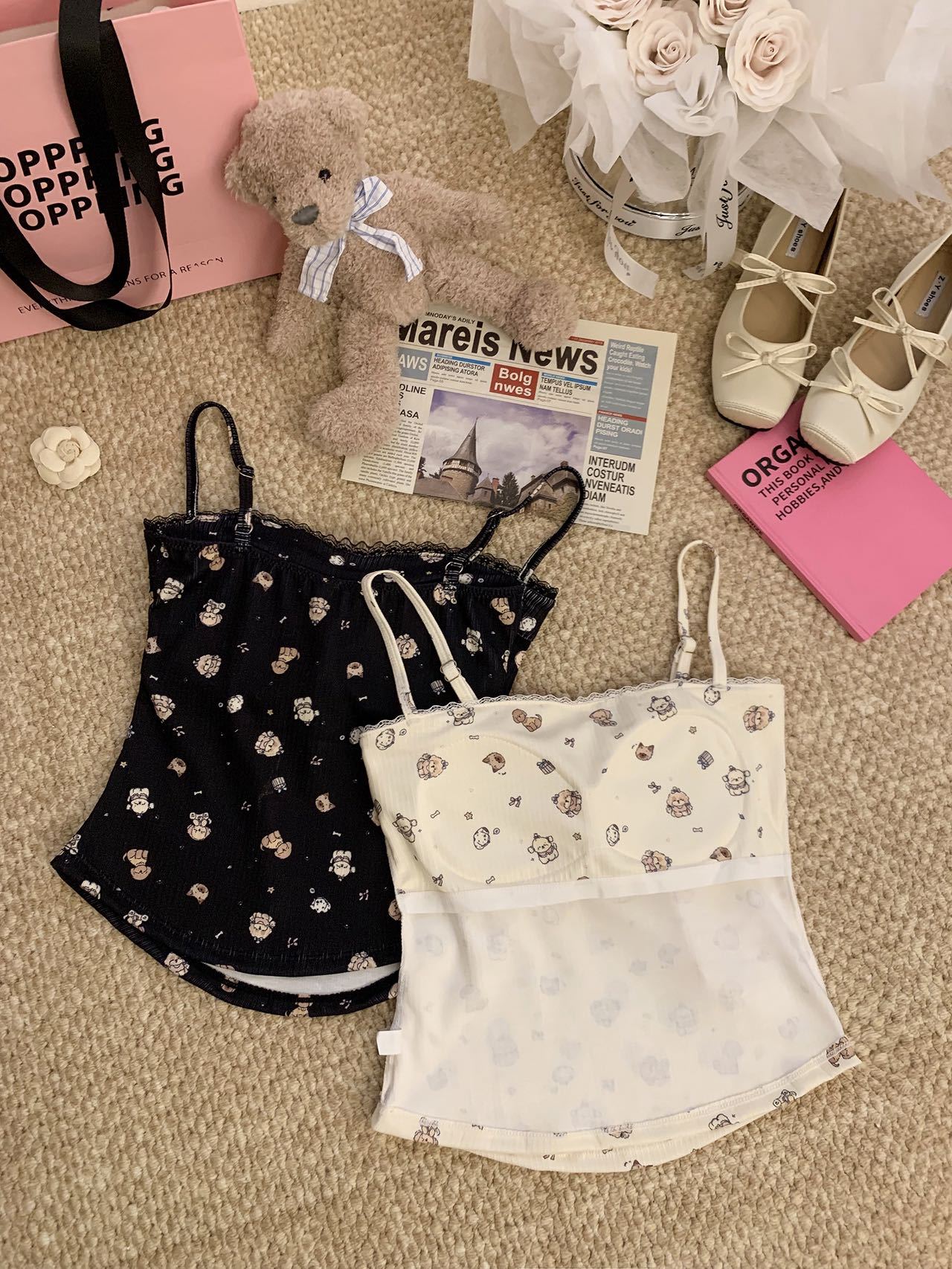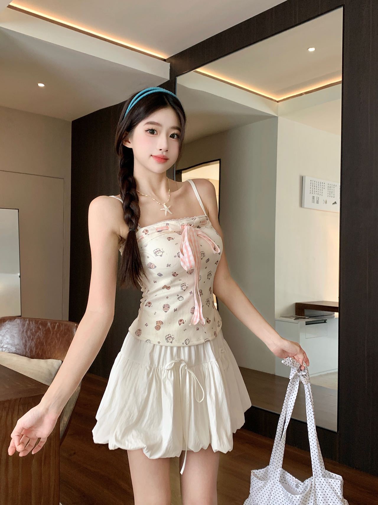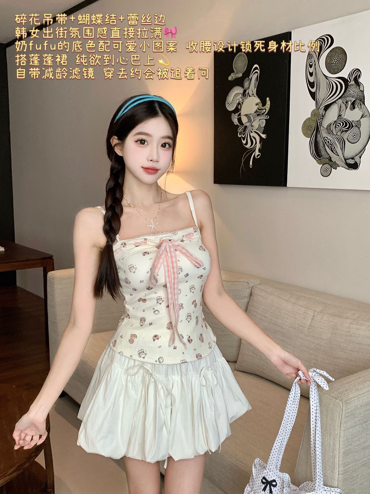 Camisola dulce de estilo con estampado divertido y lazo para mujer otoño 2025 nueva ajuste ceñido y adelgazante con top con almohadilla en el pecho