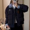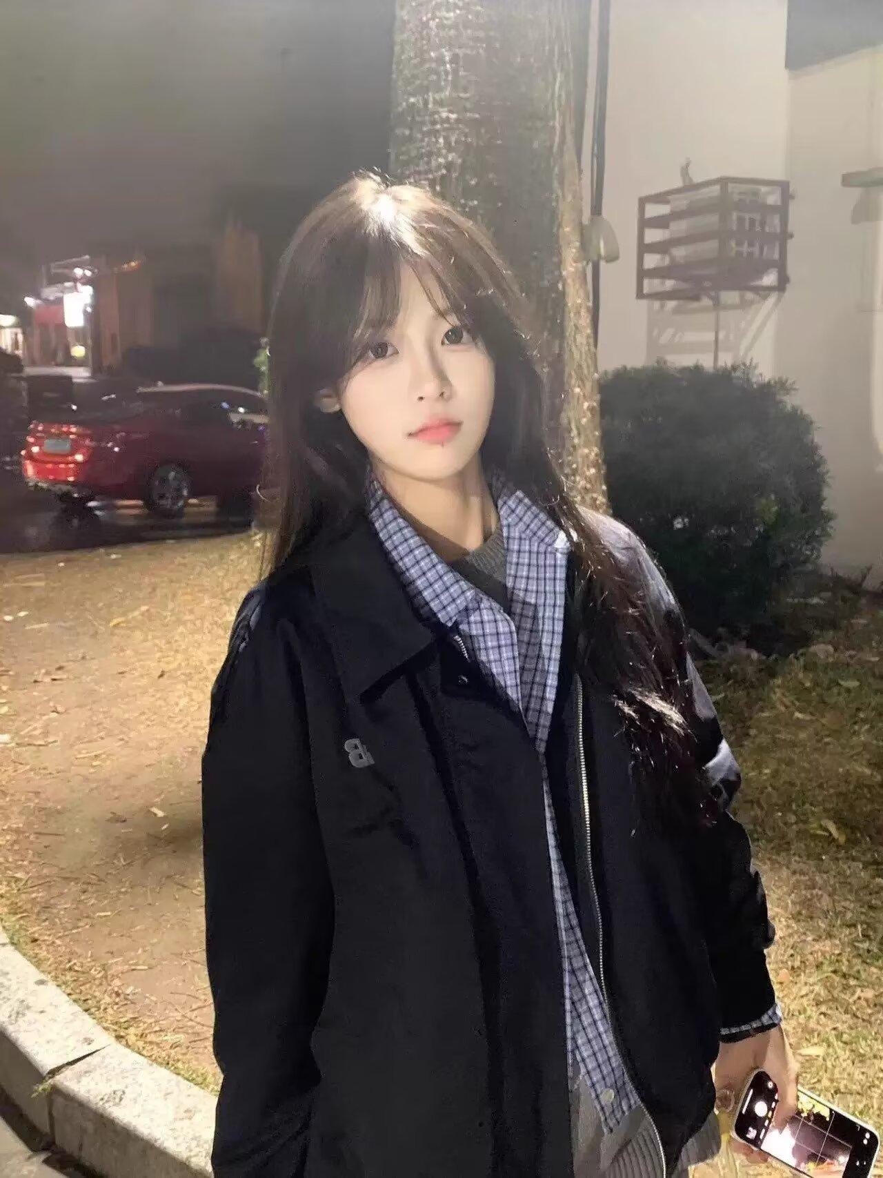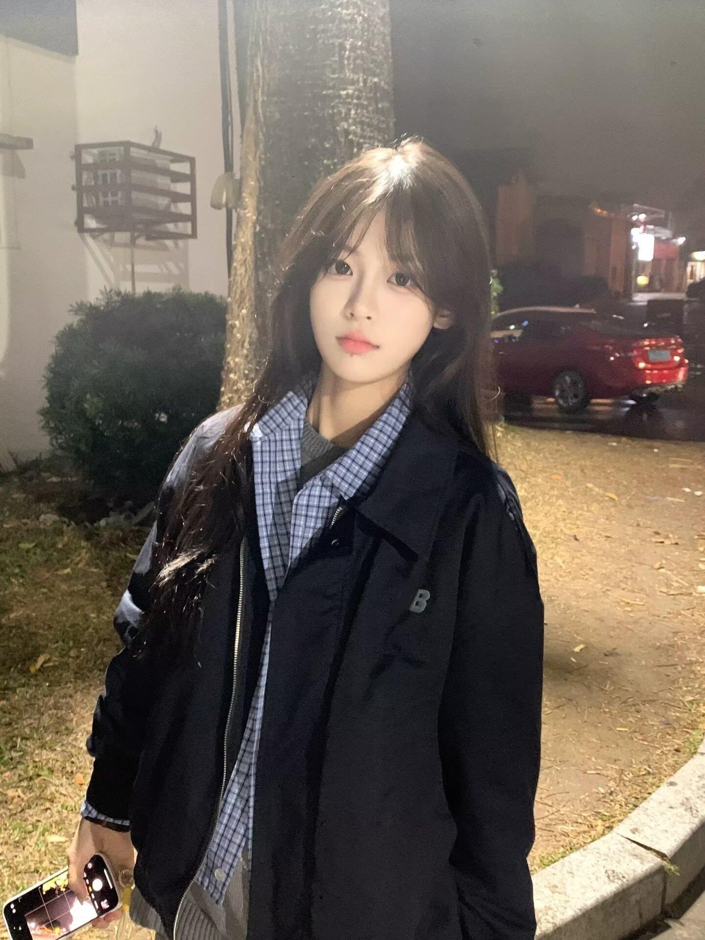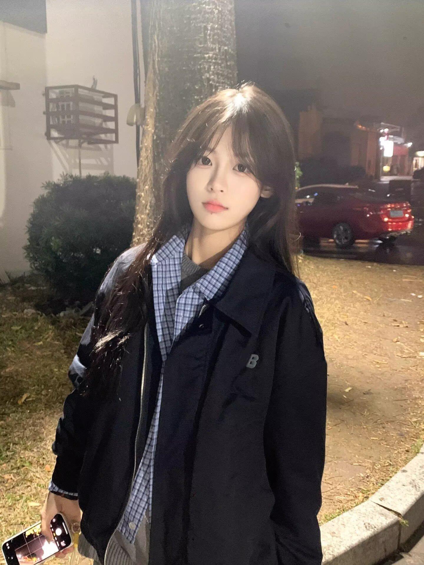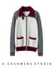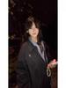 Foto Real Nueva Primavera y Otoño Azul y Blanco a Cuadros Bloque de Color Cuello Vuelto Falso Dos Piezas Bordado Suelto Casual Chaqueta Ropa Exterior para Mujer
