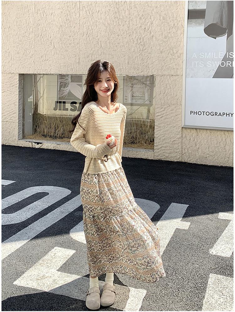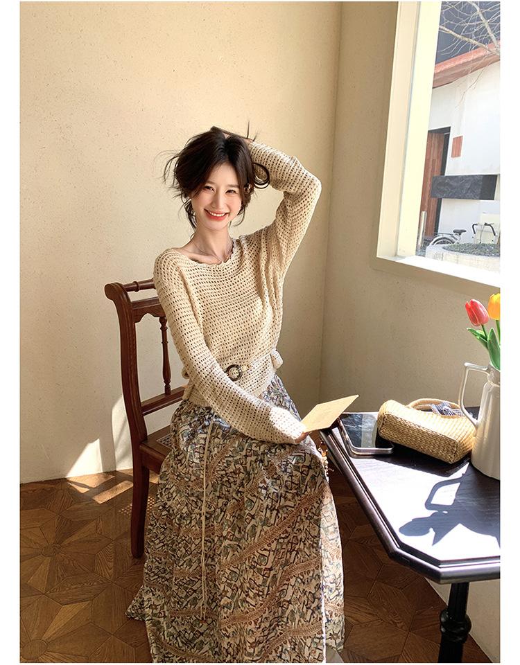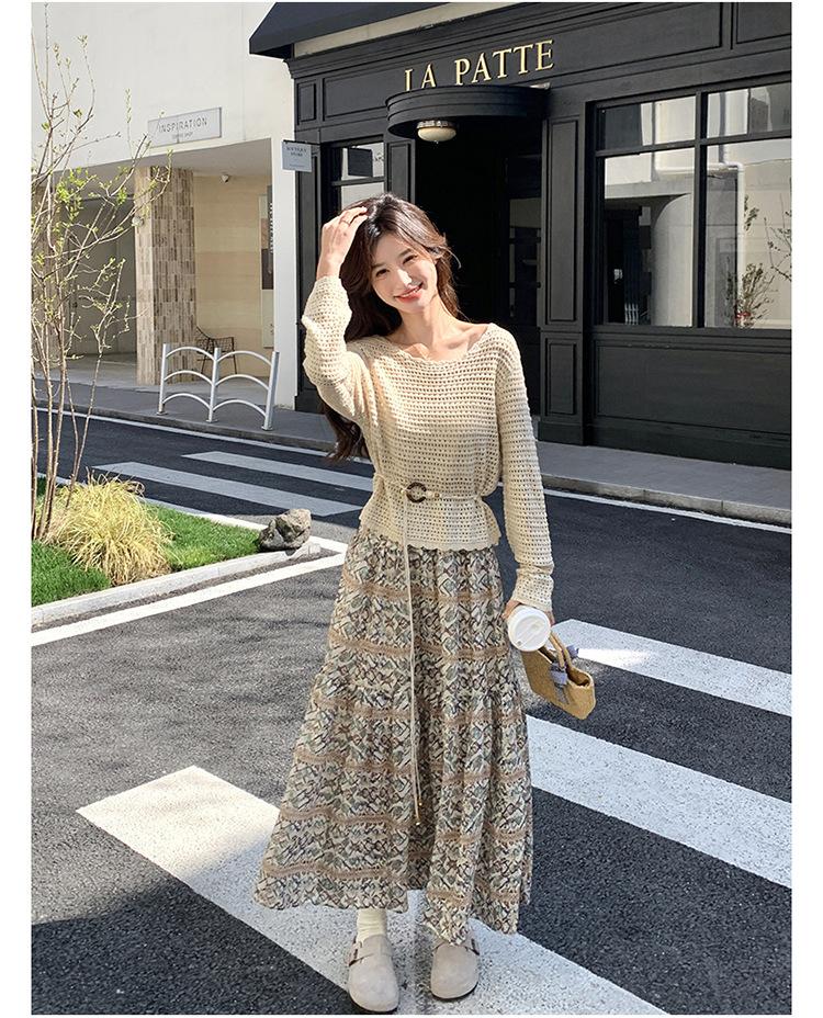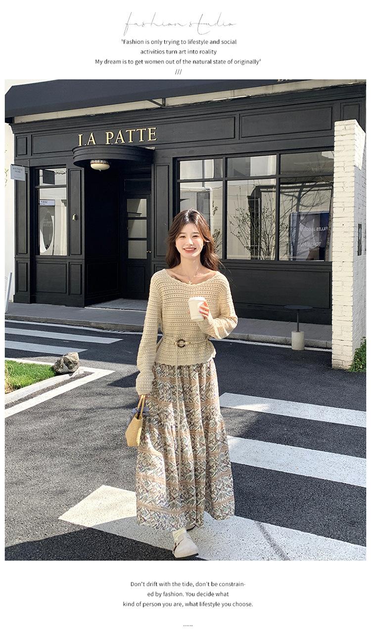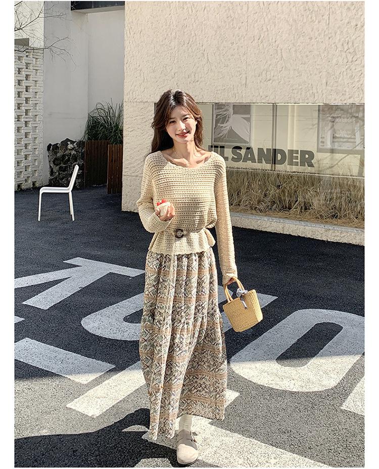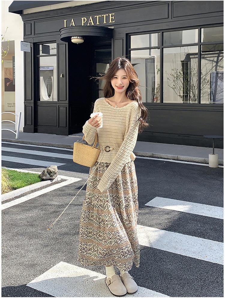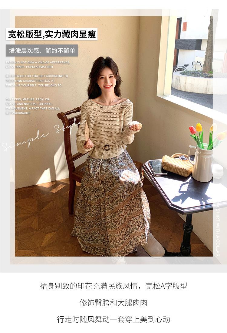 Traje de Mujer Otoño y Primavera Conjunto de Dos Piezas 2025 Nuevo Reductor de Edad Versátil Cómodo Bohemio Conjunto de Dos Piezas Falda Tendencia