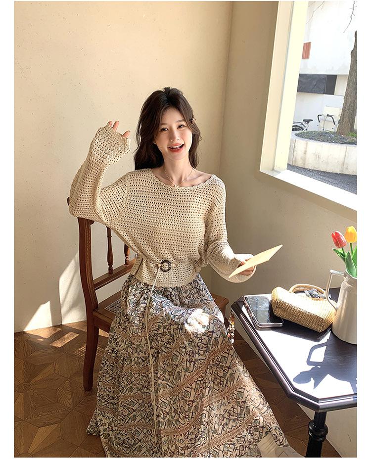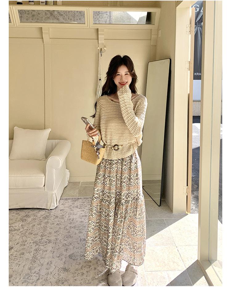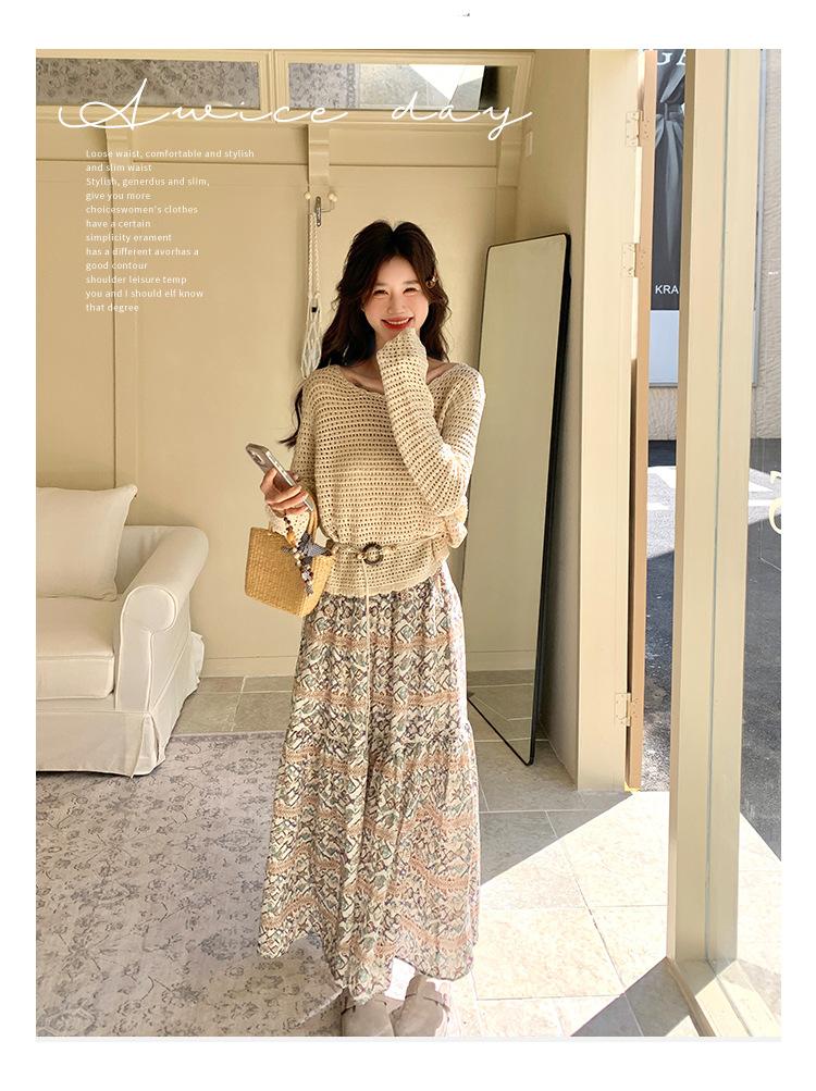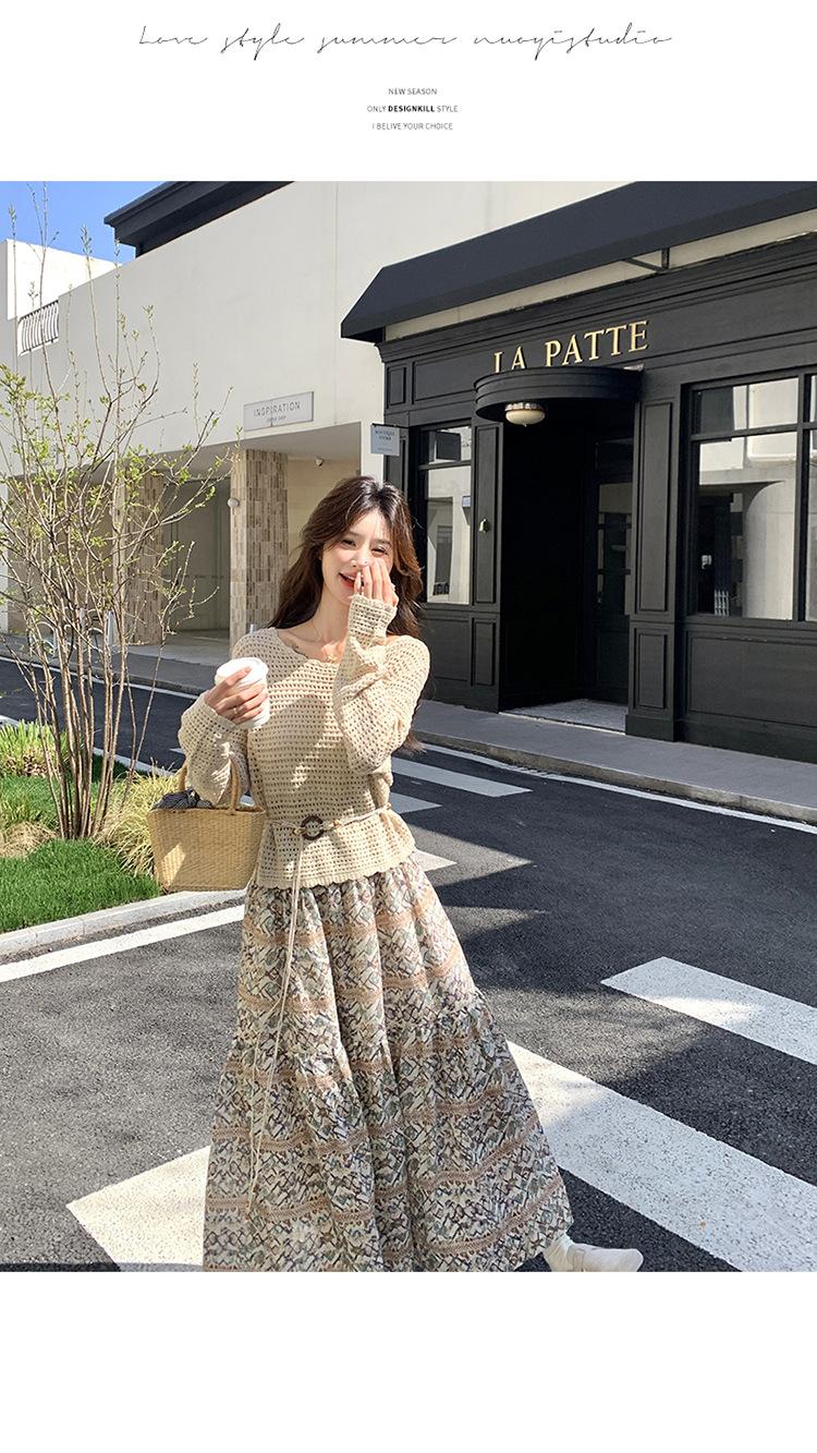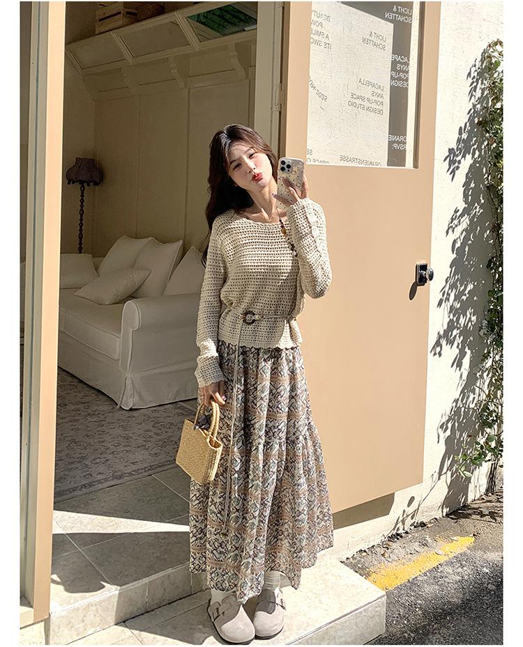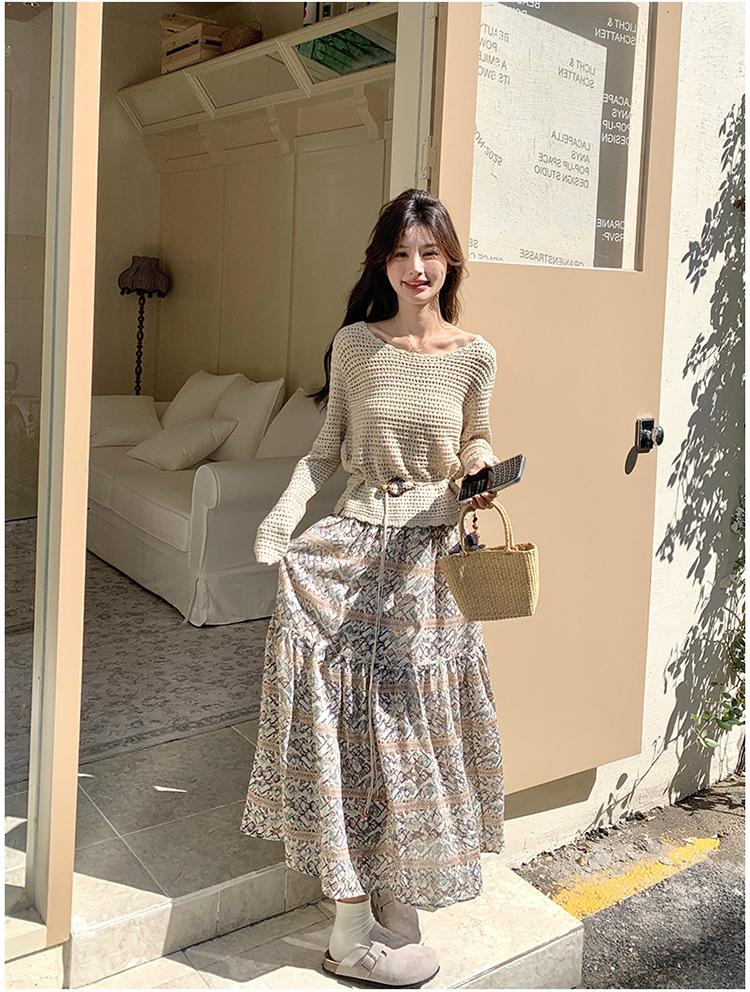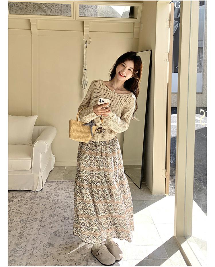Traje de Mujer Otoño y Primavera Conjunto de Dos Piezas 2025 Nuevo Reductor de Edad Versátil Cómodo Bohemio Conjunto de Dos Piezas Falda Tendencia