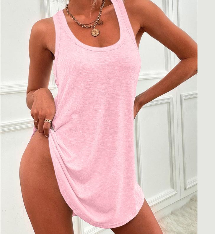 Verano europeo y americano nuevo color sólido chaleco holgado top sin mangas de largo medio para mujer temperamento viajero