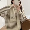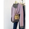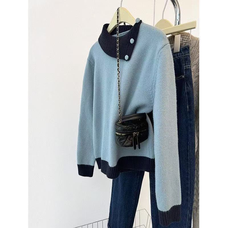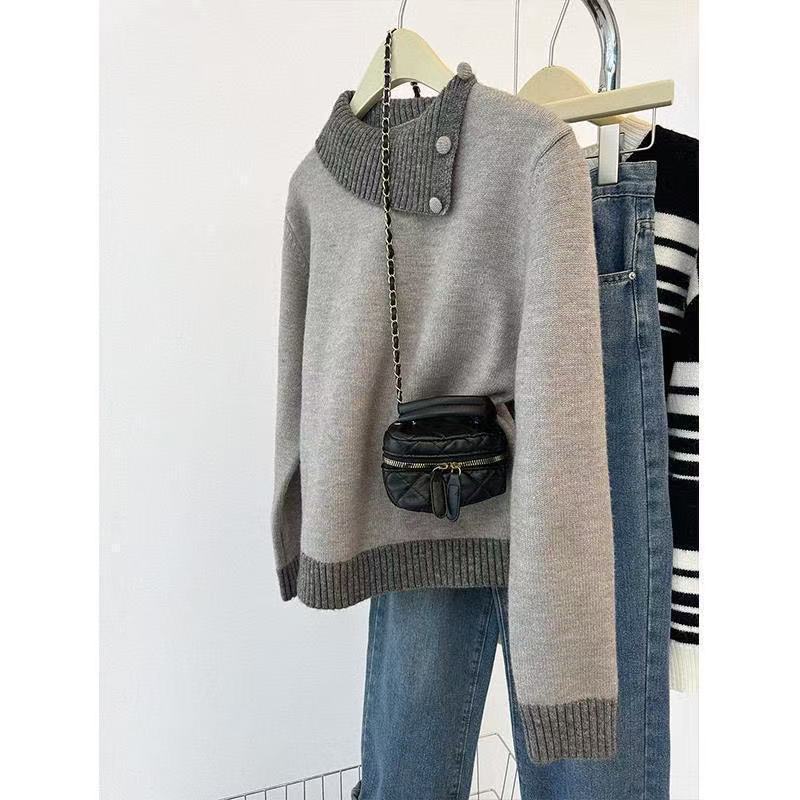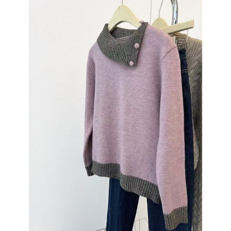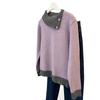 Suéter Base de Punto Suave Cálido Delgado Holgado con Solapa y Lazos Laterales Estilo Coreano Suave de Invierno con Bloque de Color para Mujer