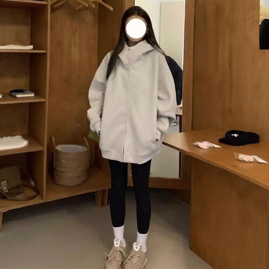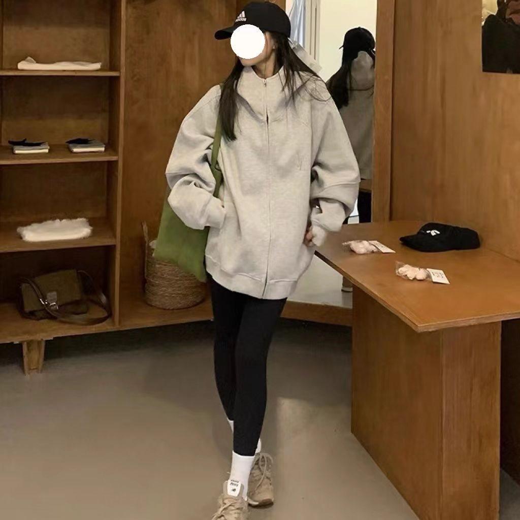 Sudadera holgada con capucha estilo ins otoño temperamento versátil holgada deportiva chaqueta cárdigan