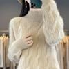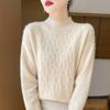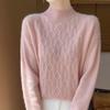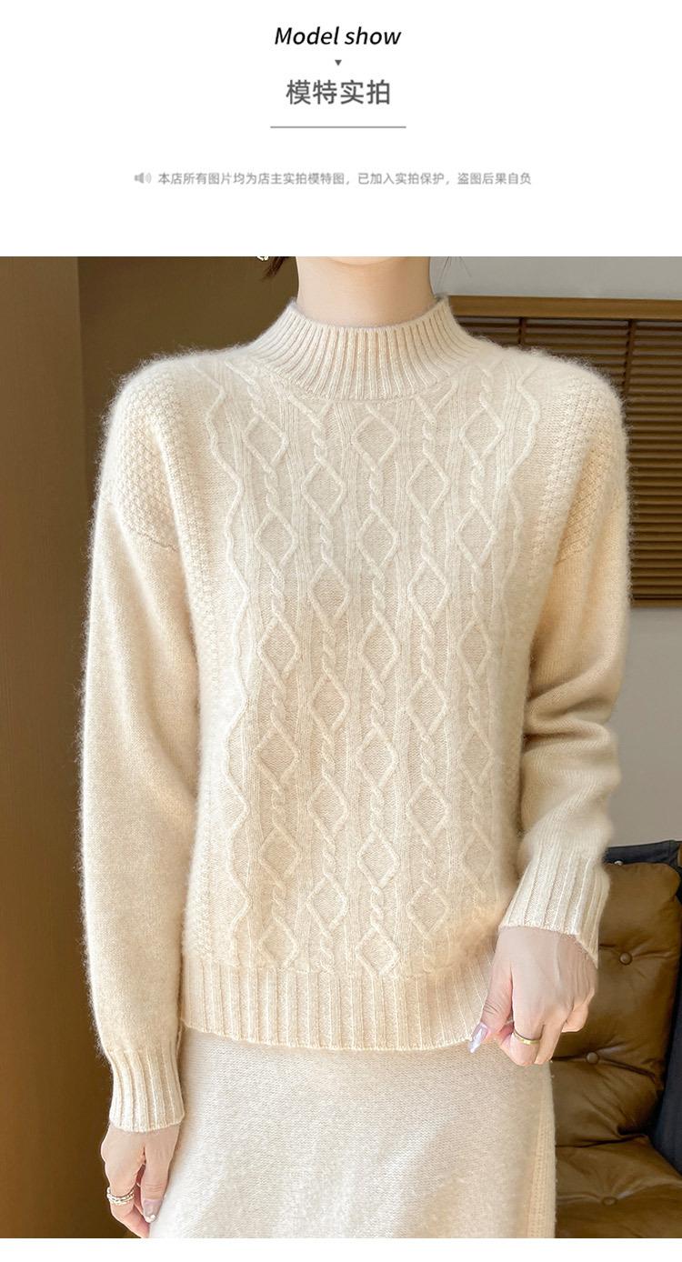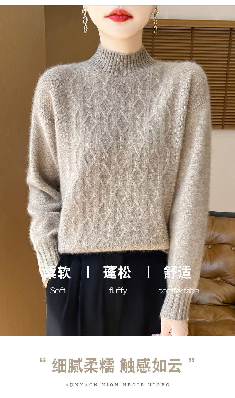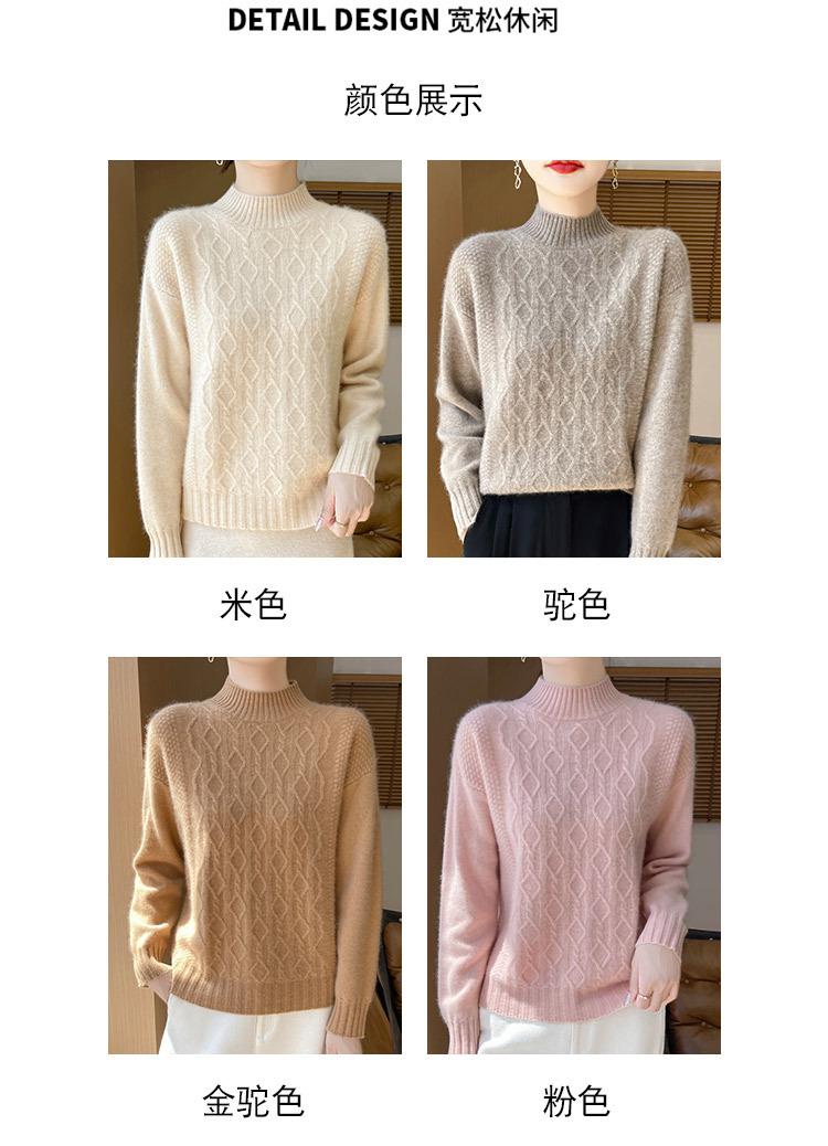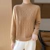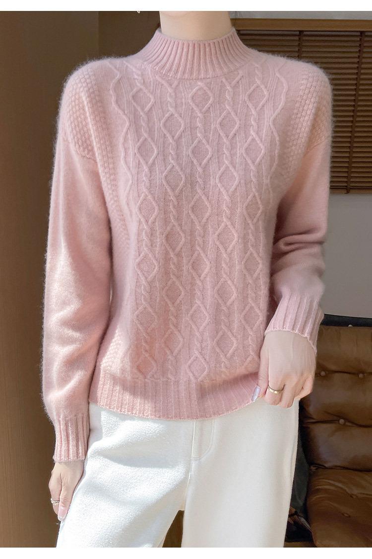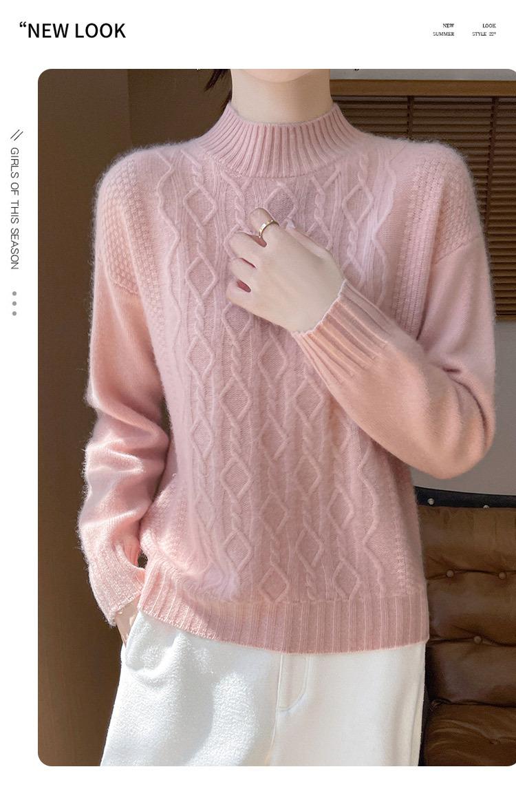 Otoño e invierno 2024 nuevo suéter de lana pura con cuello semi alto, tejido de punto trenzado de rombos de alta resistencia, jersey cálido de base para mujer