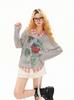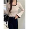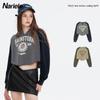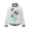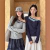 TKPA Sudadera de Manga Larga de Dos Piezas Falsas Retro Americana con Cuello Polo para Mujer Estilo Preppy de Cuadros Ligeramente Transparente Ropa de Punto Casual Otoño