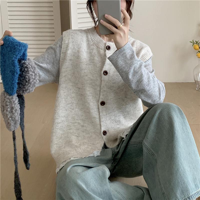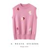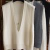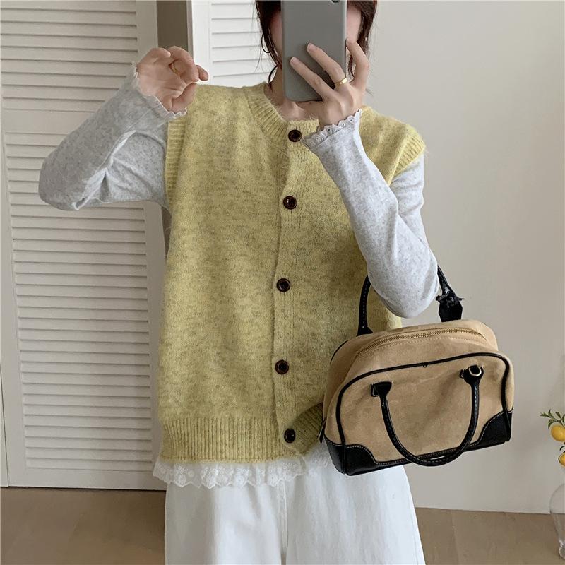 Estación Europea 2025 Primavera Nuevo Simple Color Sólido Pecho Sencillo Punto Alpaca Chaleco Cárdigan sin Mangas Top Mujer