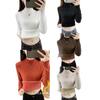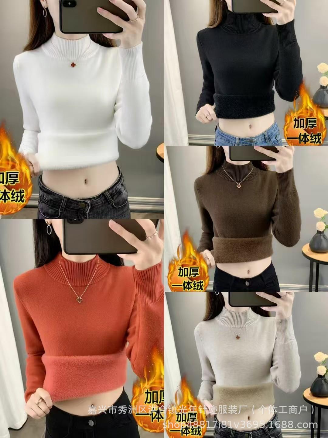 Suéter de forro polar de una pieza con cuello medio alto para mujer, punto de otoño e invierno, más terciopelo, más grueso y cálido, ropa interior, camisa básica de punto para mujer