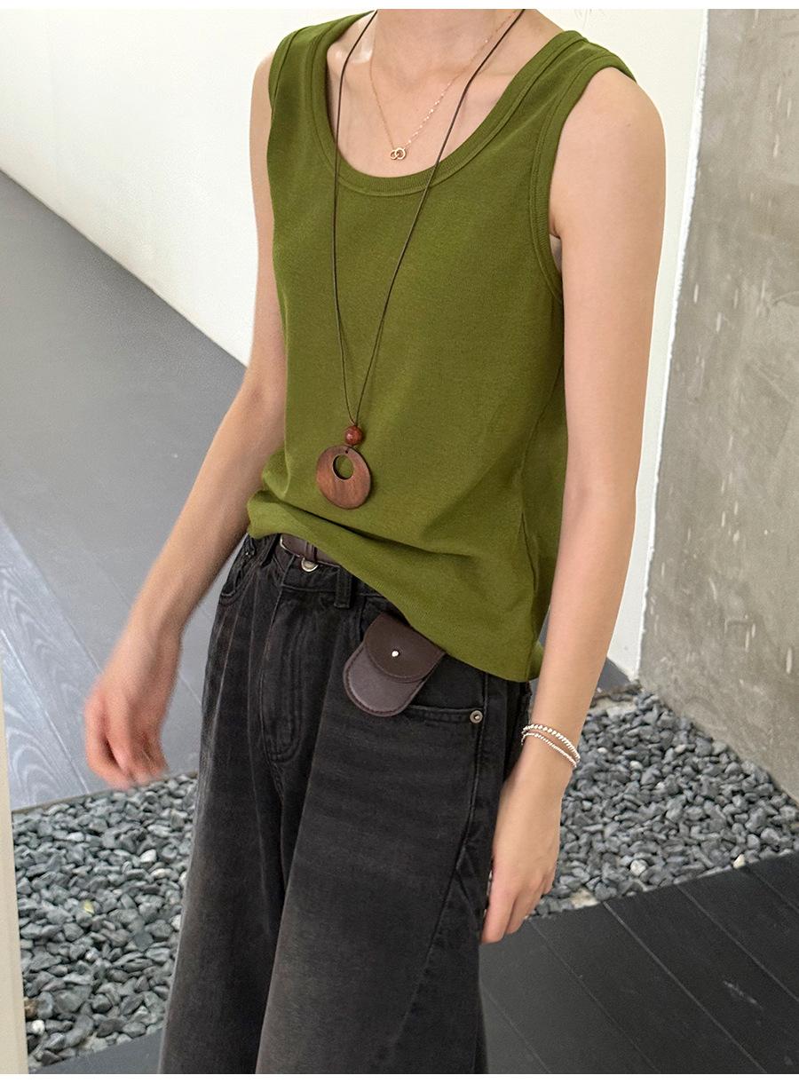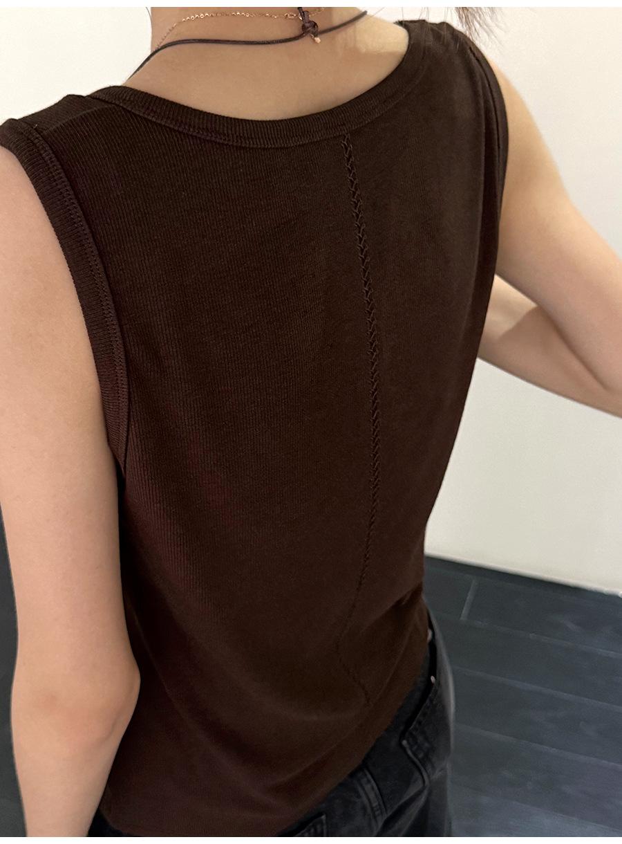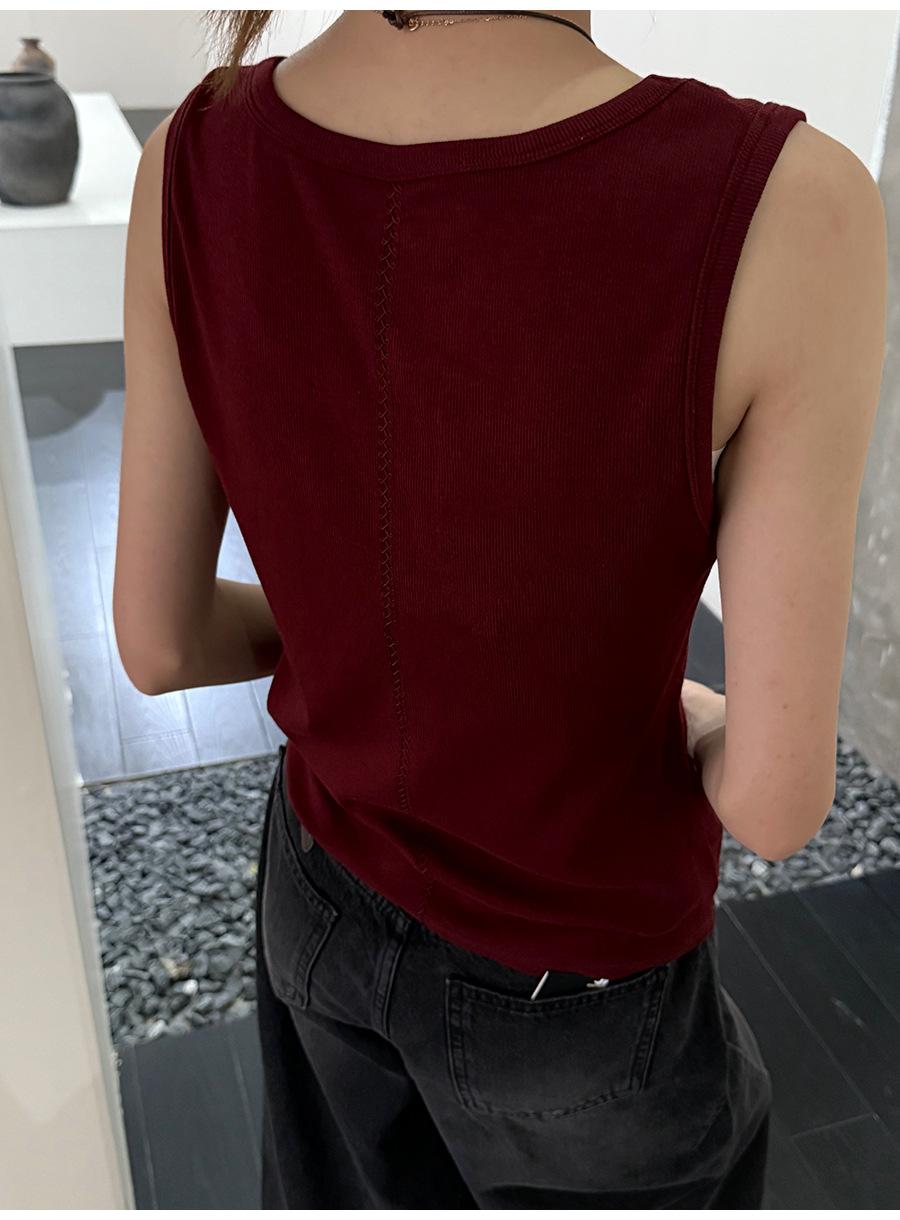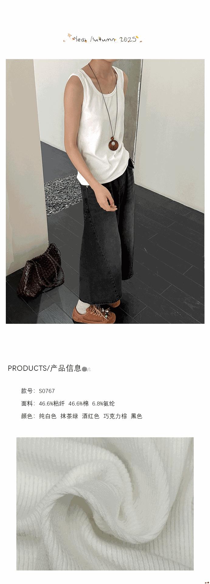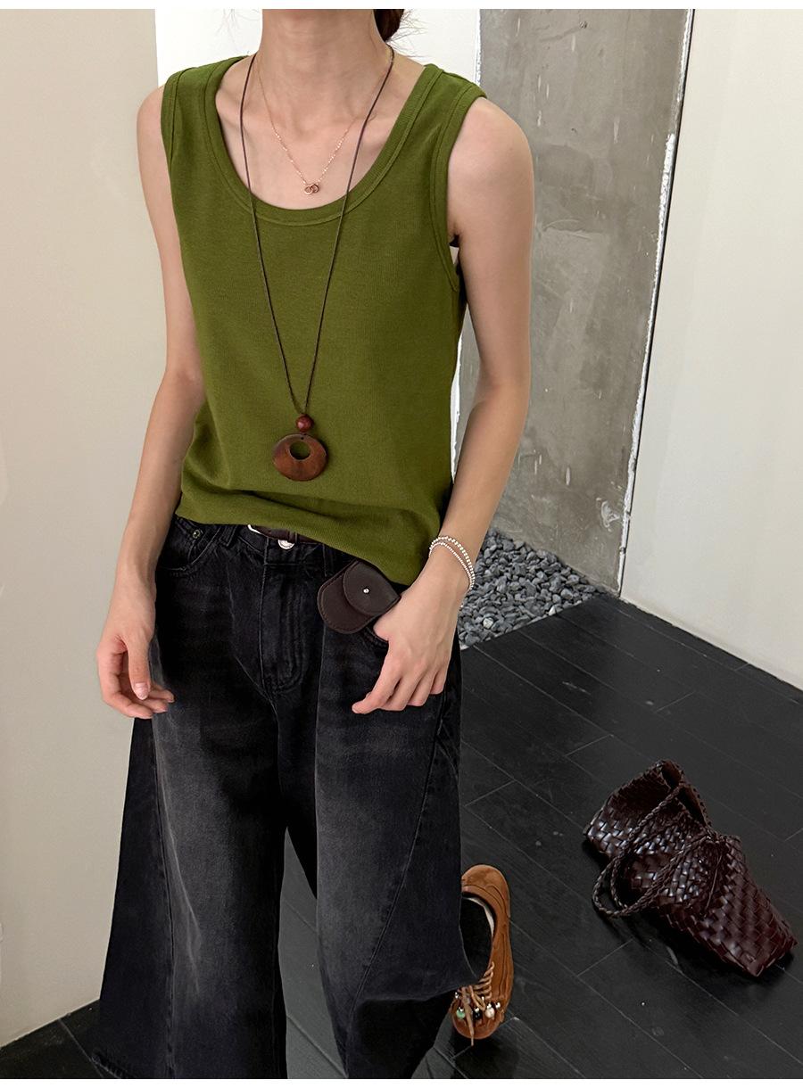 Lino Otoño Temprano Nuevo Versátil Elástico Acanalado Simple Chaleco Sin Mangas Mujer 2025 Espalda Empalmada Top Interior Moderno