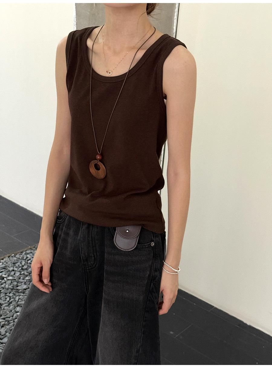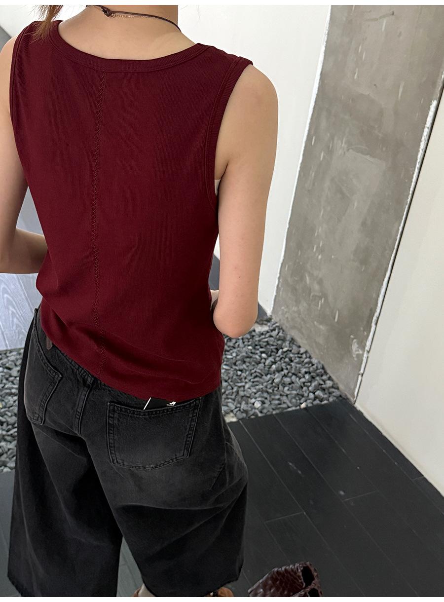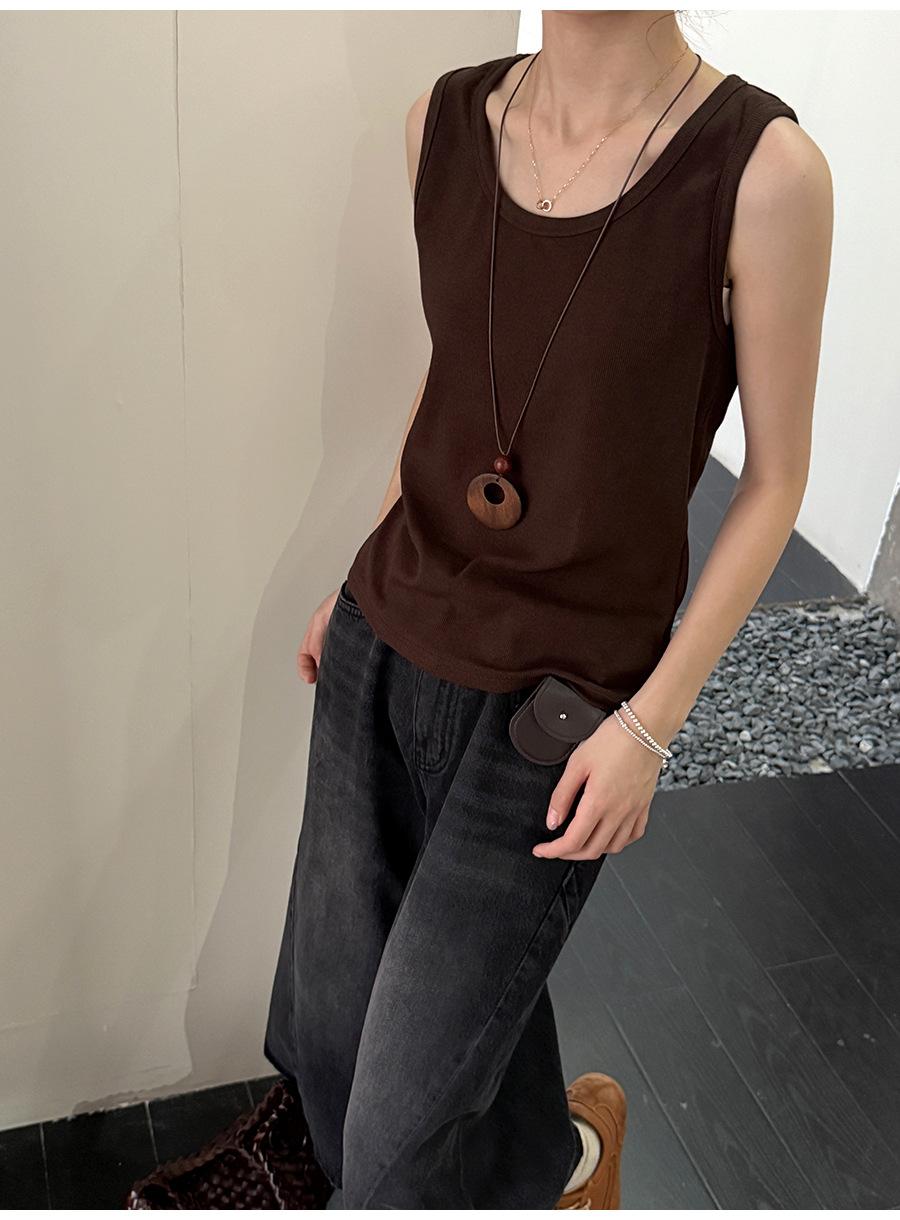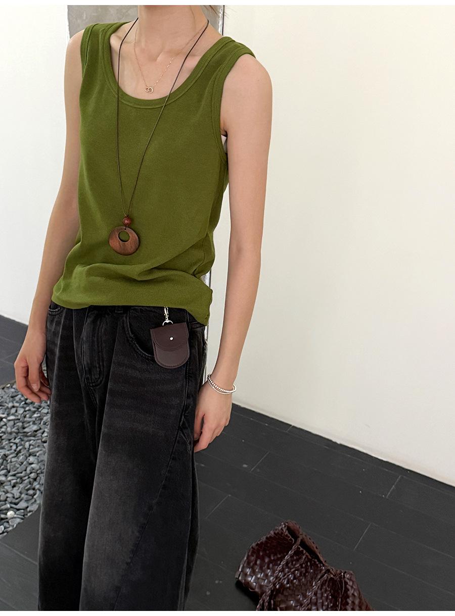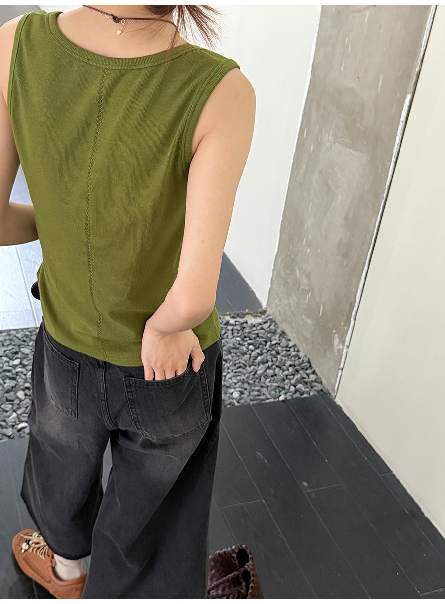 Lino Otoño Temprano Nuevo Versátil Elástico Acanalado Simple Chaleco Sin Mangas Mujer 2025 Espalda Empalmada Top Interior Moderno