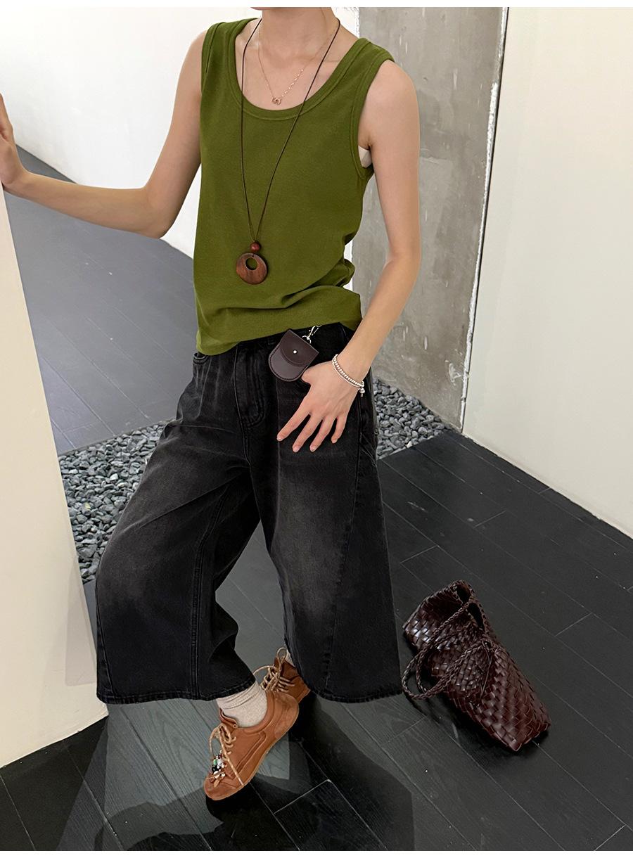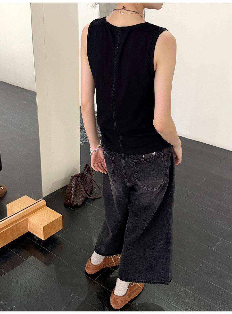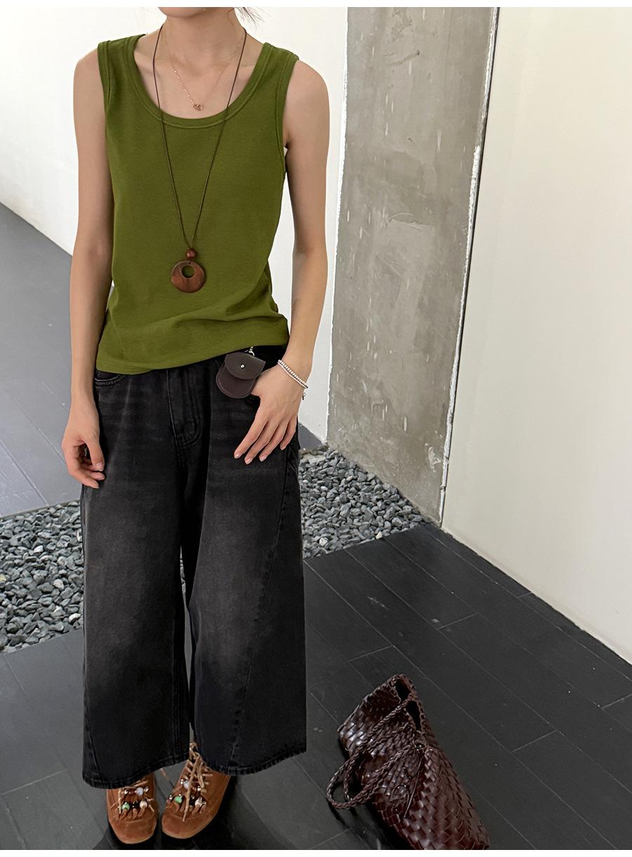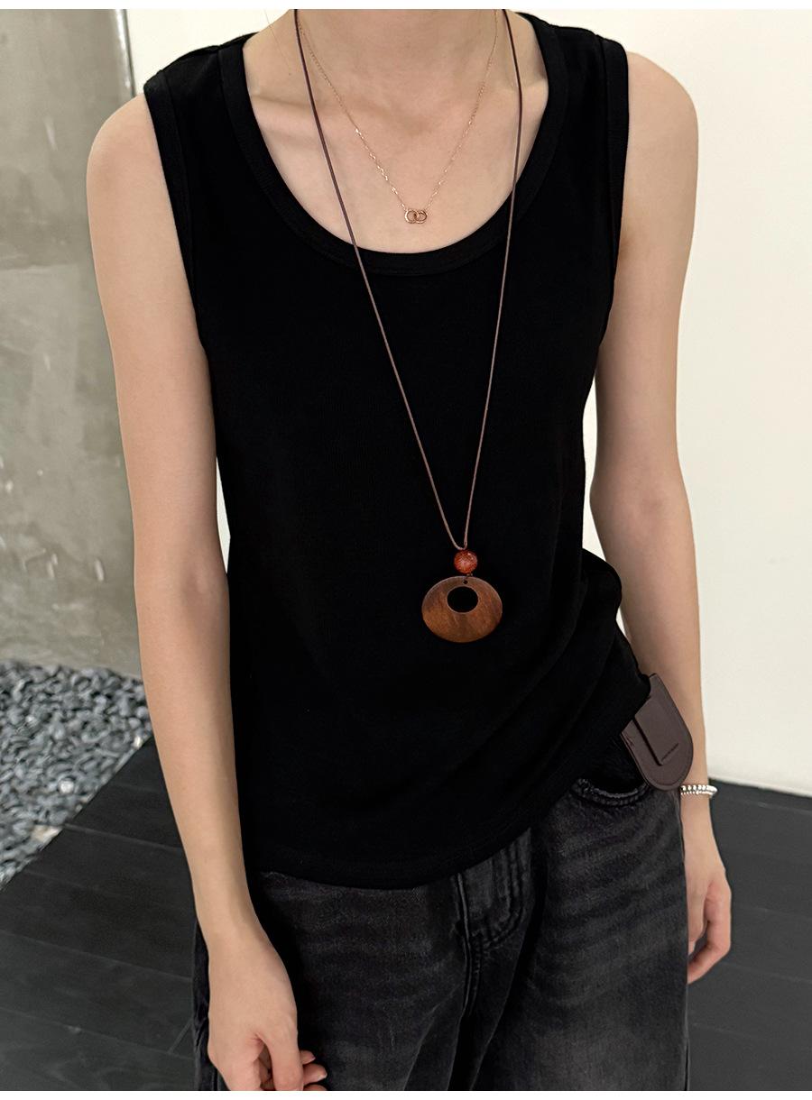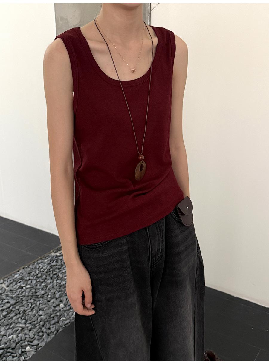 Lino Otoño Temprano Nuevo Versátil Elástico Acanalado Simple Chaleco Sin Mangas Mujer 2025 Espalda Empalmada Top Interior Moderno