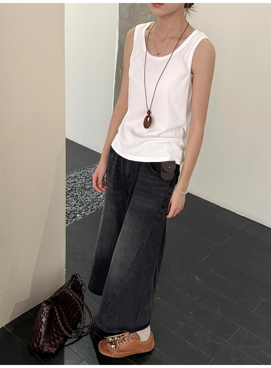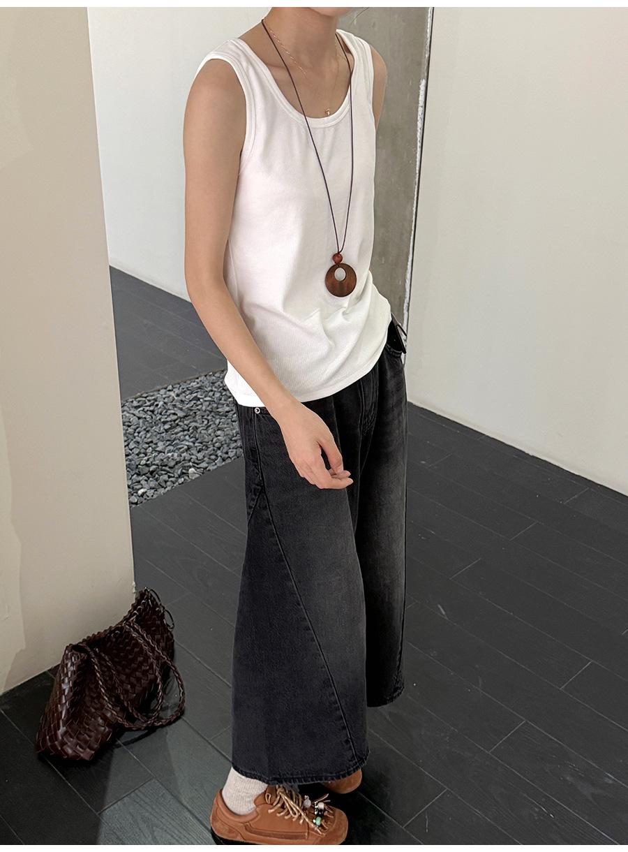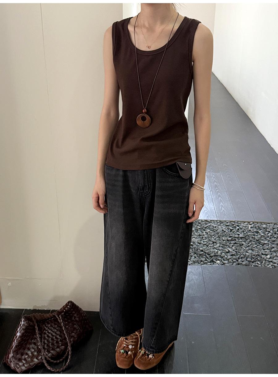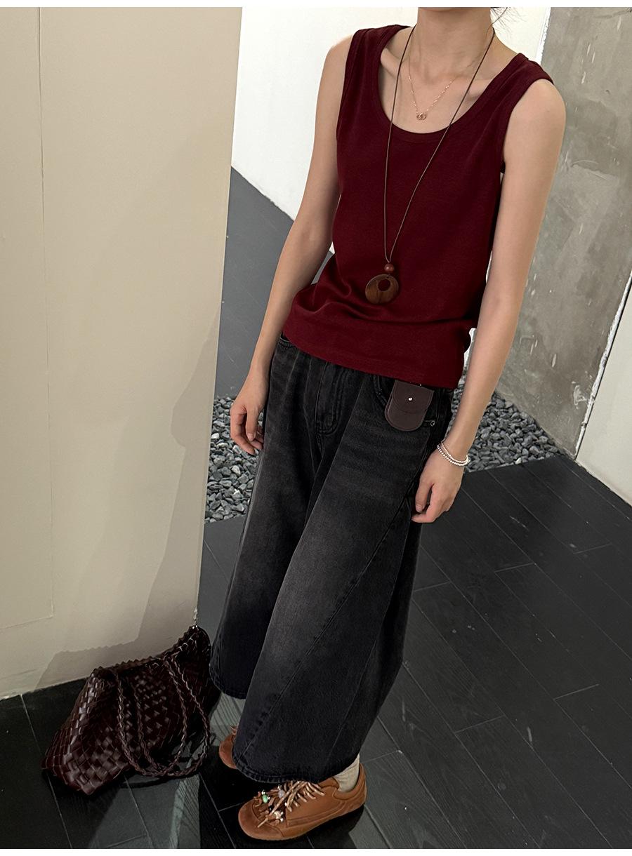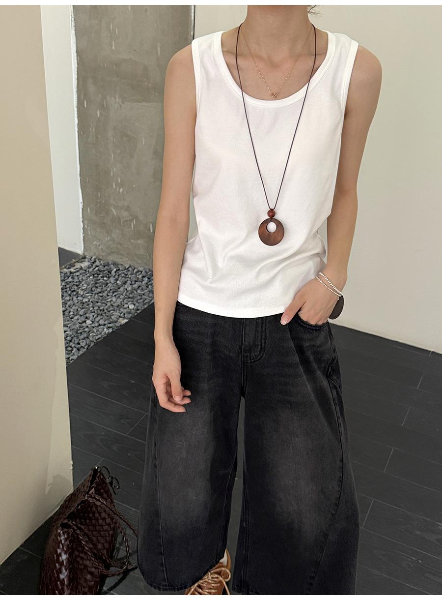 Lino Otoño Temprano Nuevo Versátil Elástico Acanalado Simple Chaleco Sin Mangas Mujer 2025 Espalda Empalmada Top Interior Moderno