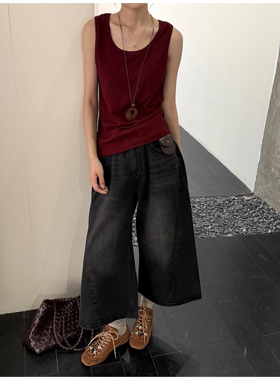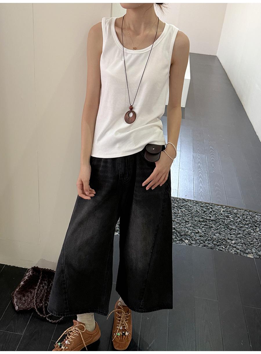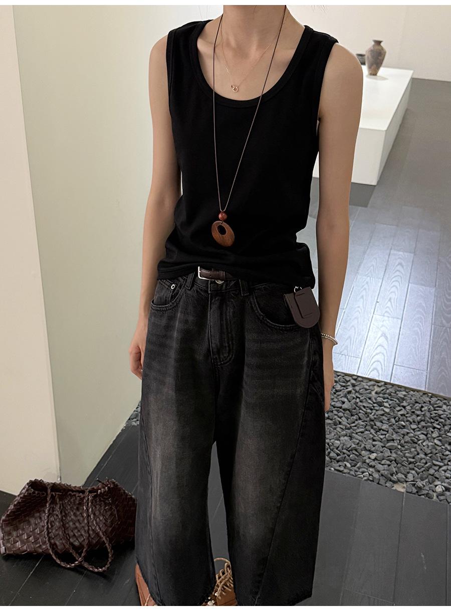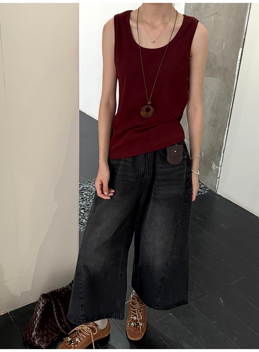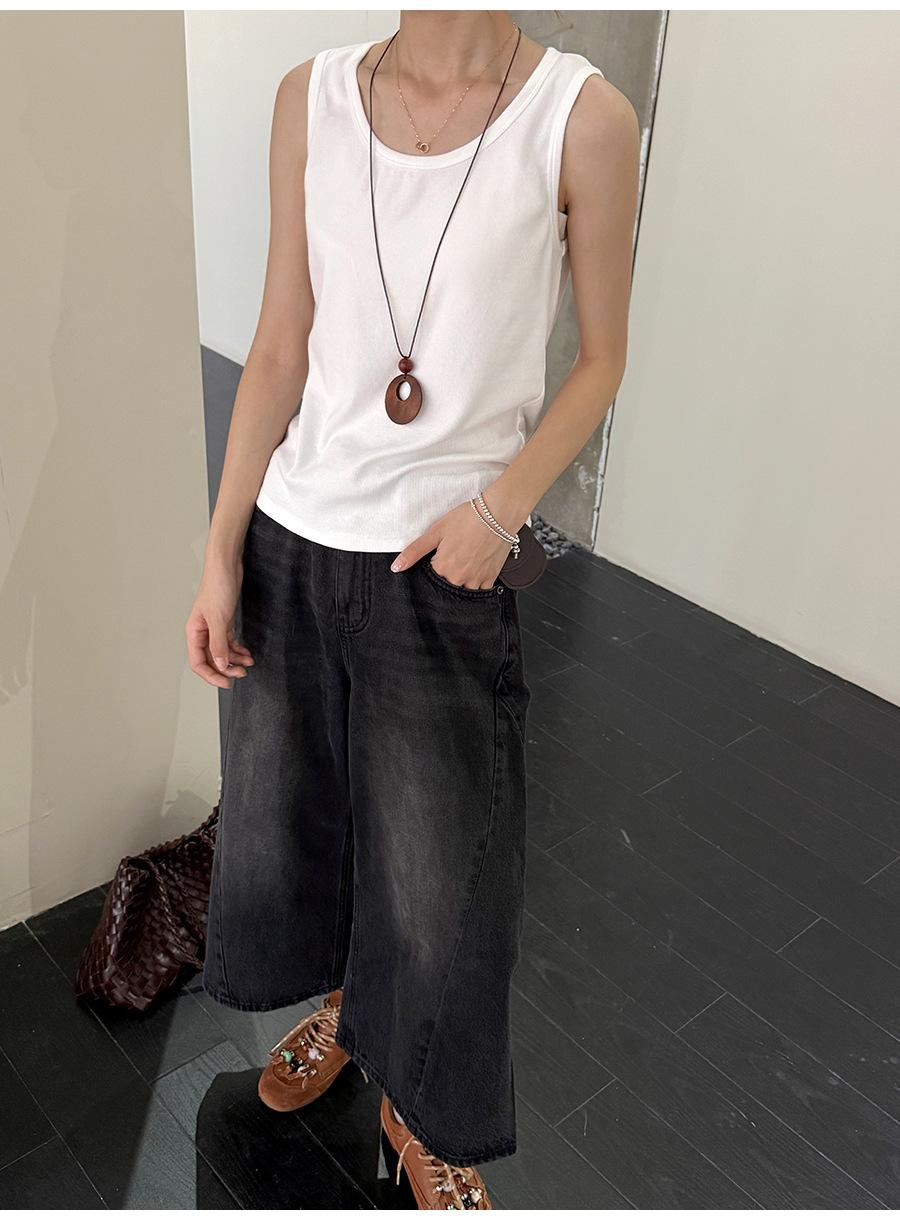 Lino Otoño Temprano Nuevo Versátil Elástico Acanalado Simple Chaleco Sin Mangas Mujer 2025 Espalda Empalmada Top Interior Moderno
