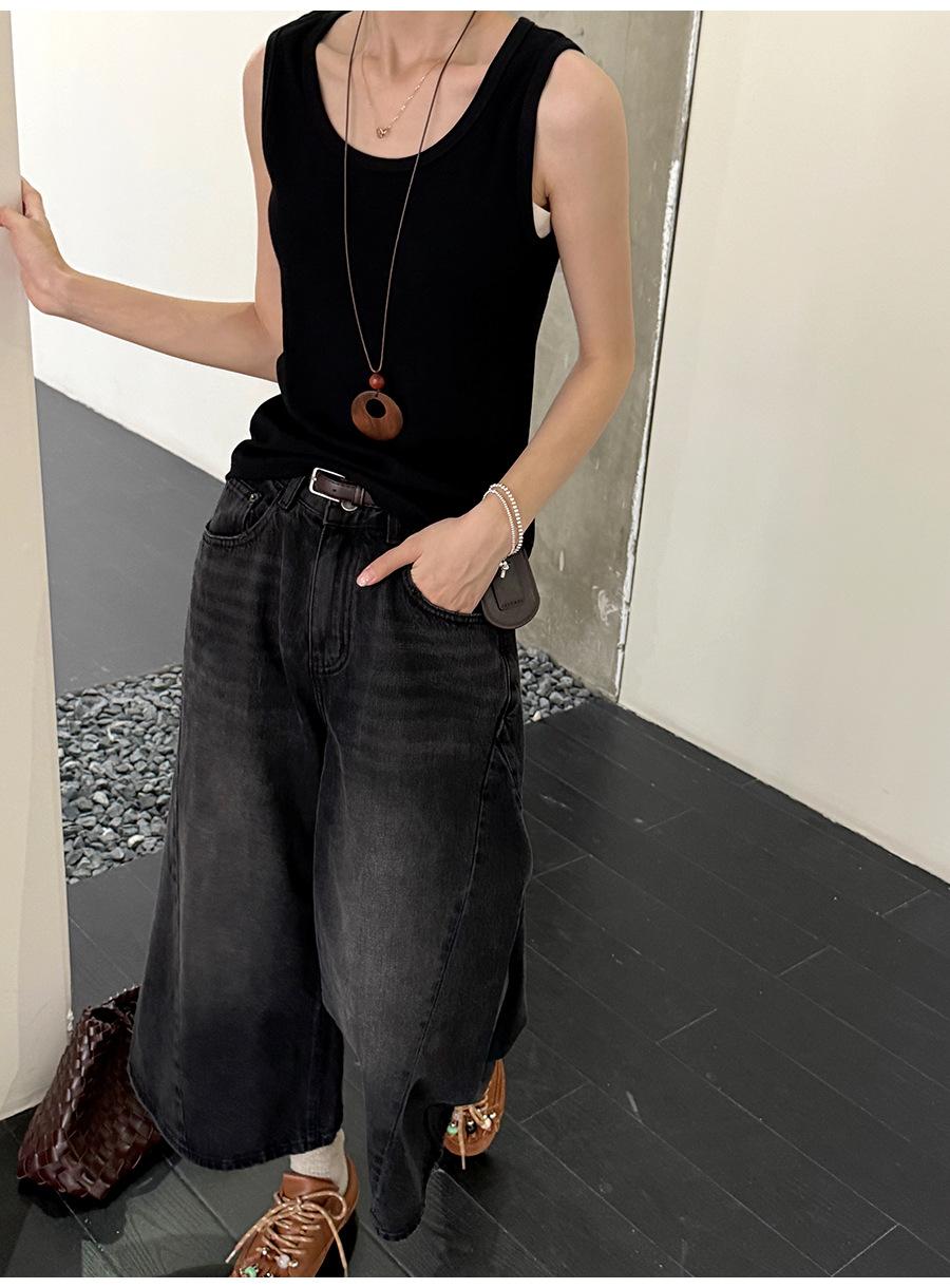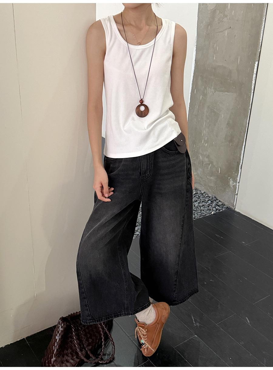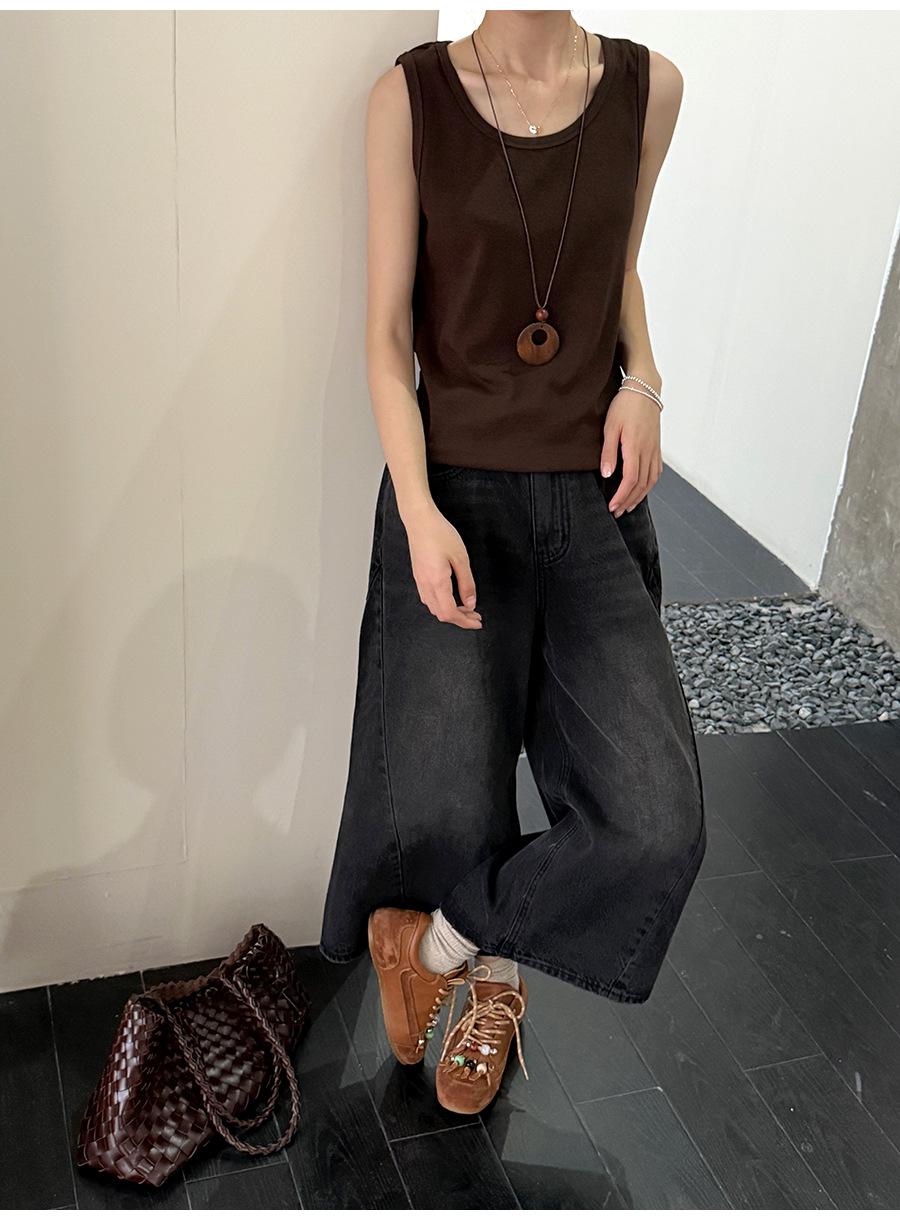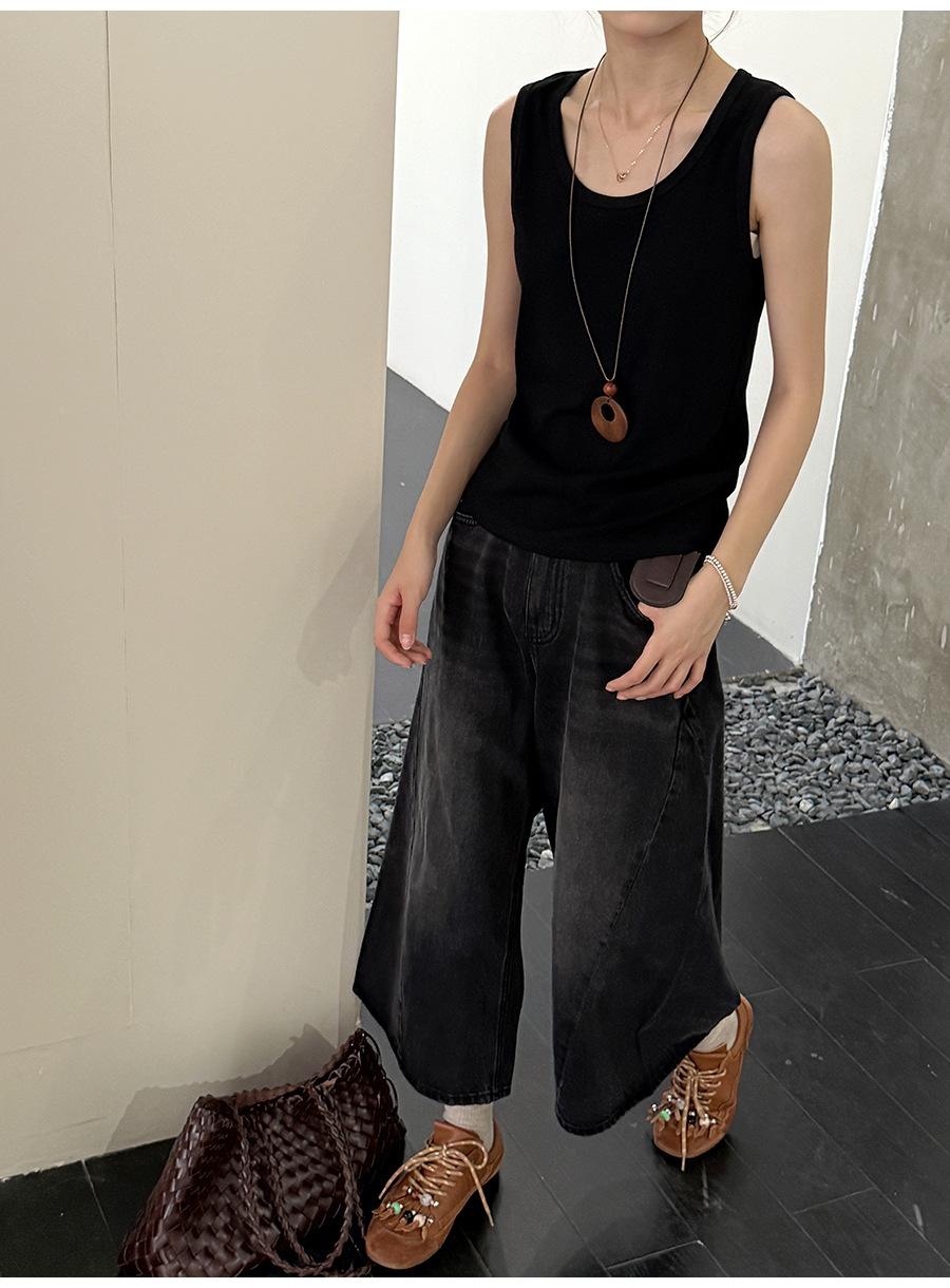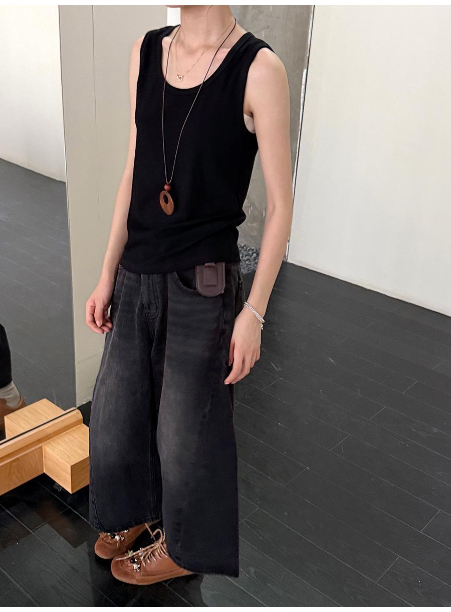 Lino Otoño Temprano Nuevo Versátil Elástico Acanalado Simple Chaleco Sin Mangas Mujer 2025 Espalda Empalmada Top Interior Moderno