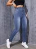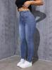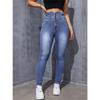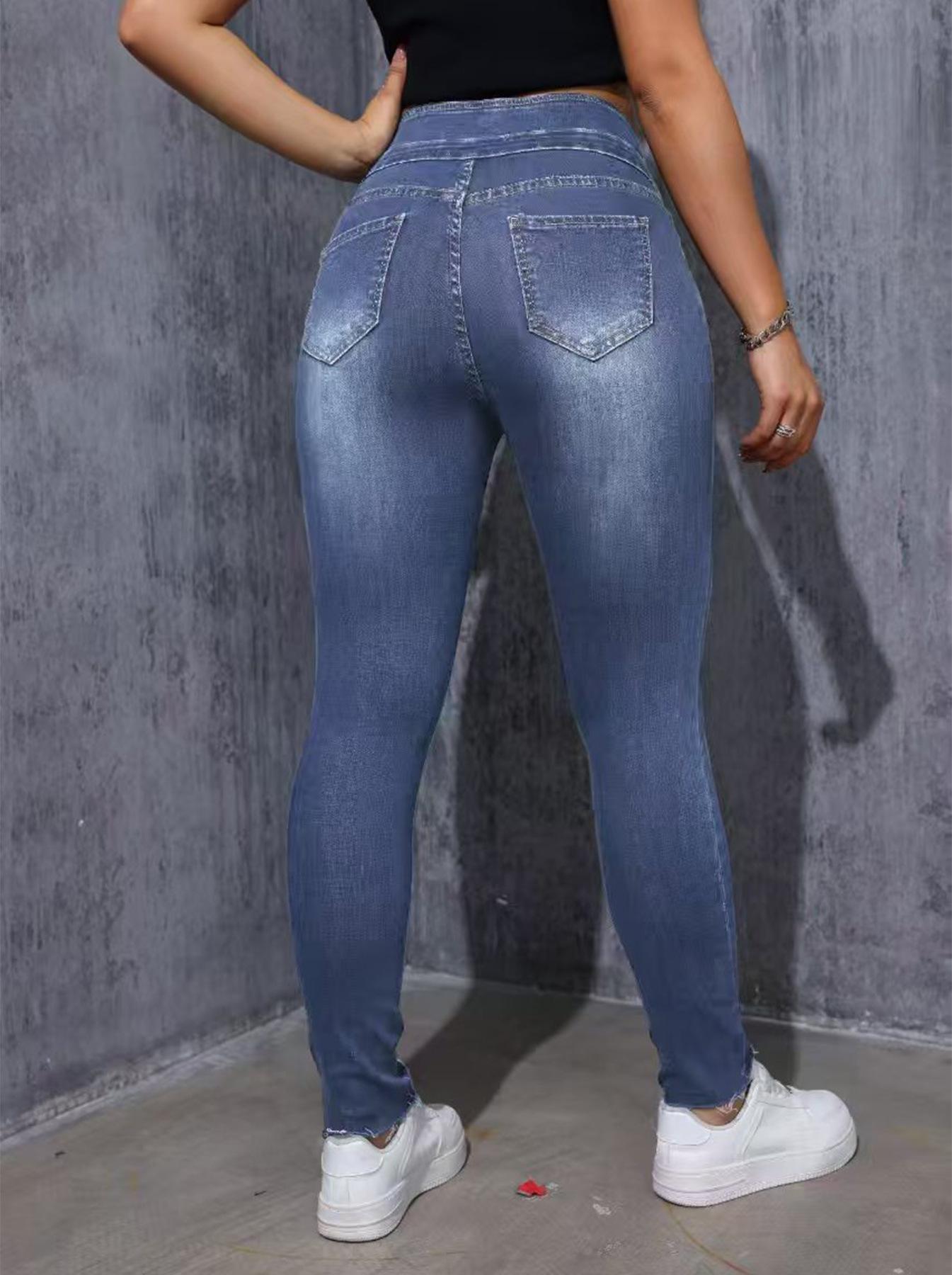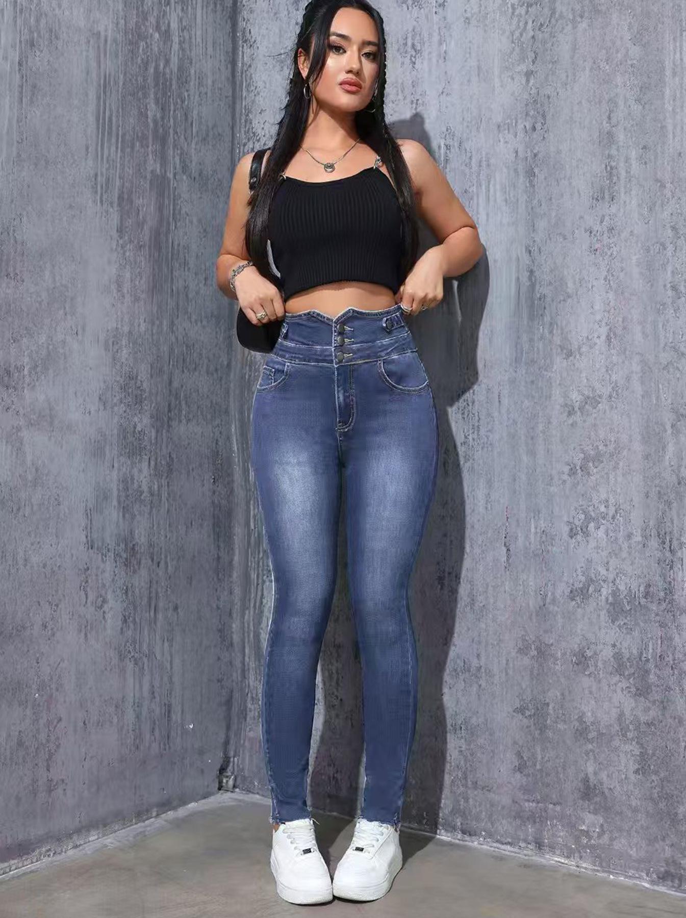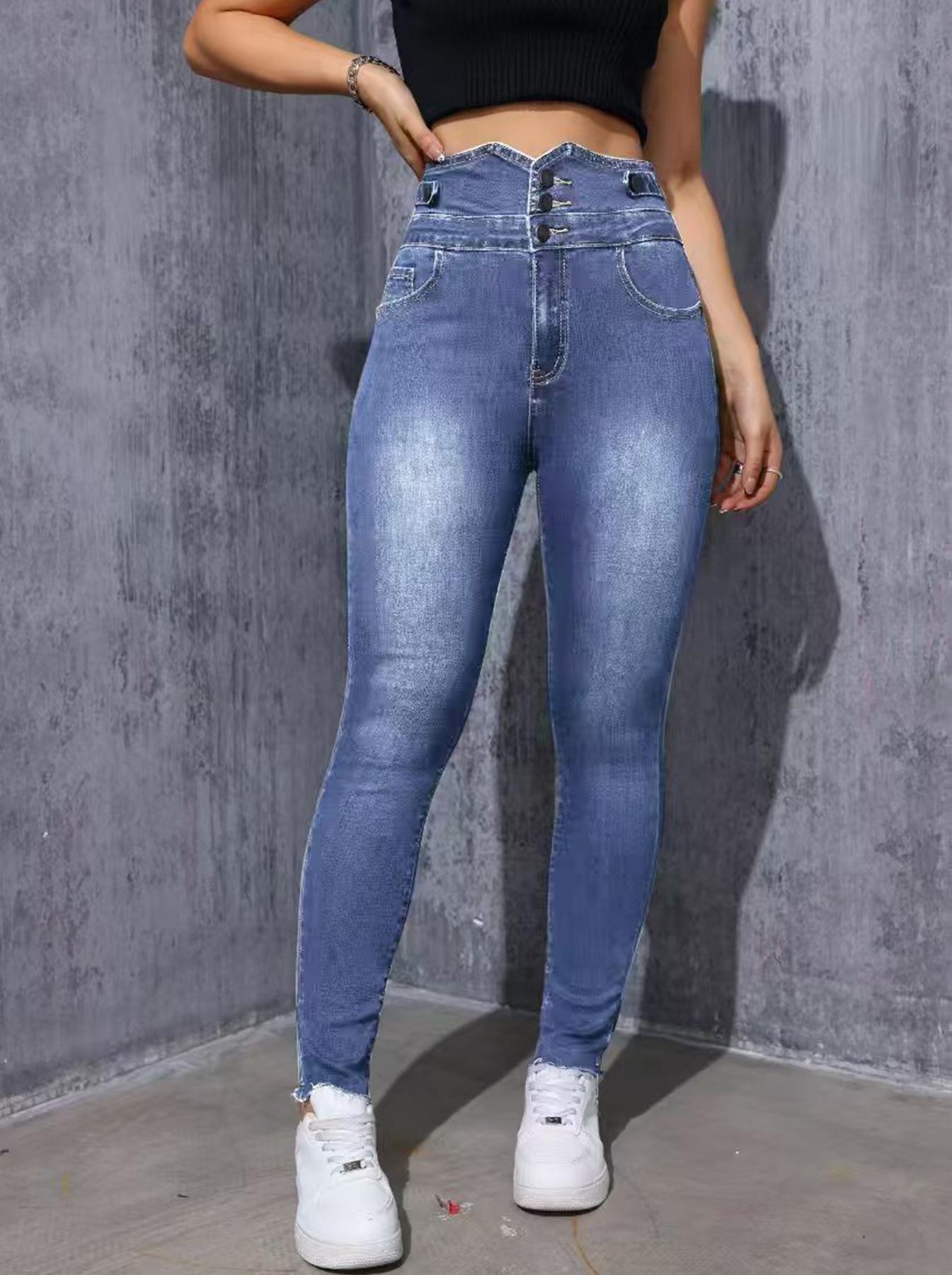 Jeans Elásticos de Cintura Alta Europeos y Americanos Transfronterizos Decoración de Cintura Elásticos Ajustados Pantalones Skinny de Mezclilla para Mujer