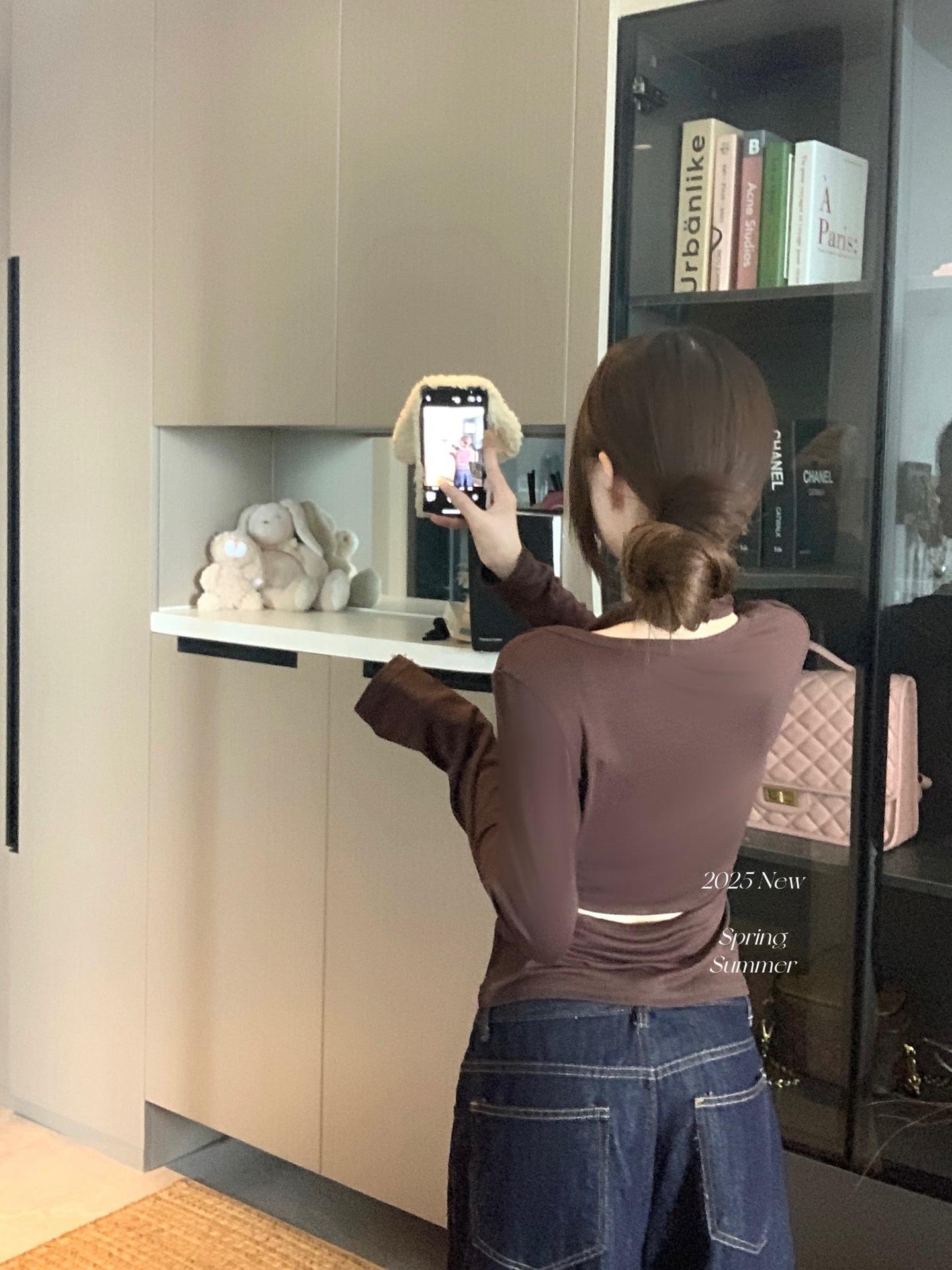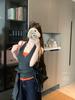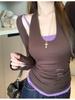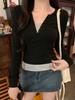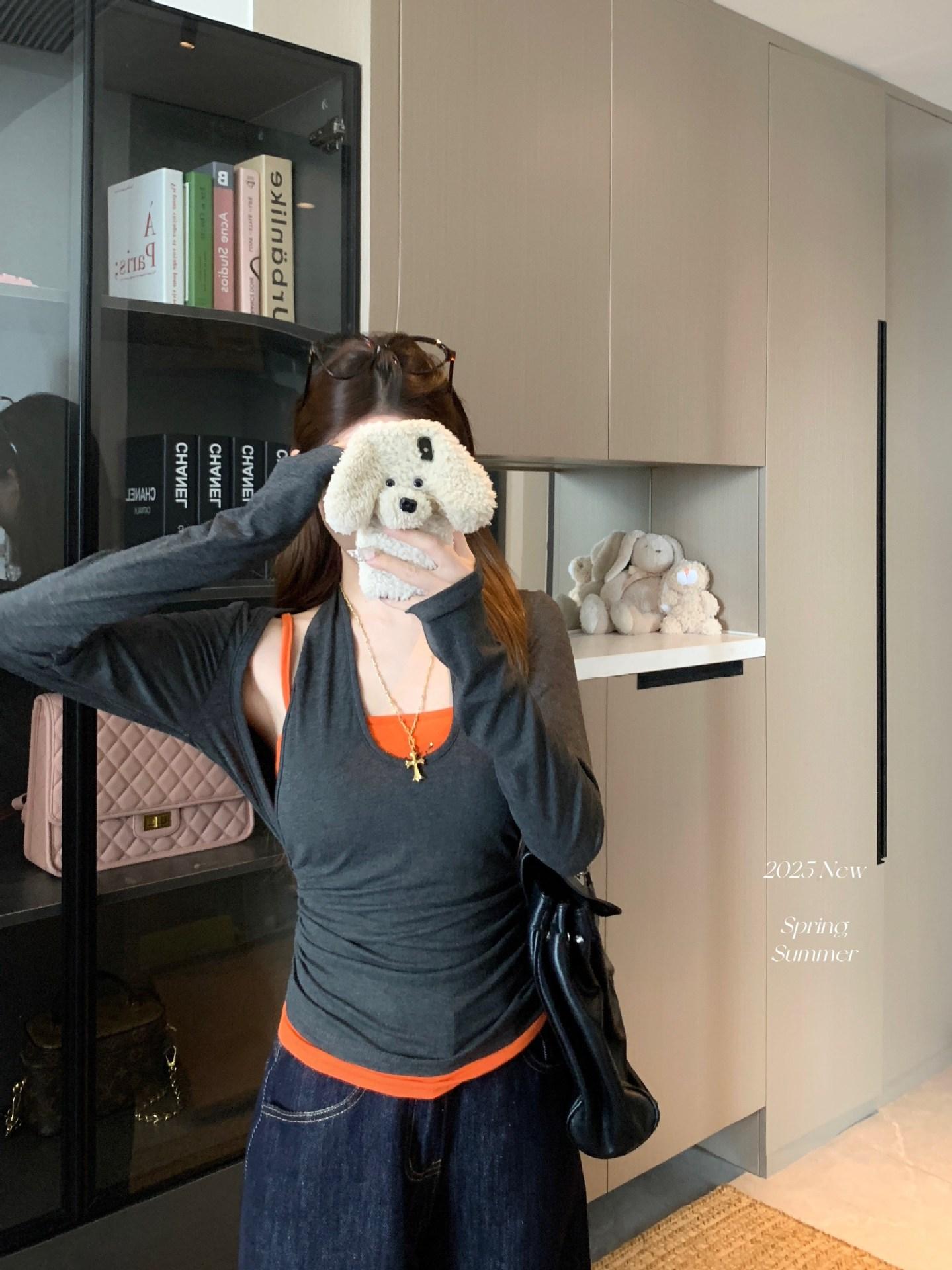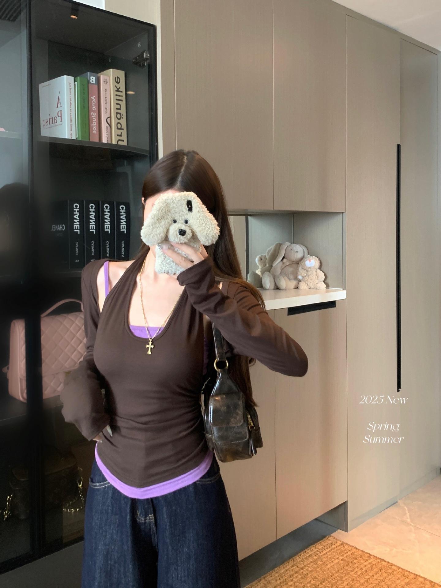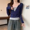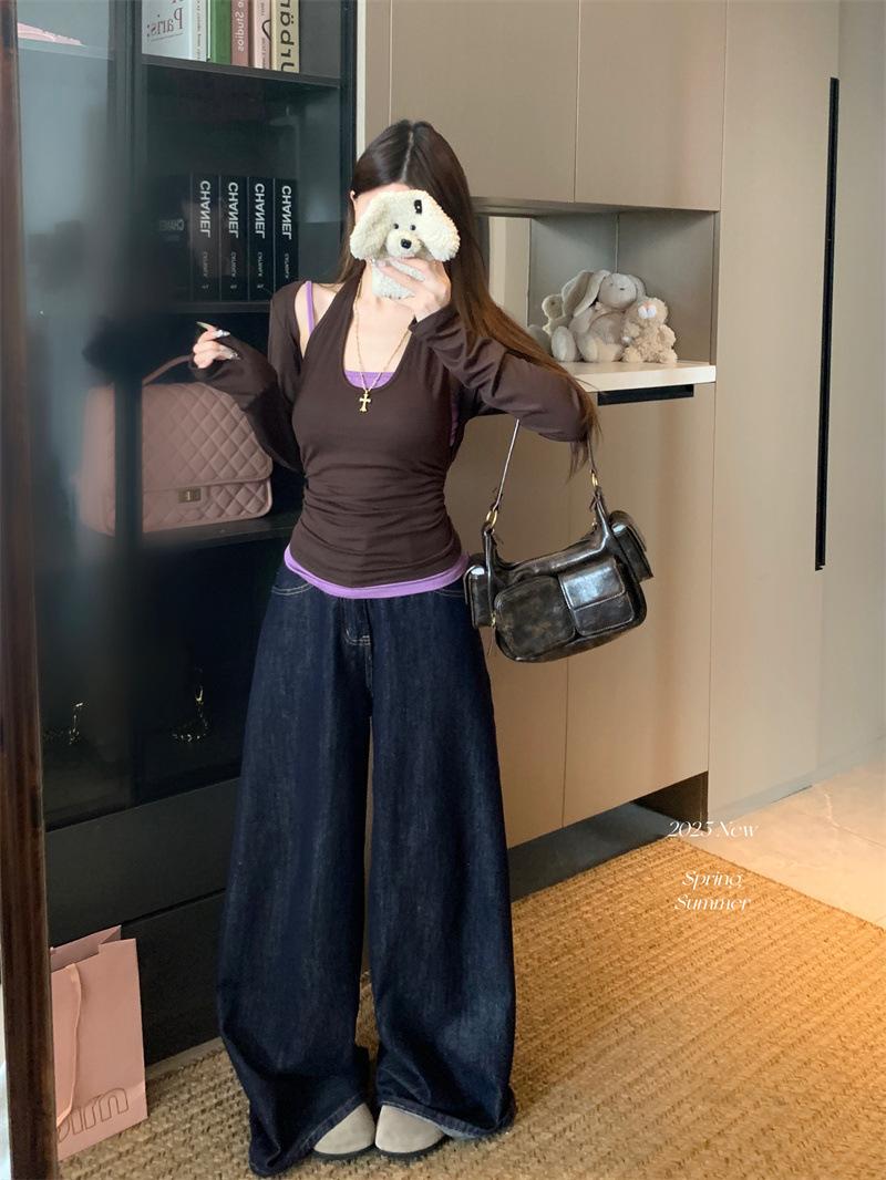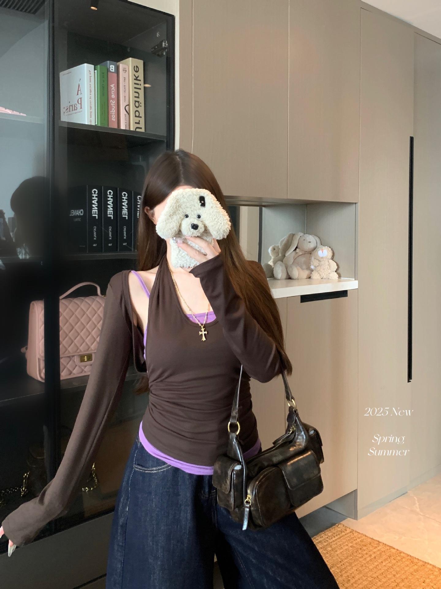 Playera de manga larga de dos piezas falsas para mujer, diseño nicho con sentido del diseño de principios de otoño, corte ajustado entallado, estilo corto de chica caliente, capa interior, top camisa básica