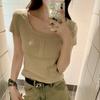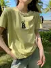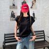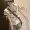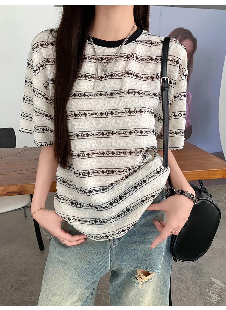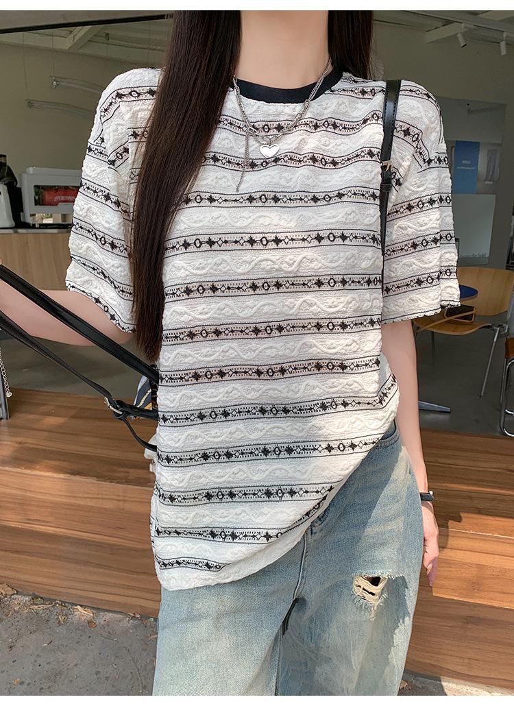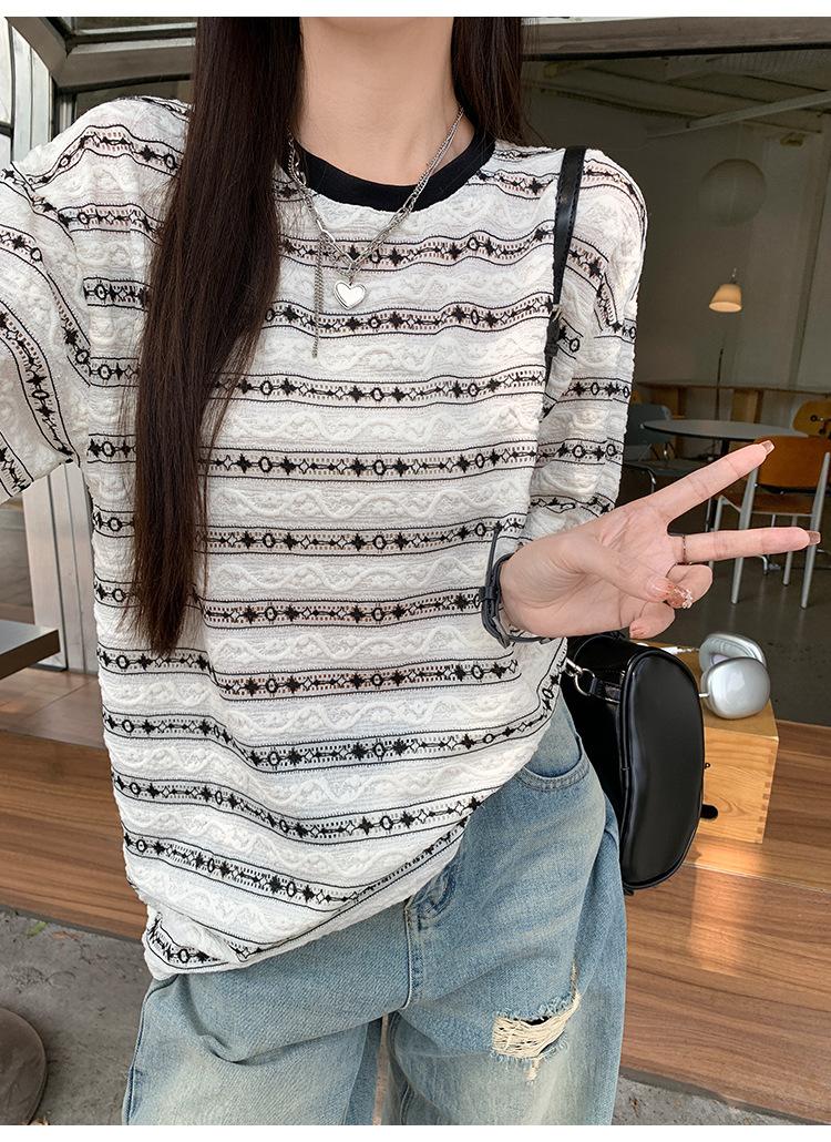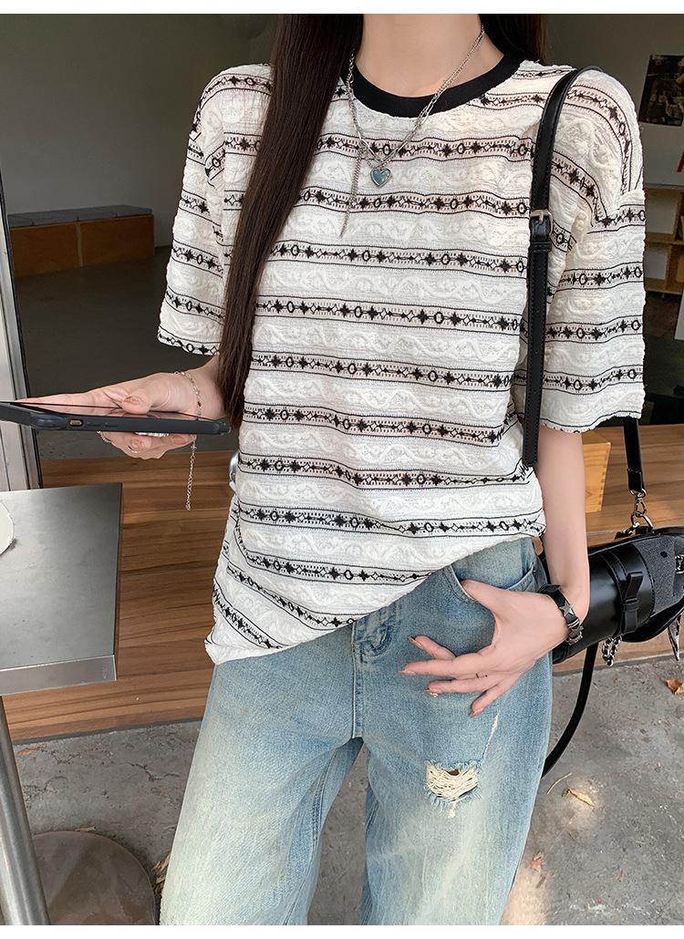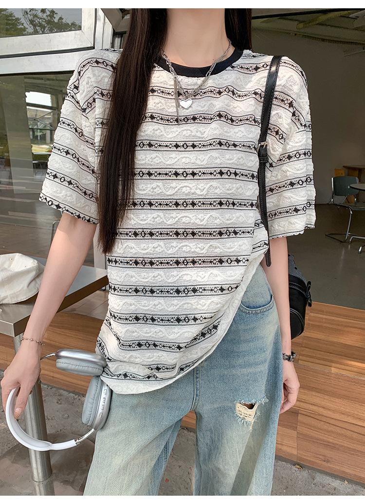 Foto Real de Camiseta de Manga Corta con Hombro Derecho a Rayas con Bloque de Color para Mujer Verano 2025 Nuevo Diseño Top Suelto de Media Manga