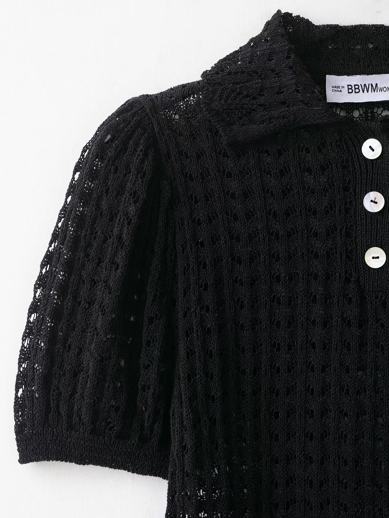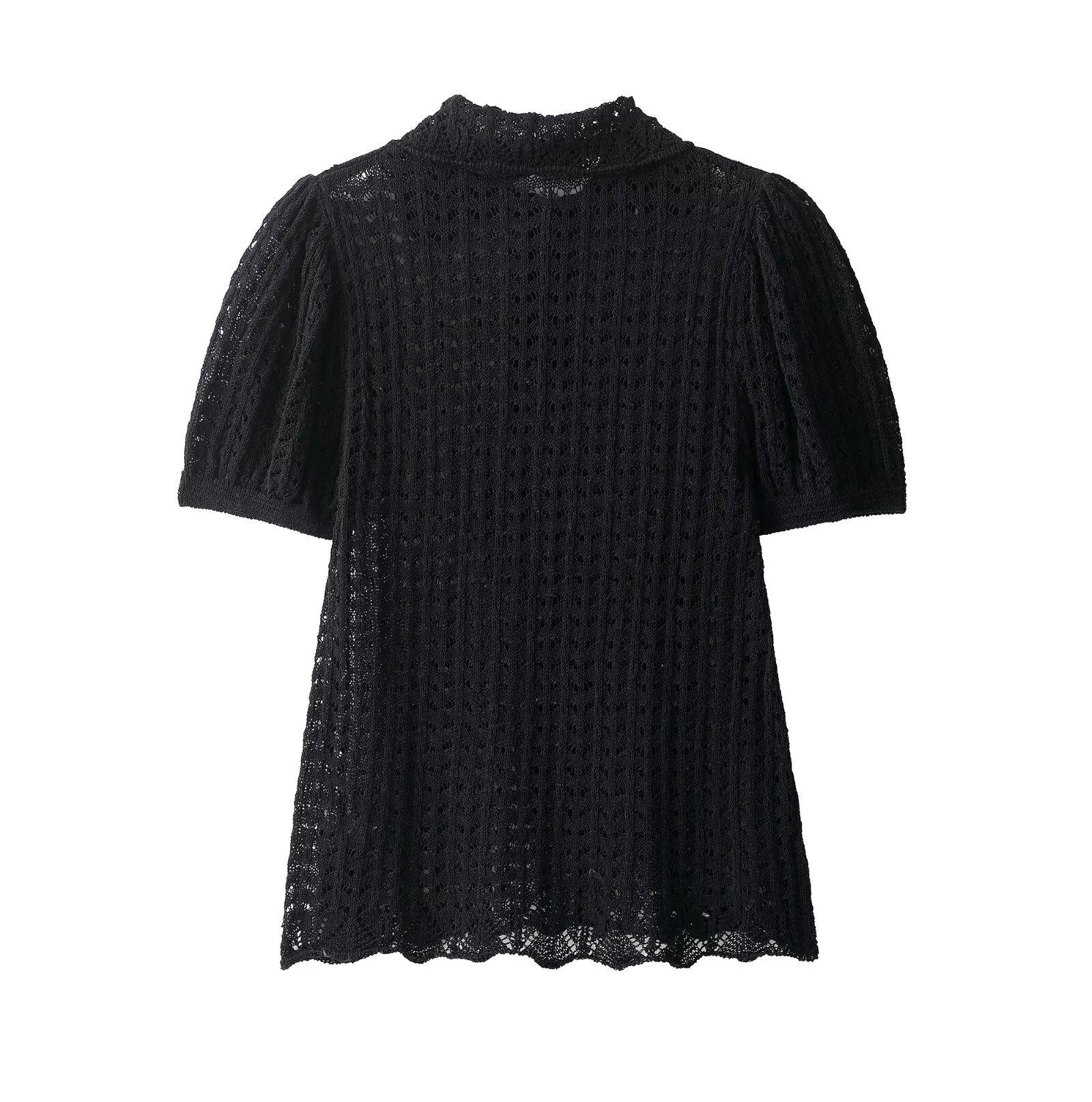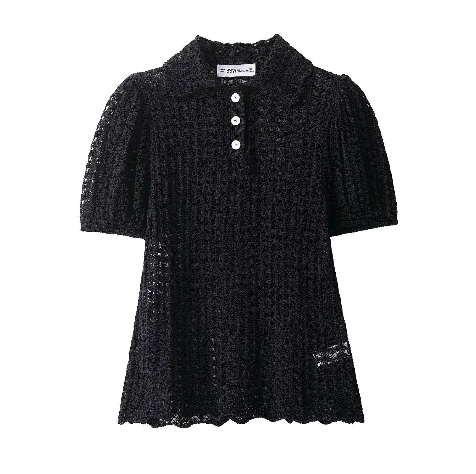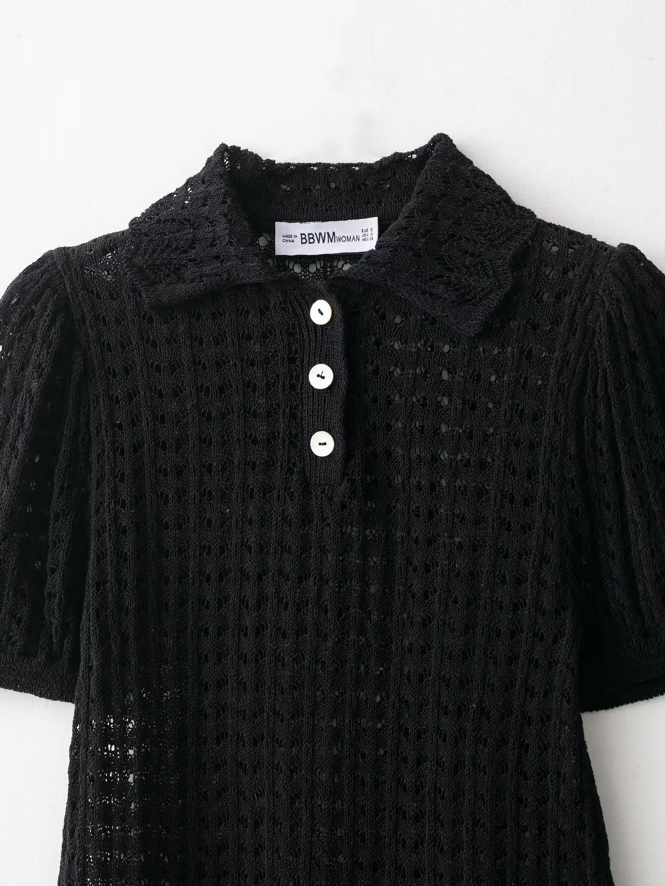 Ropa de Mujer de Comercio Exterior Transfronterizo Amazon 2025 Verano Nuevo Top de Punto de Manga Corta con Cuello Polo para Mujer Top Nicho Calado para Mujer