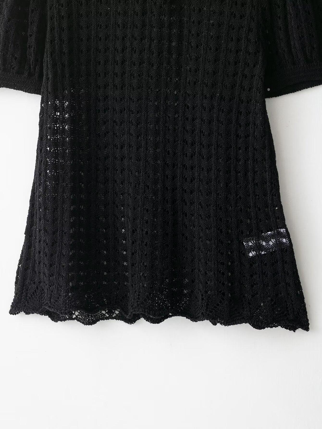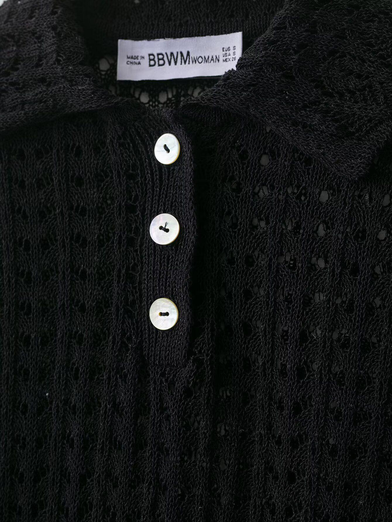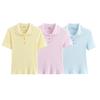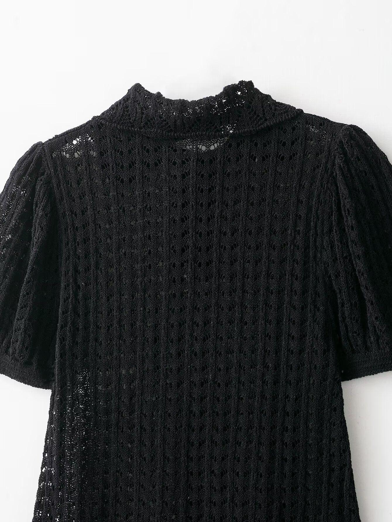 Ropa de Mujer de Comercio Exterior Transfronterizo Amazon 2025 Verano Nuevo Top de Punto de Manga Corta con Cuello Polo para Mujer Top Nicho Calado para Mujer