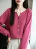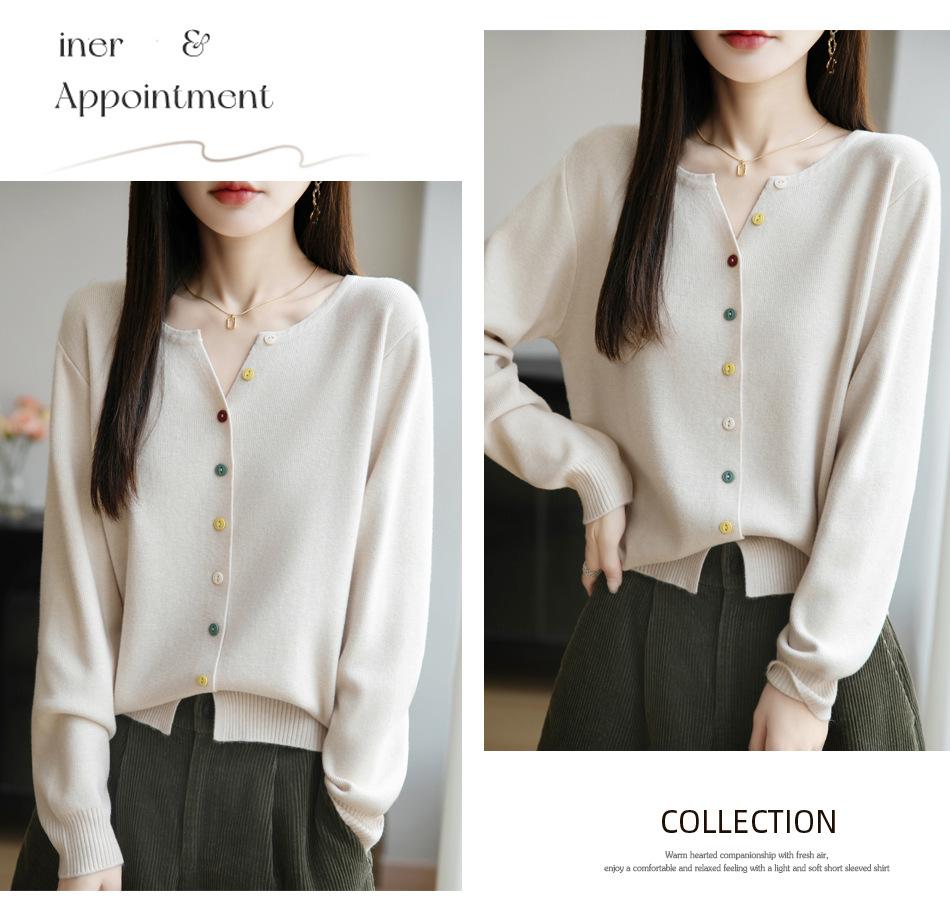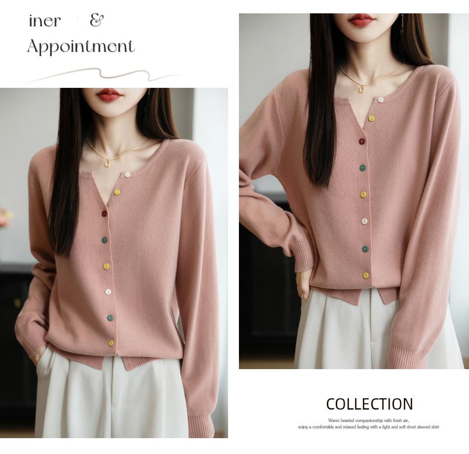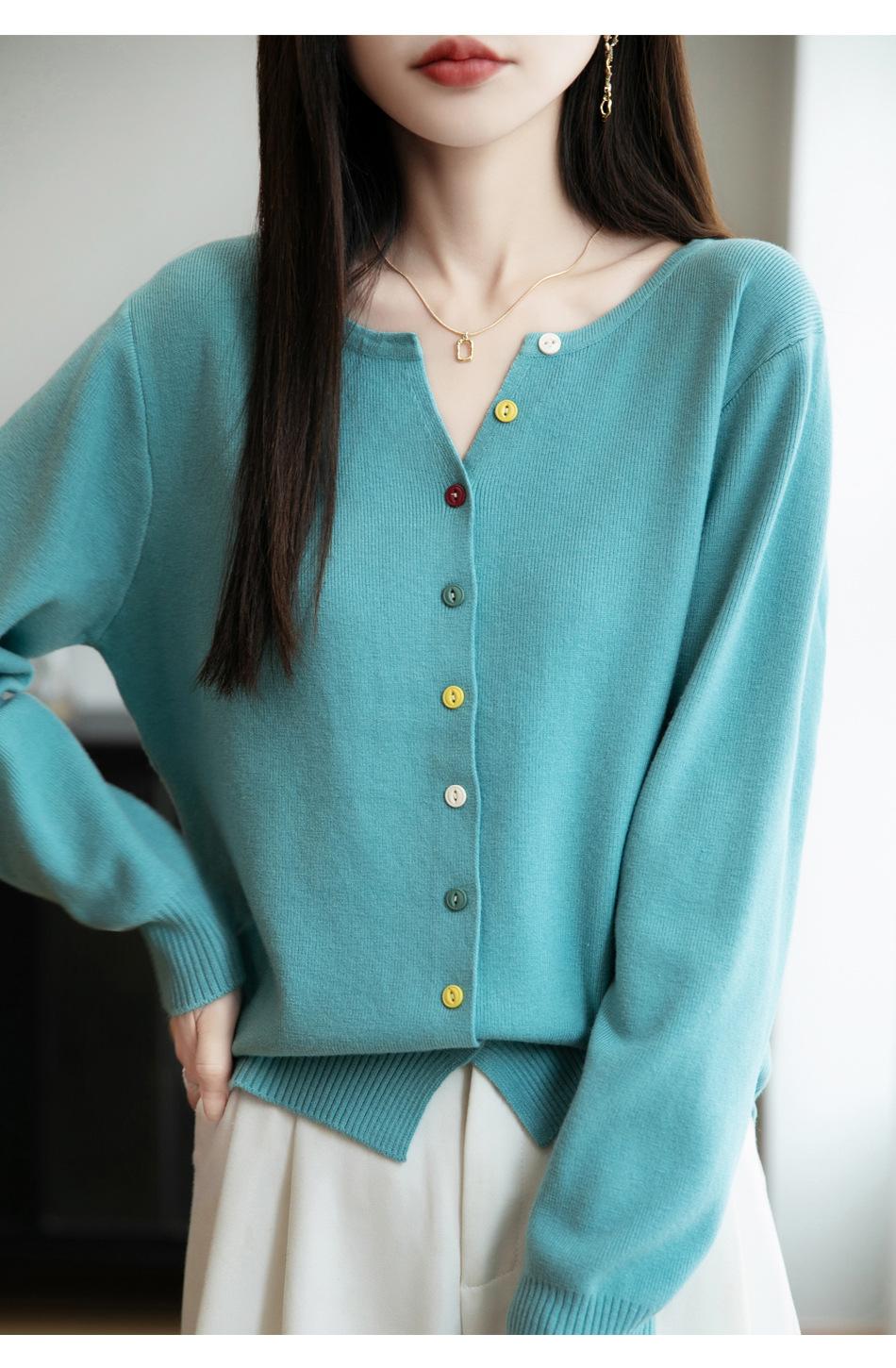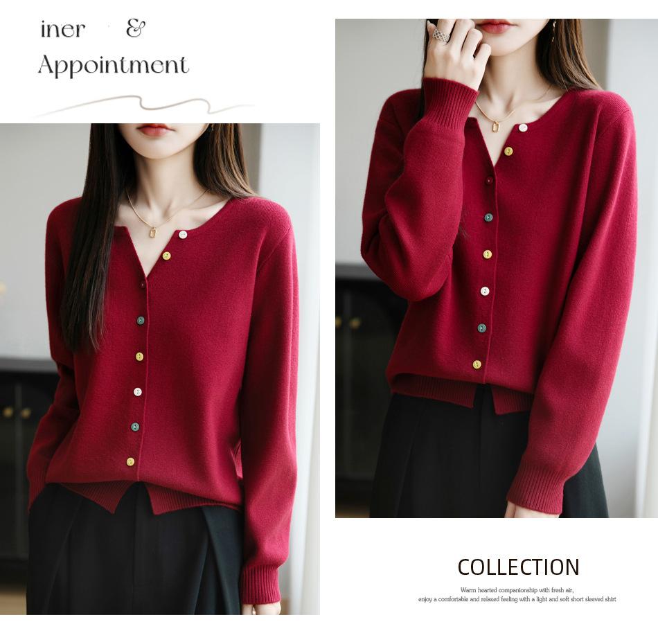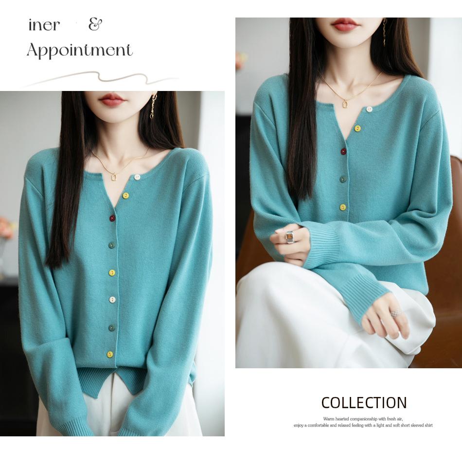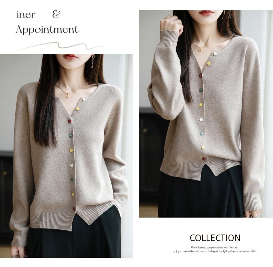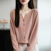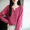Cárdigan de Punto de Manga Larga con Cuello en V de Terciopelo Andy Nuevo de Principios de Otoño para Mujer, Color Sólido, Suelto, Versátil, Abrigo