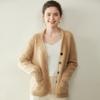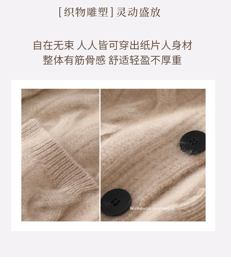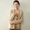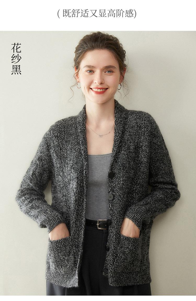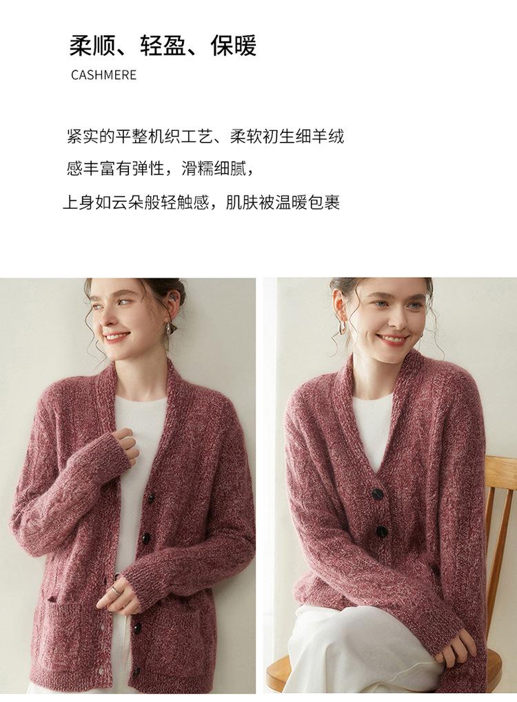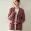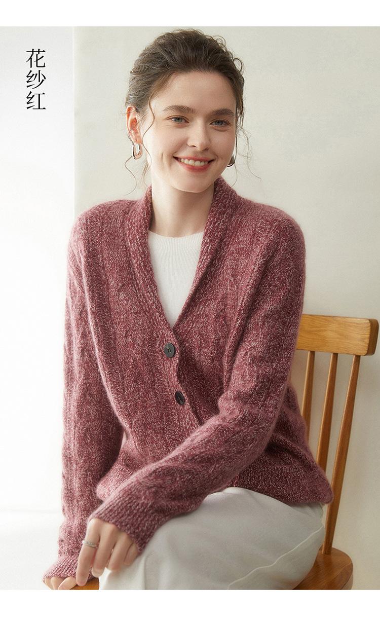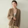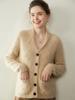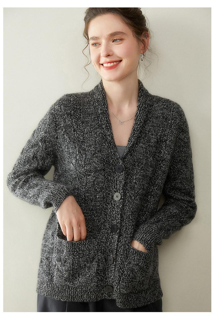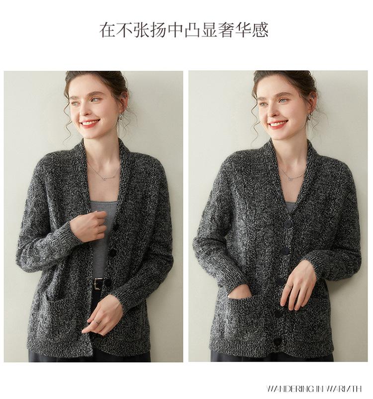 Nuevo Cárdigan de Punto de Cachemira de Cuello en V para Mujer Otoño/Invierno 2025 Manga Larga Suelto Color Sólido Jaspeado Abotonado Suéter Adelgazante