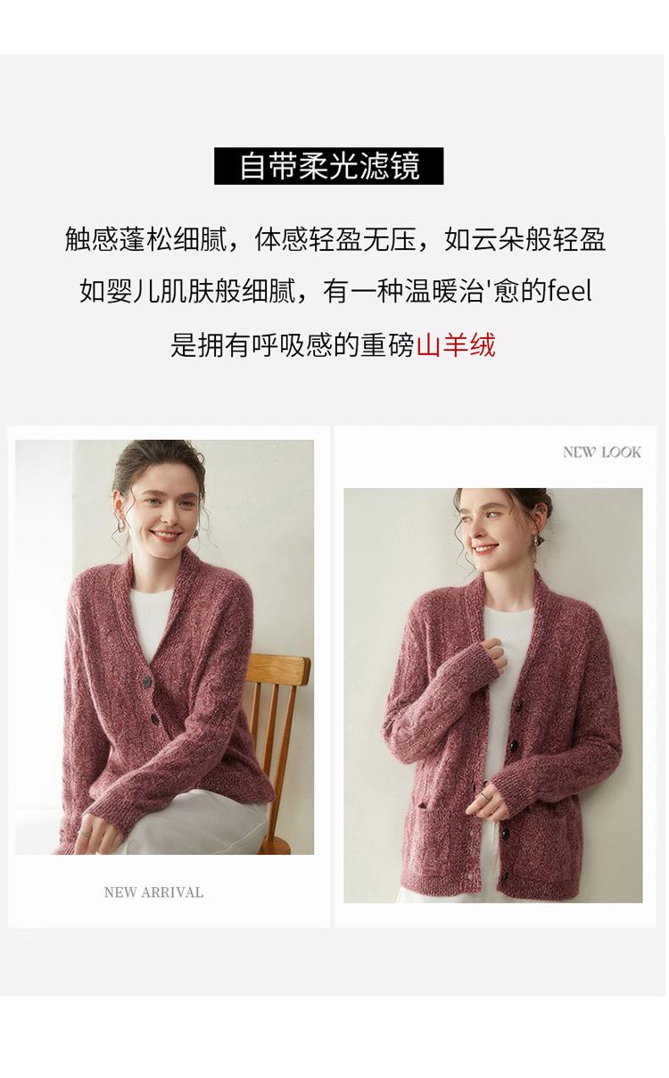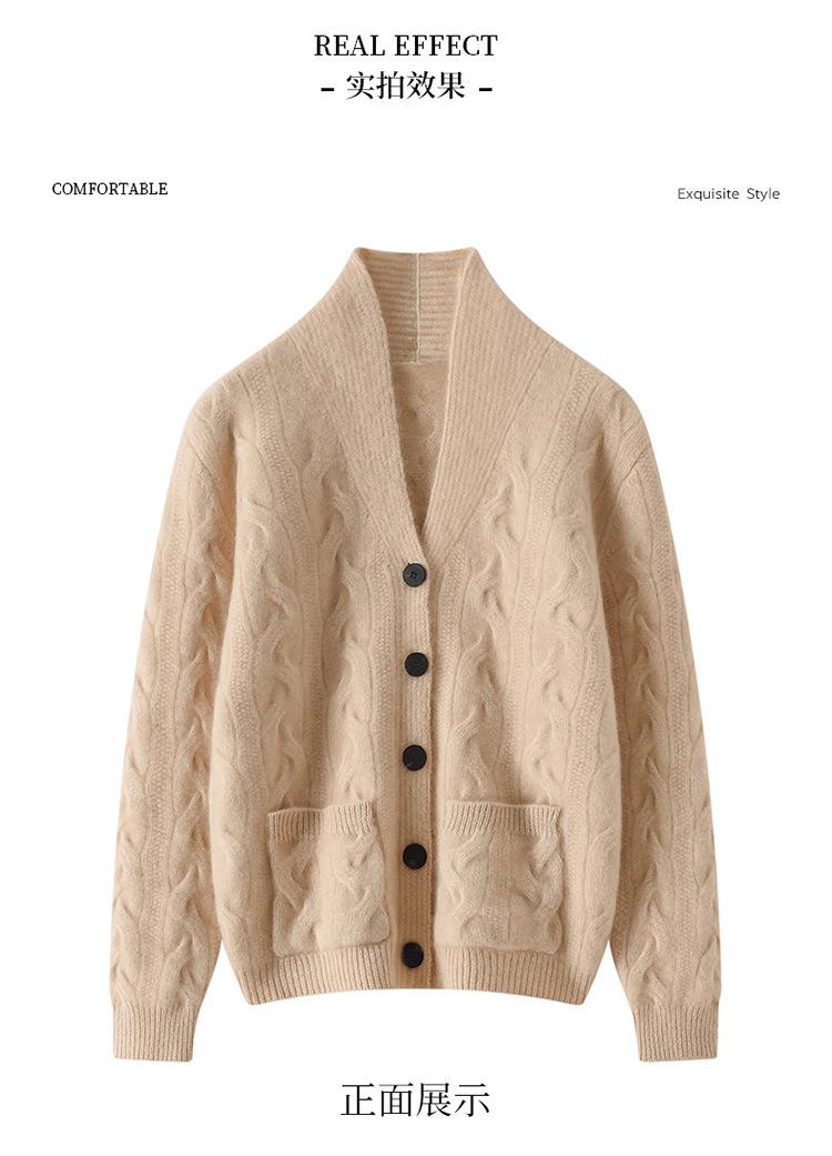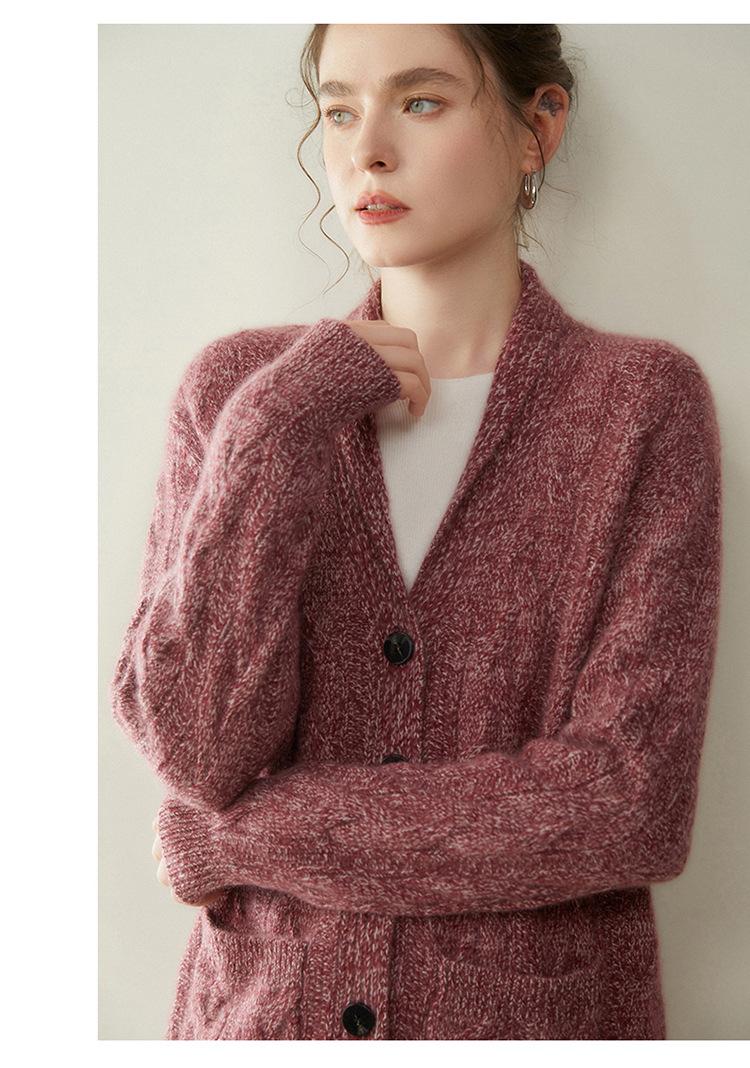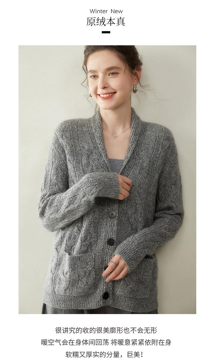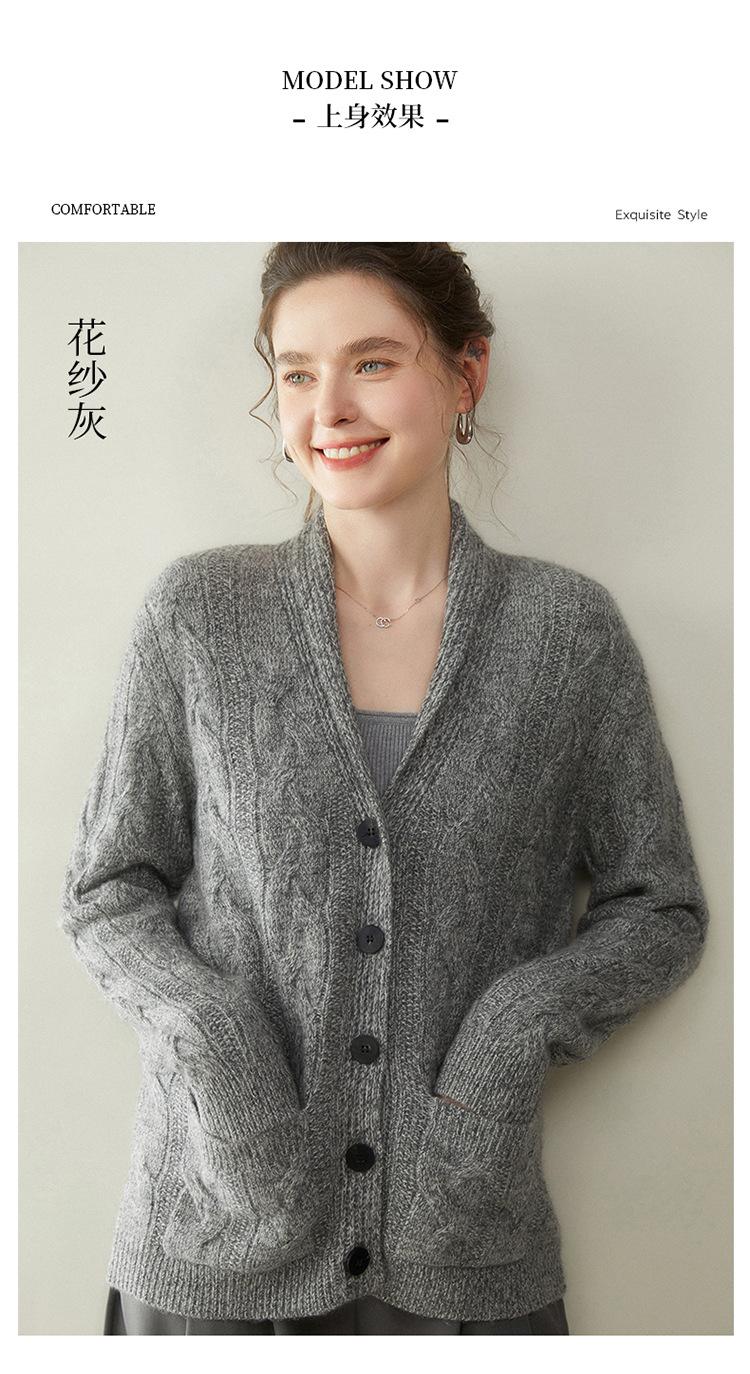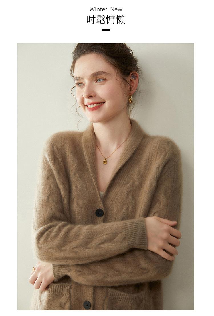 Nuevo Cárdigan de Punto de Cachemira de Cuello en V para Mujer Otoño/Invierno 2025 Manga Larga Suelto Color Sólido Jaspeado Abotonado Suéter Adelgazante
