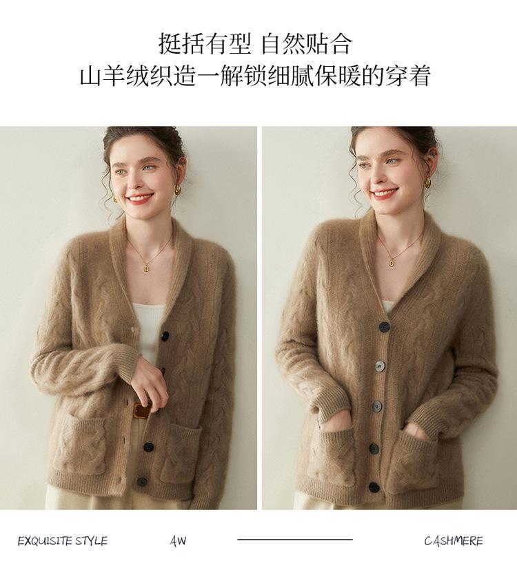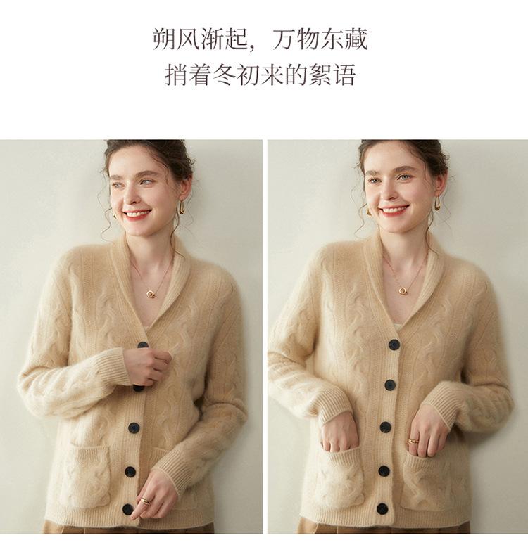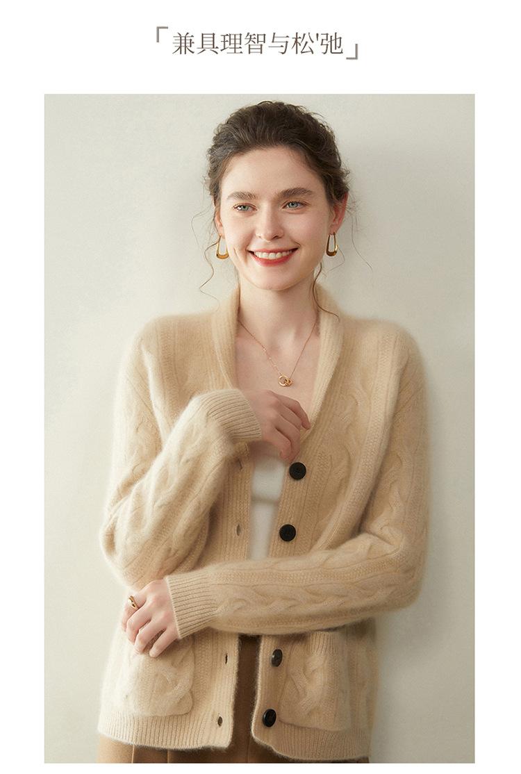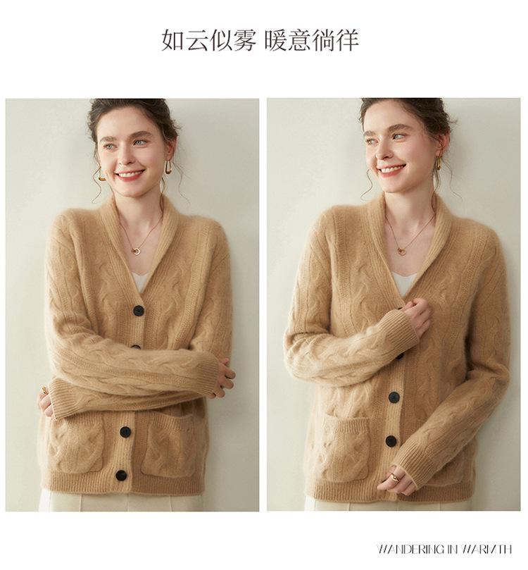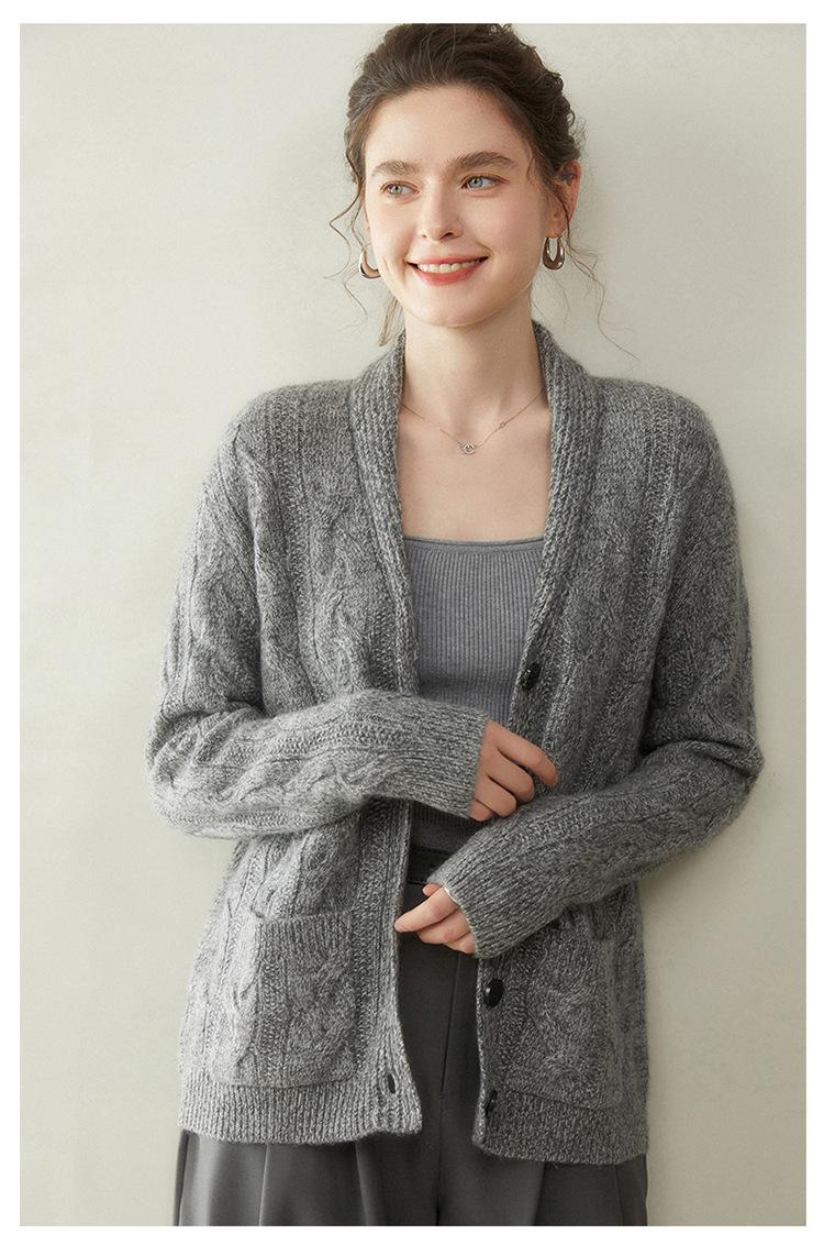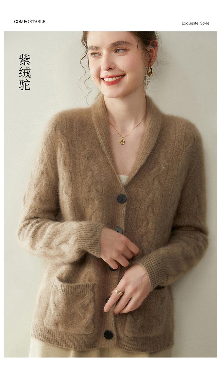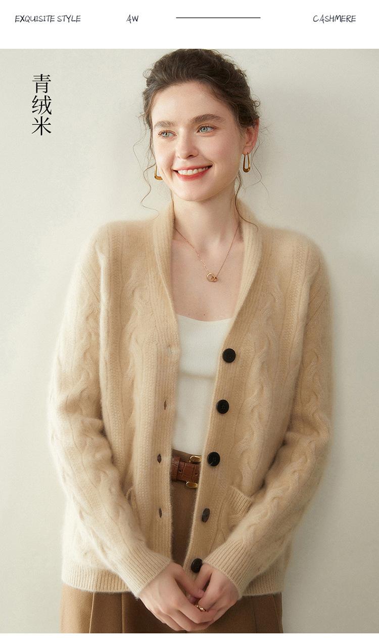 Nuevo Cárdigan de Punto de Cachemira de Cuello en V para Mujer Otoño/Invierno 2025 Manga Larga Suelto Color Sólido Jaspeado Abotonado Suéter Adelgazante