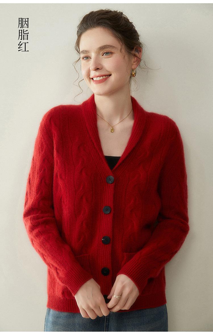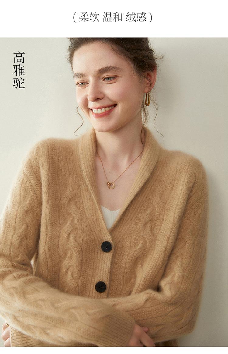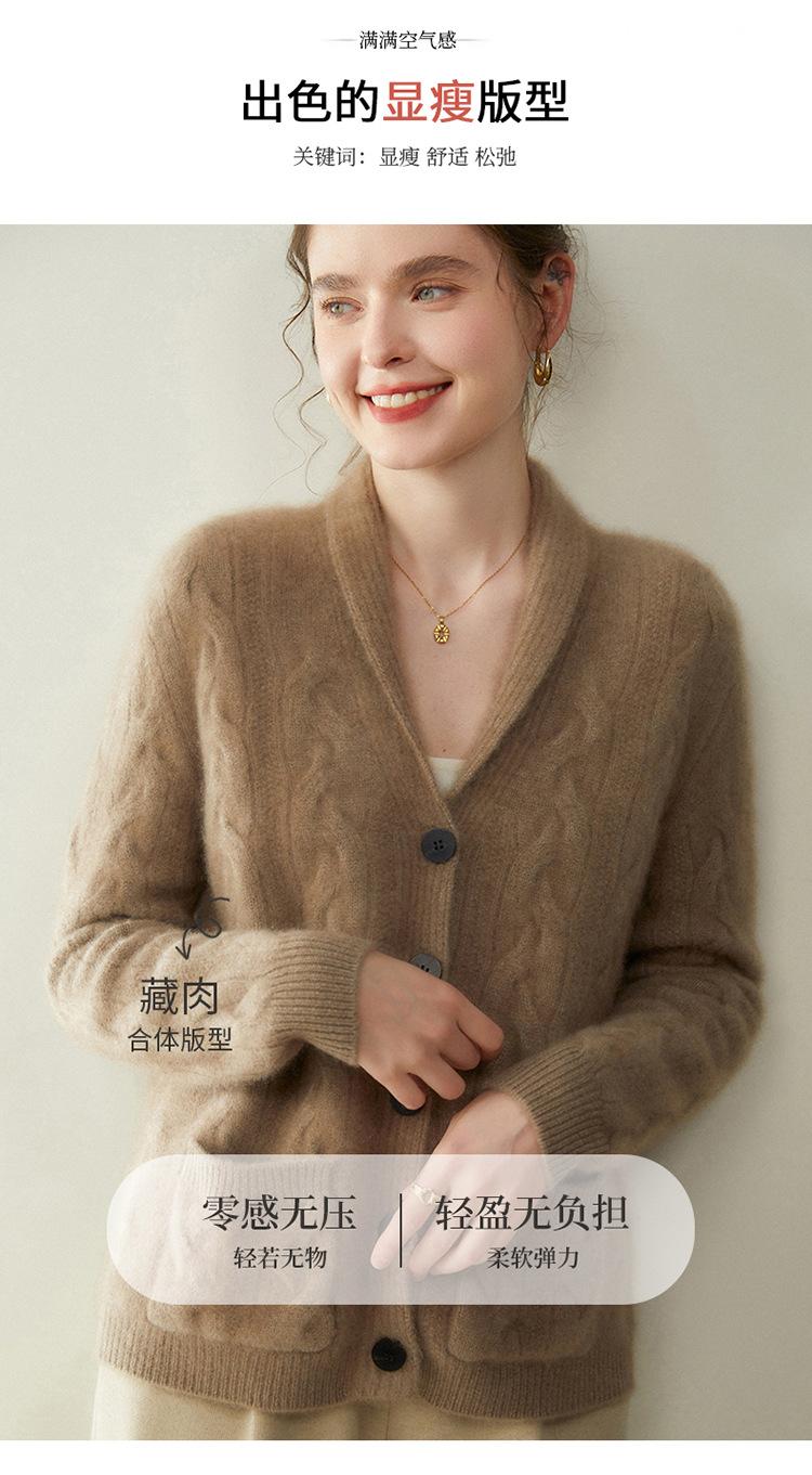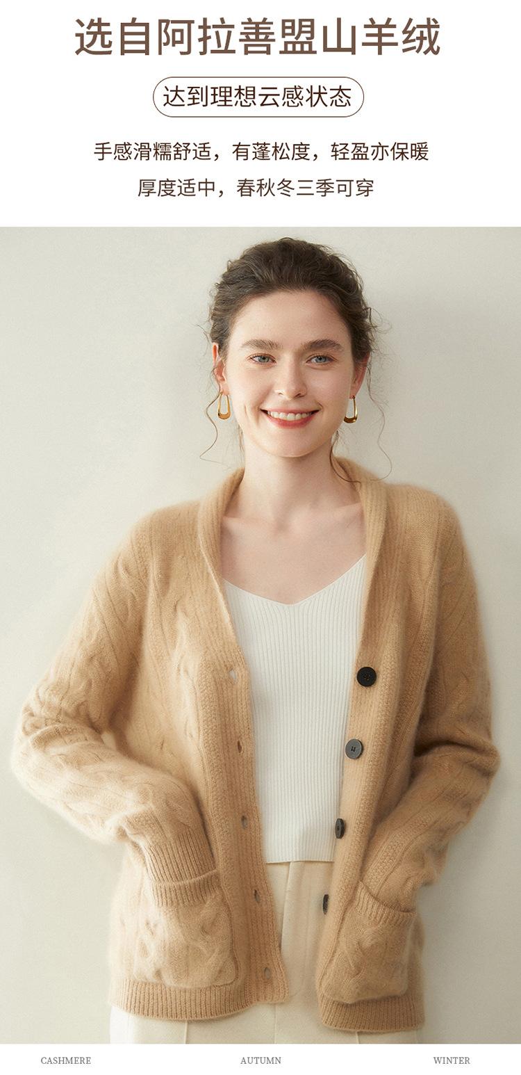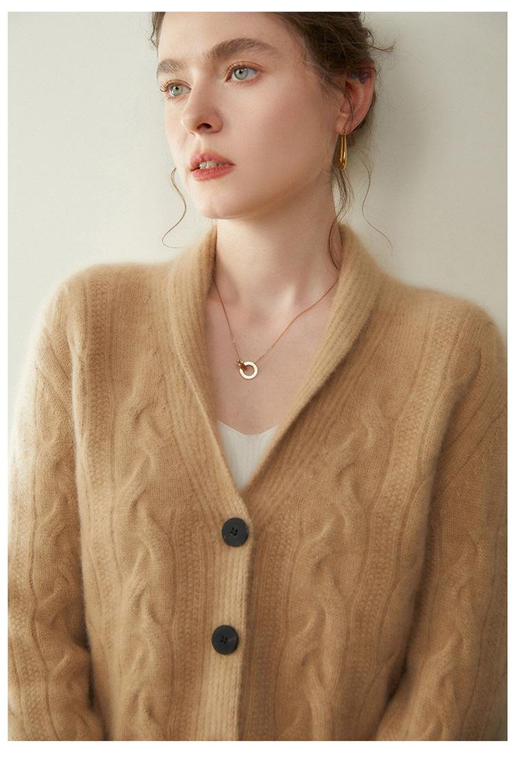 Nuevo Cárdigan de Punto de Cachemira de Cuello en V para Mujer Otoño/Invierno 2025 Manga Larga Suelto Color Sólido Jaspeado Abotonado Suéter Adelgazante