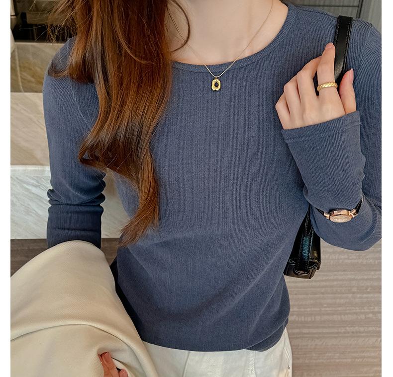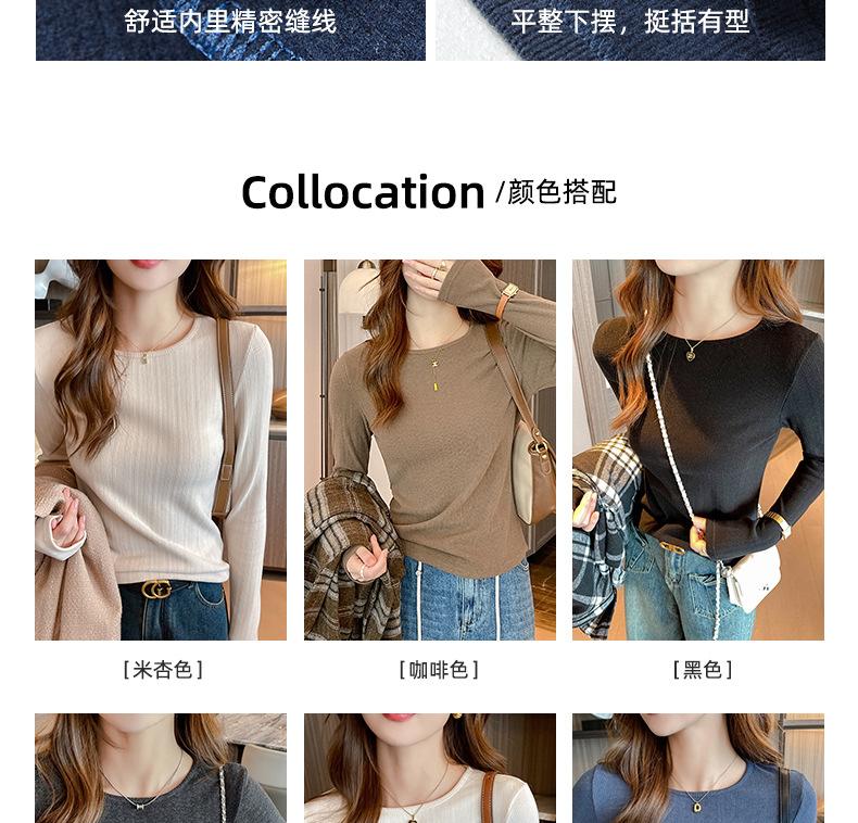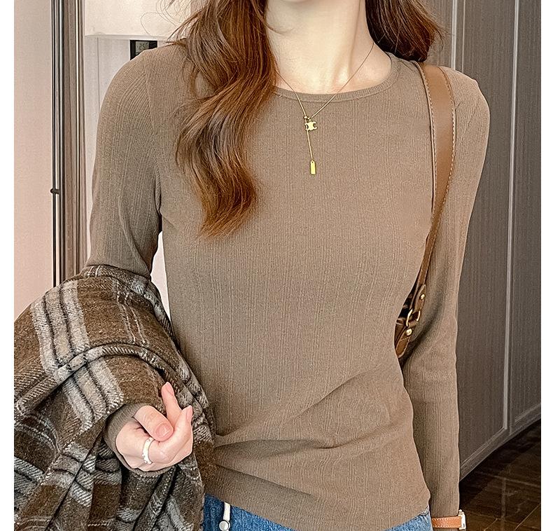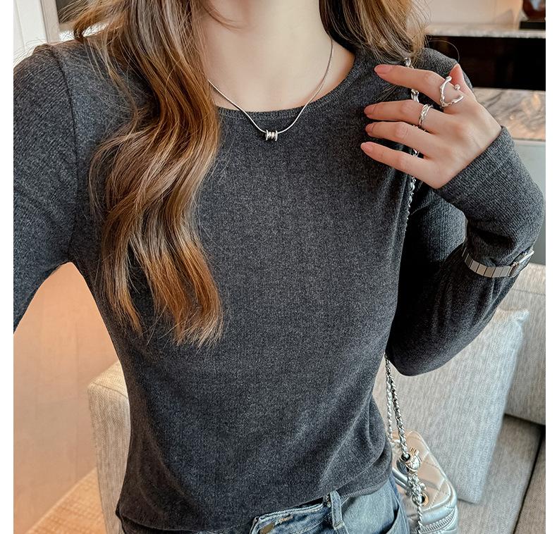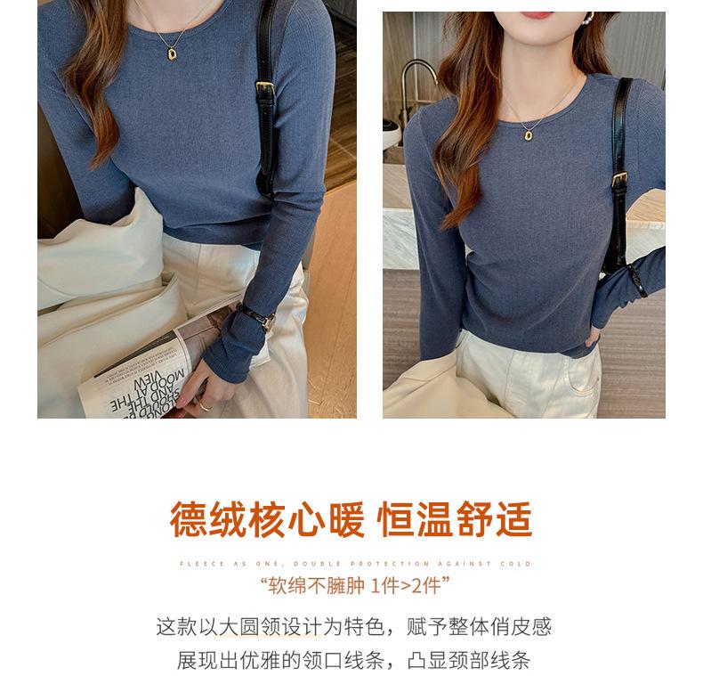 Otoño e invierno ropa interior cuello redondo camiseta base para mujer nueva terciopelo alemán manga larga ropa exterior temperamento adelgazante de alta gama top versátil