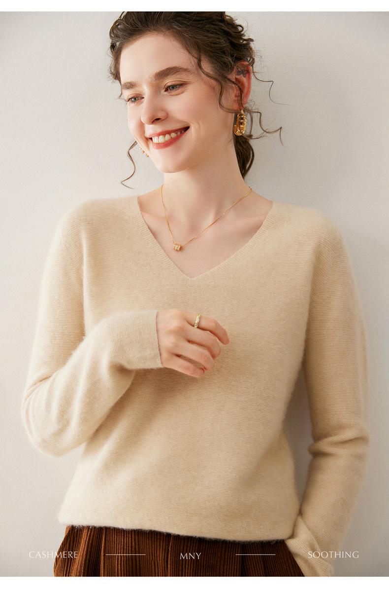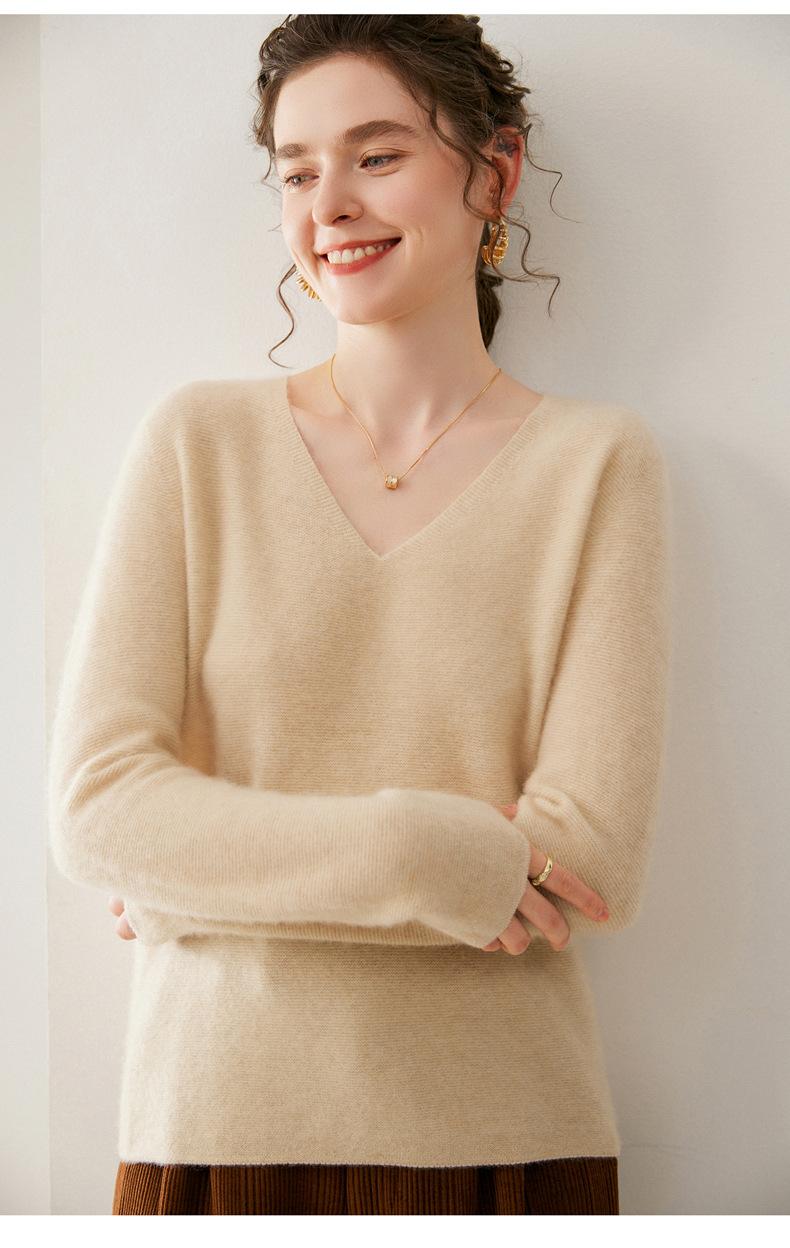 Suéter de Cachemira de Cuello en V para Mujer Otoño/Invierno Nuevo Suéter de Punto Holgado Base Estilo Coreano Versátil Suéter 2025