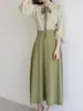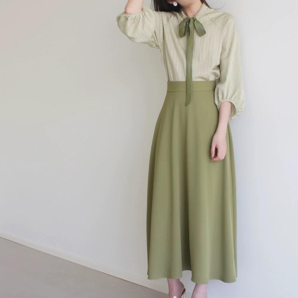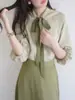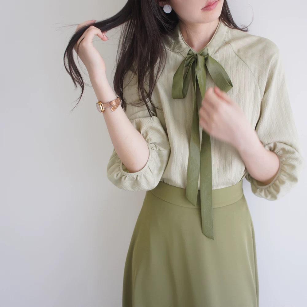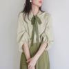 Camisa de Manga 7/8 con Lazo de Color Block de Rayas Sutiles Verde Claro, Top Temperamental para Mujer
