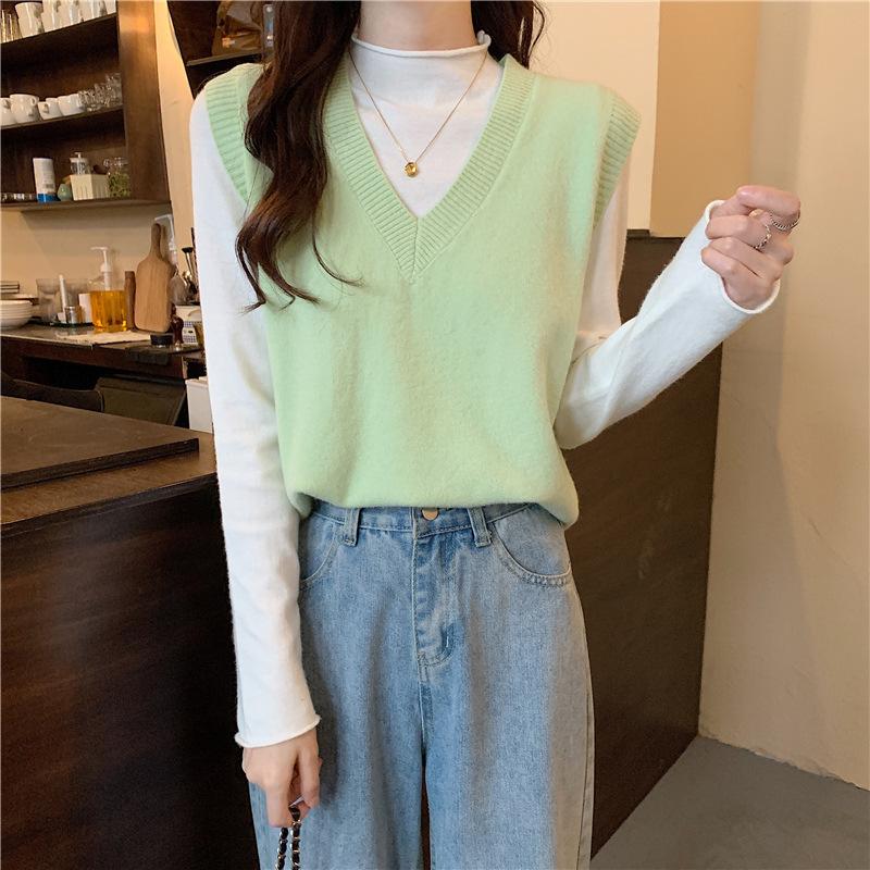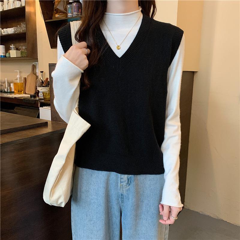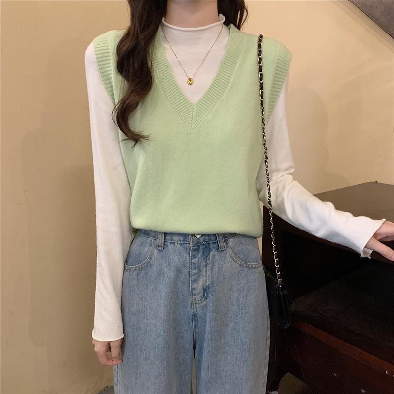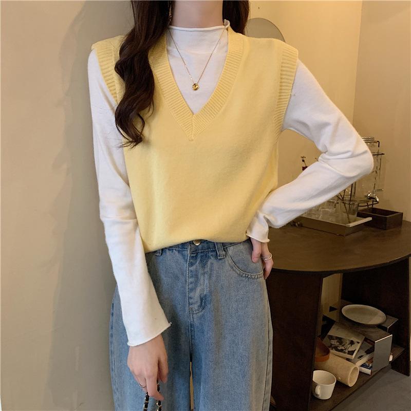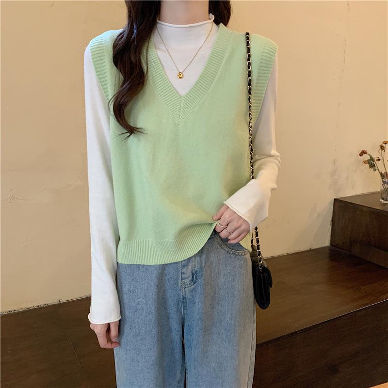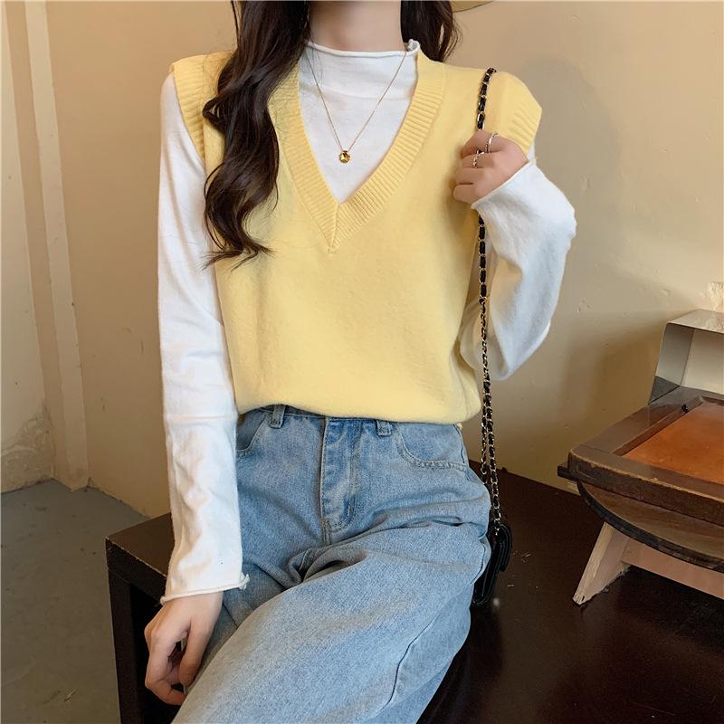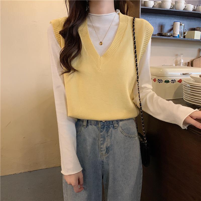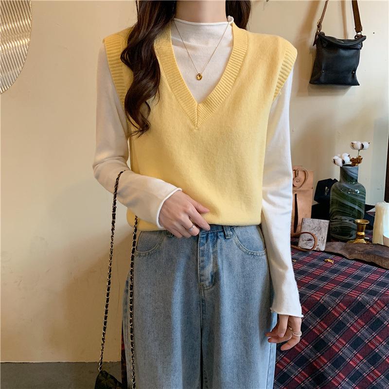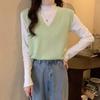 Chaleco para Mujer Primavera y Otoño 2025 Nuevo Chaleco con Cuello en V Camisa Tejida Top Otoño e Invierno para Usar como Prenda Exterior Chaleco Suéter Apilado