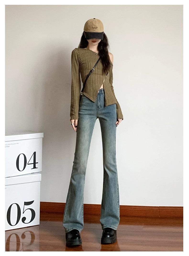 Jeans Acampanados Vintage para Mujer, Nuevo Estilo Otoño 2023, Pantalones Bootcut Petite, Pantalones Acampanados Adelgazantes de Cintura Alta para Primavera y Otoño