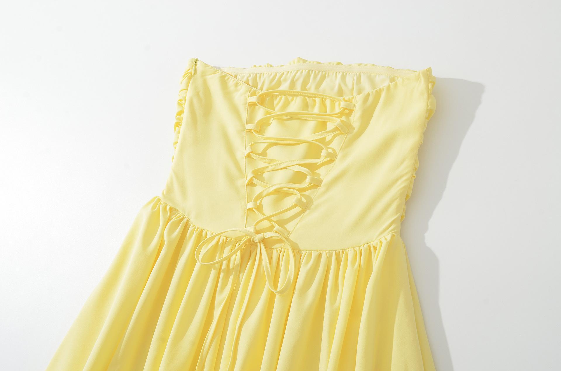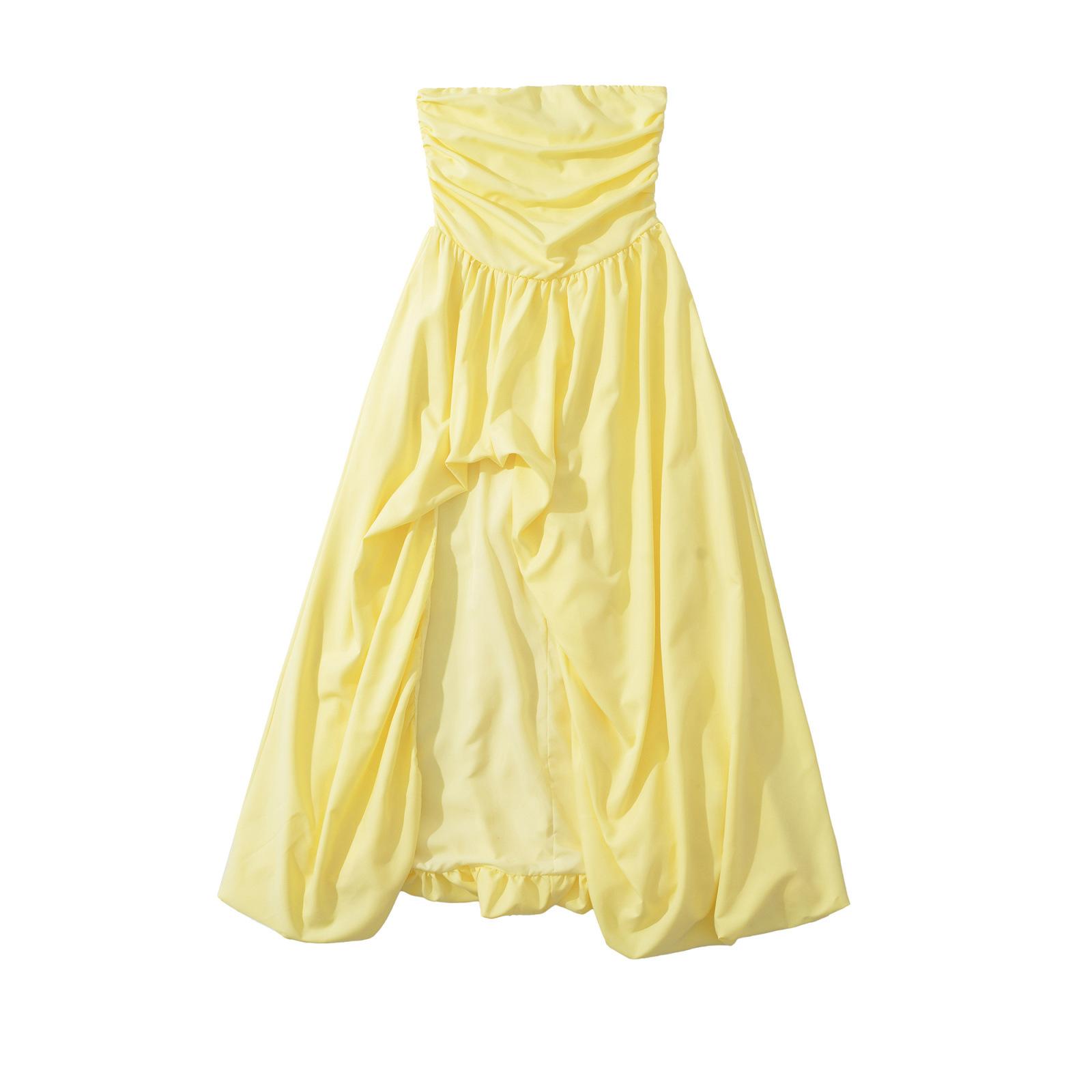Otoño 2025 Ropa Nueva para Mujer Estilo Europeo y Americano Moda Sencilla Ajustado Sin Tirantes Abertura Bajo Burbuja Vestido