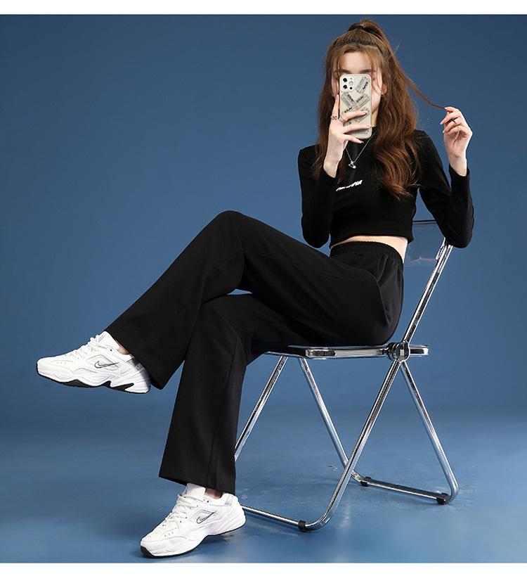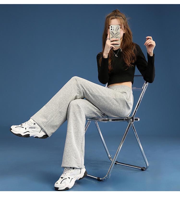 Pantalones de Pierna Ancha Mujer Verano Delgados 2025 Nuevos Cintura Alta Drapeado Primavera Otoño Pantalones Deportivos Casual Ajustados Rectos Pantalones de Sudor