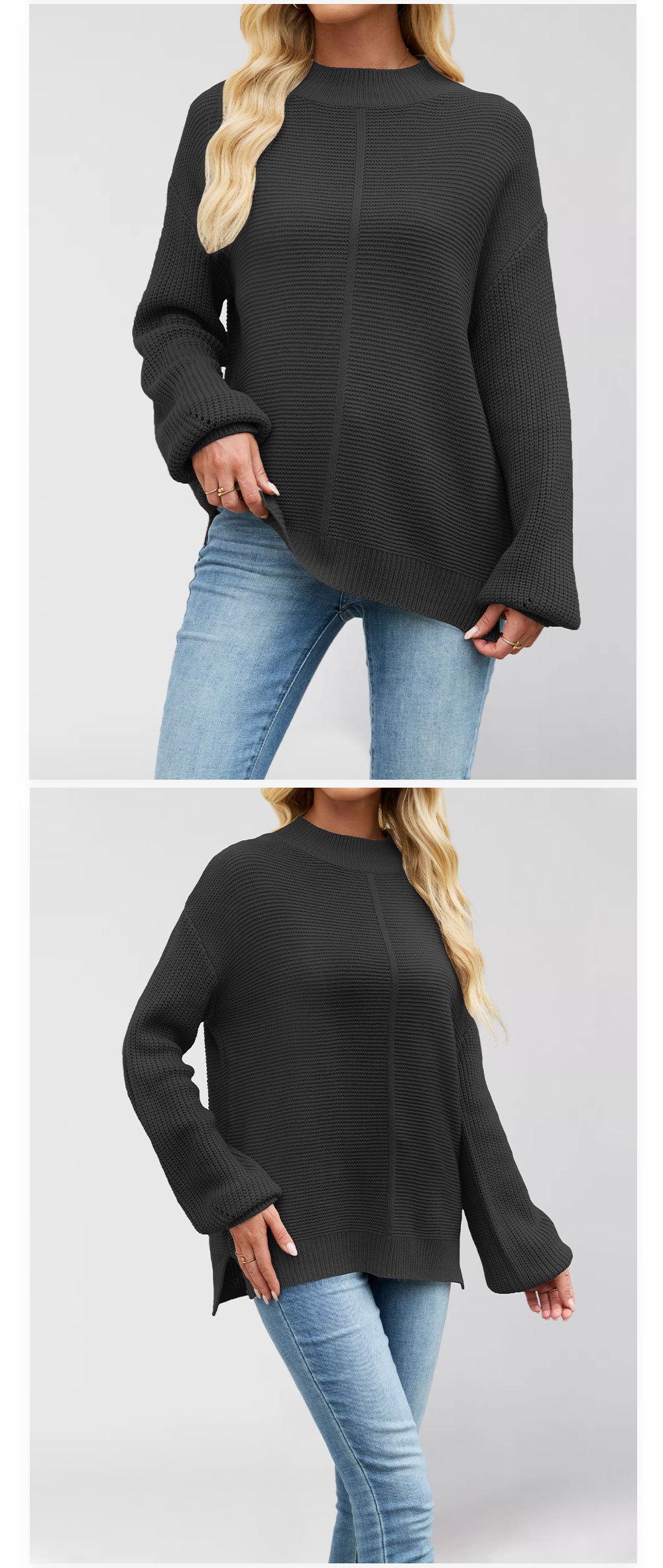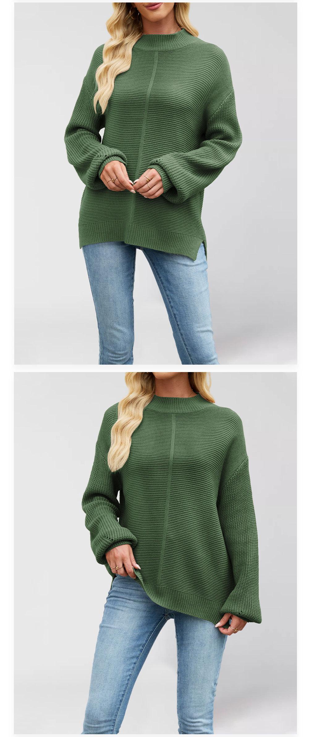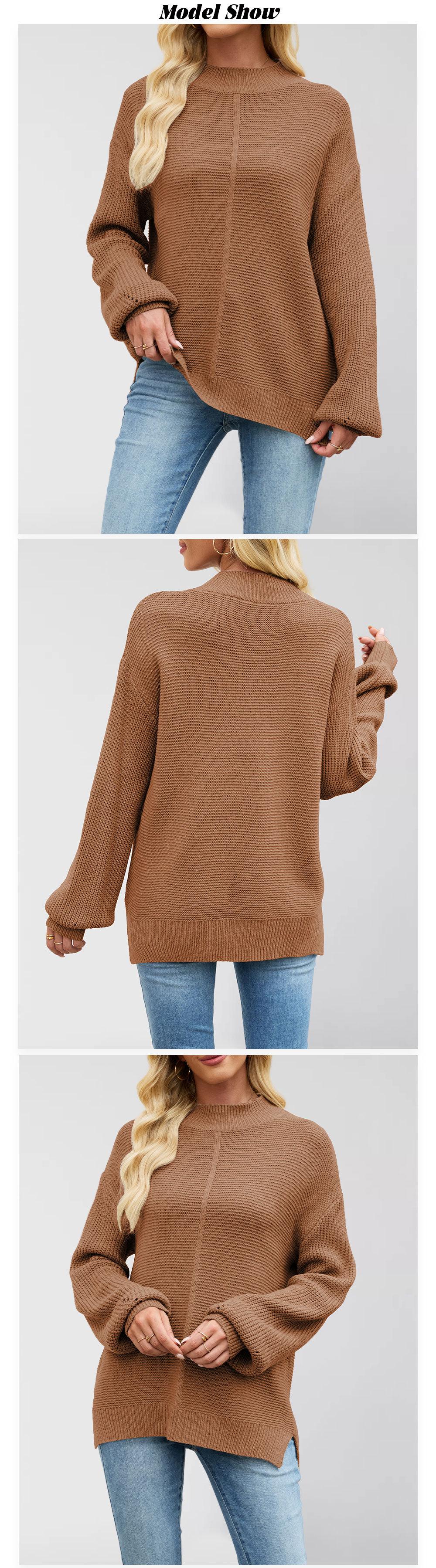 Nueva Ropa Otoño e Invierno 2025 Europea y Americana Transfronteriza Amazon Más Vendida Tejido de Punto Color Puro Cuello Medio Tortuga Suéter Holgado